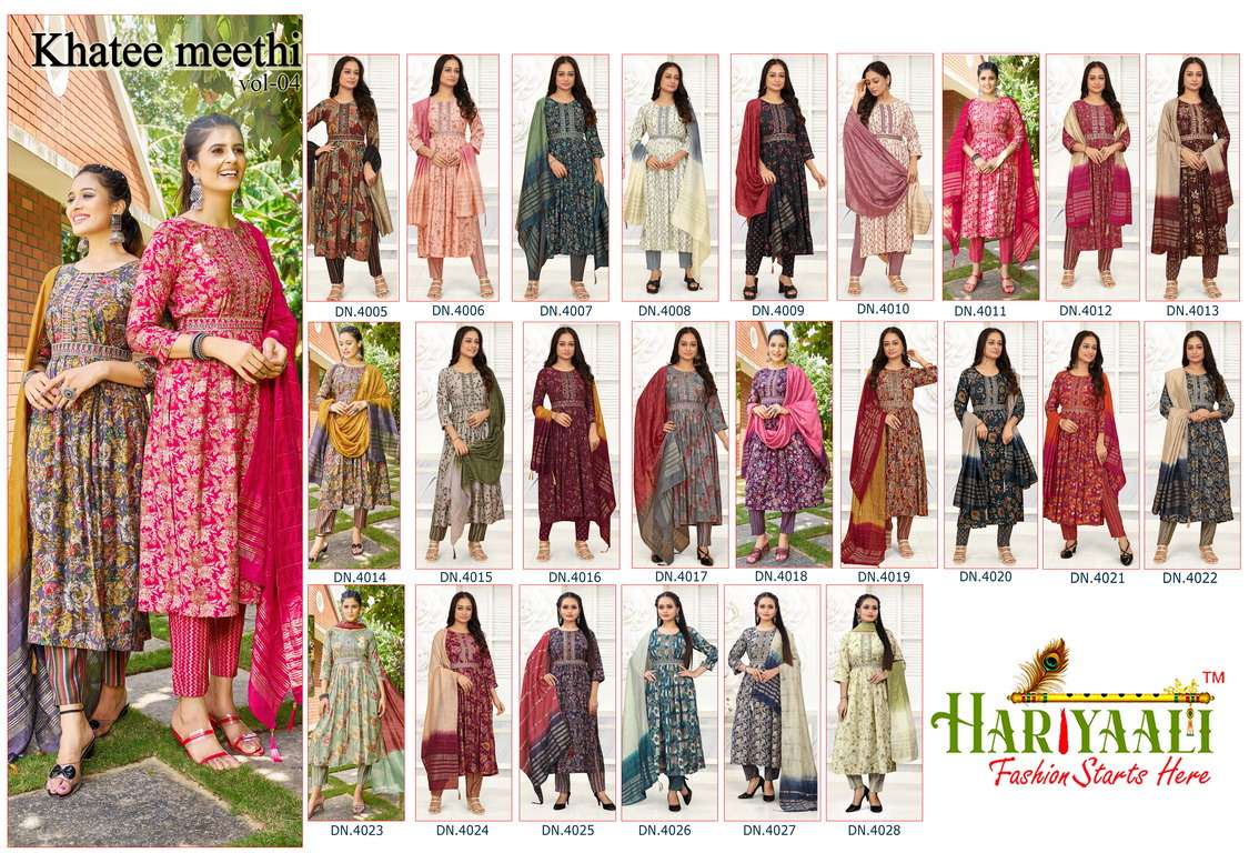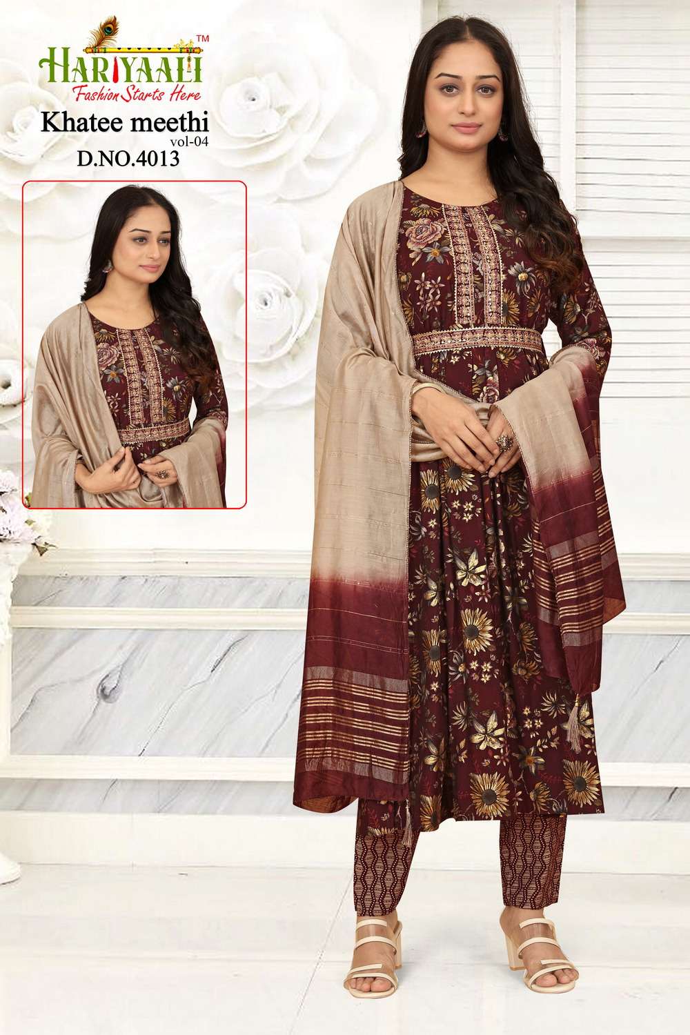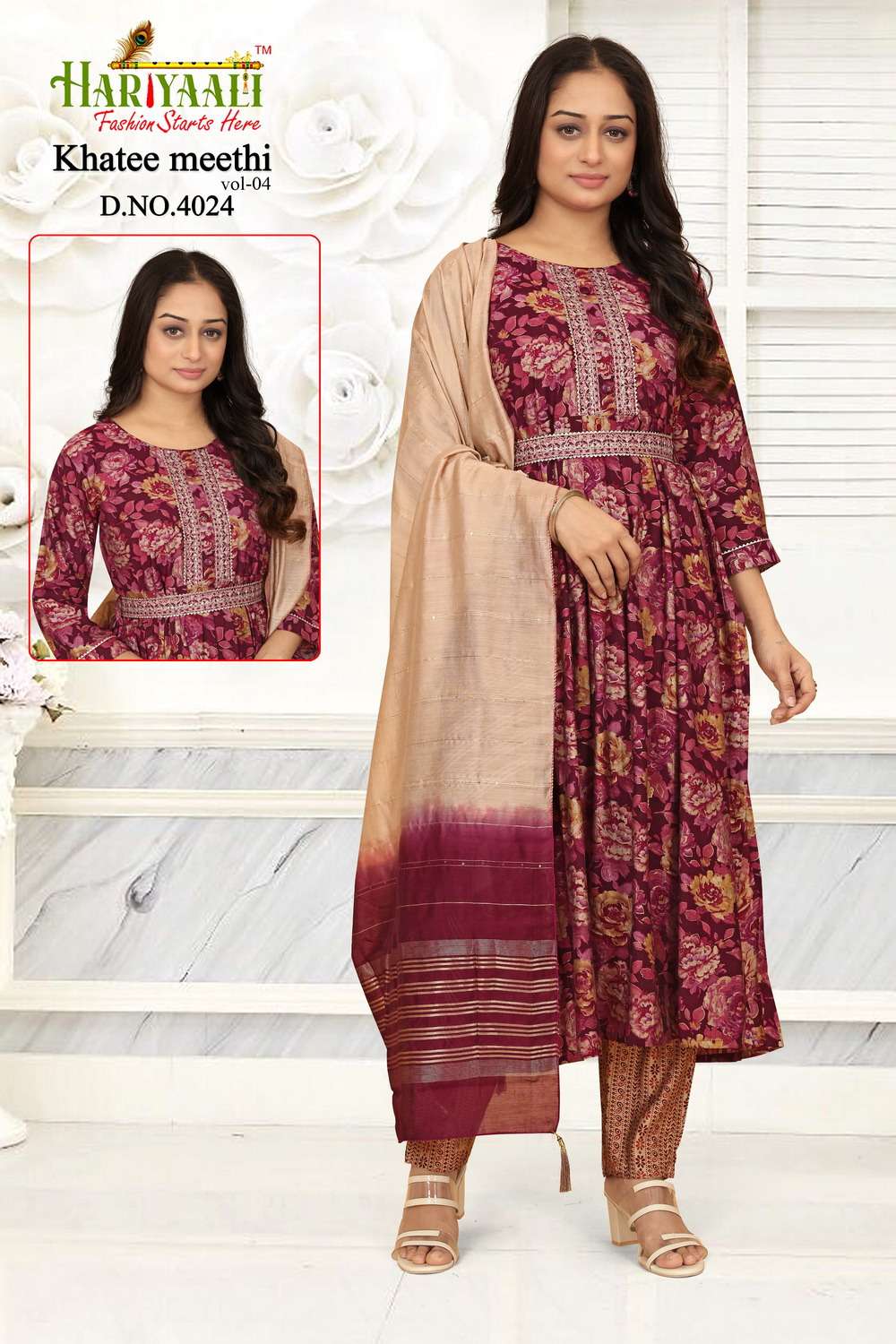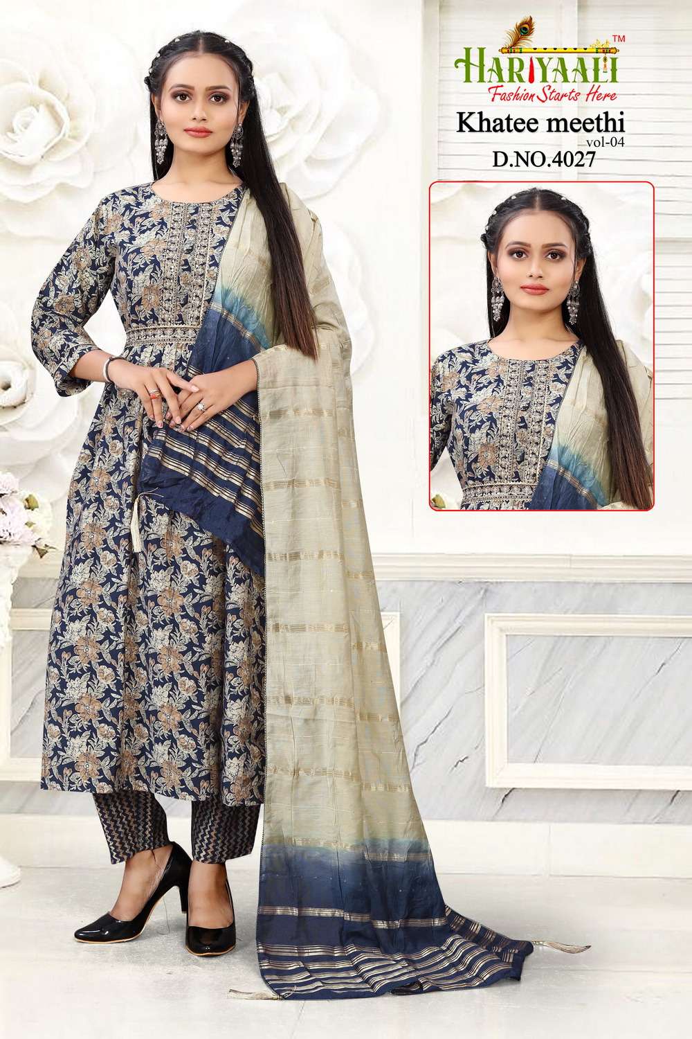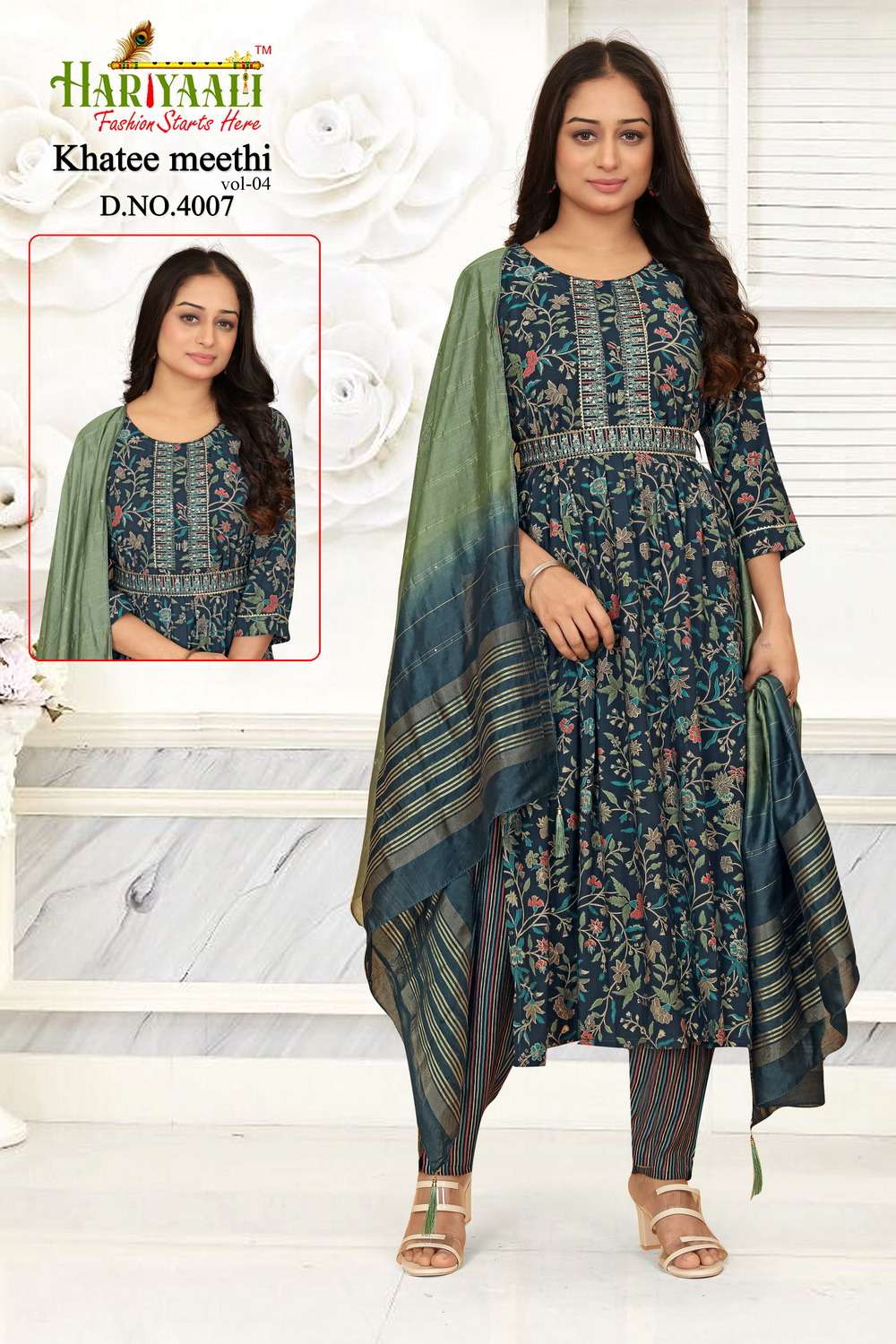 khatee meethi vol 4 by hariyaali readymade nayra cut salwar kameez combo set