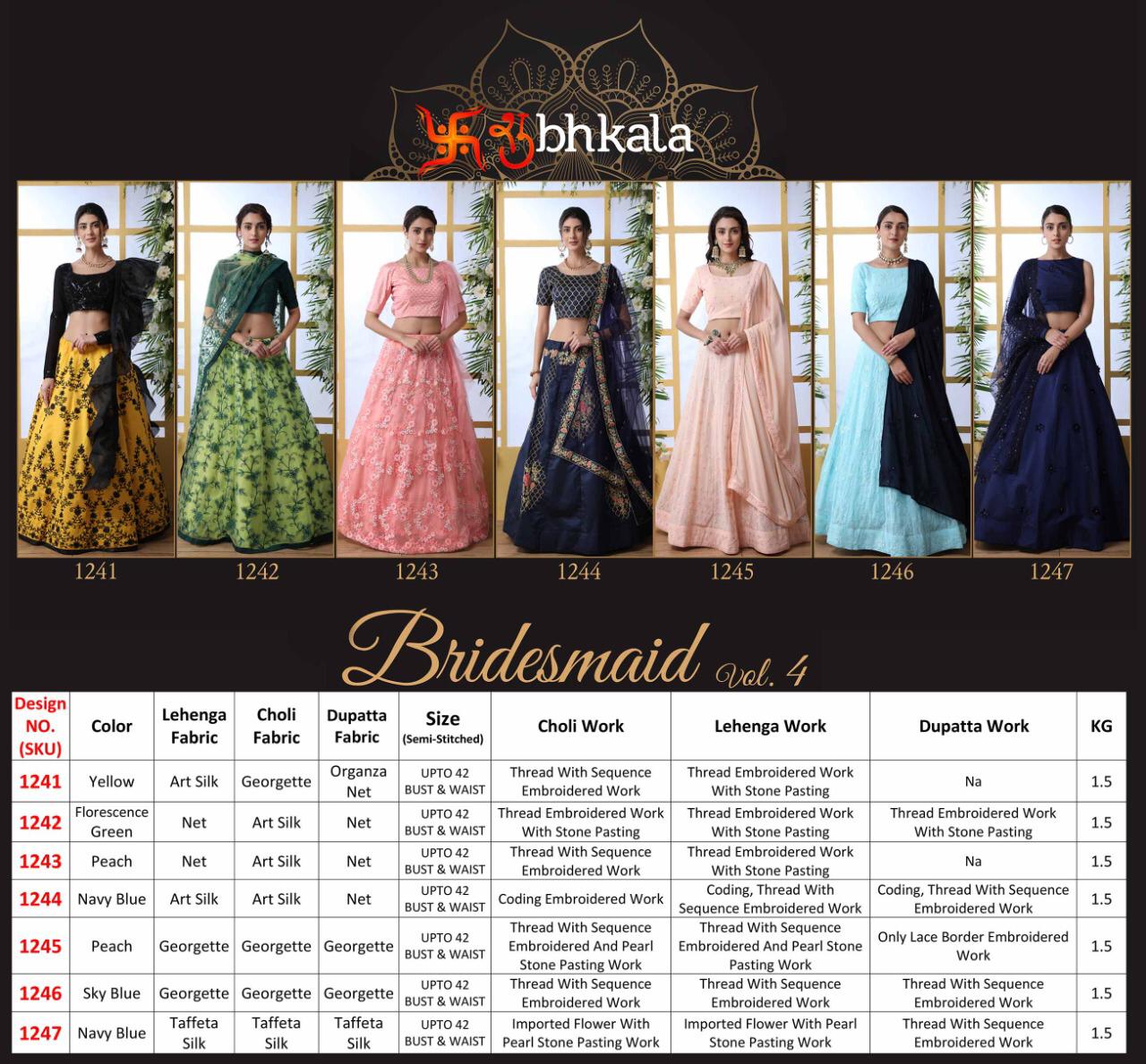 Bridesmaid vol 4 DESIGNER LEHENGA CHOLI COLLECTION RATE LIST 1241 - 2000/- 1242 - 2000/- 1243 - 2000/- 1244 - 2000/- 1245 - 2000/- 1246 - 2000/- 1247 - 2000/- Assured Quality. Authentic Original Product Ready to Shipping • World Wide. |
