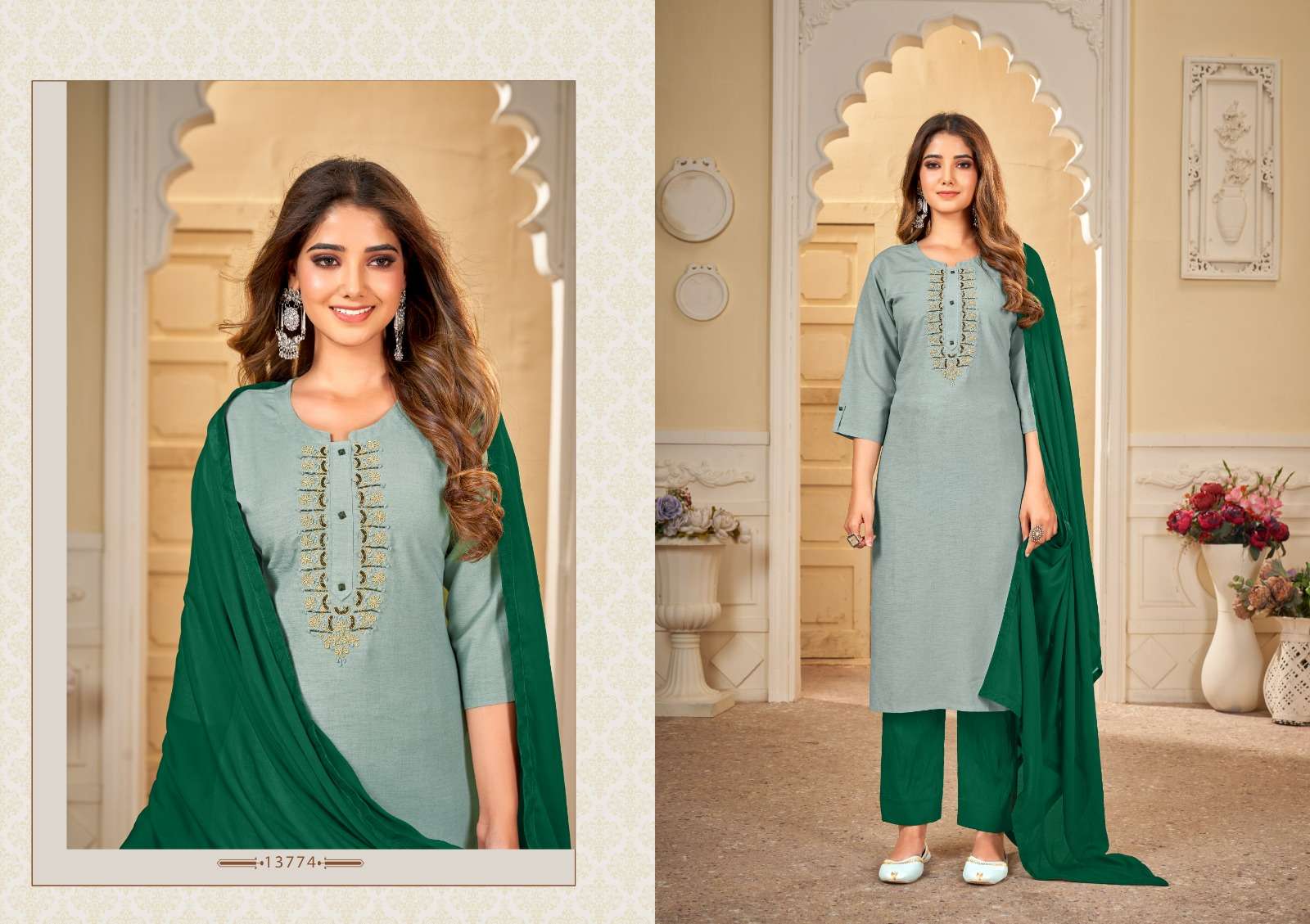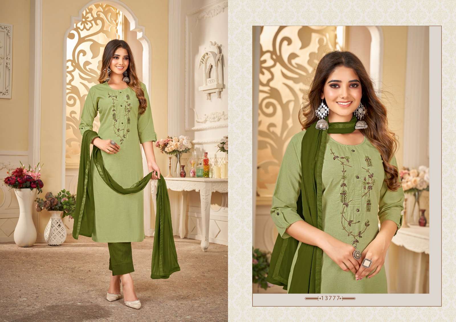 श्री गणेशाय नमः*🆕 Kalaroop by Kajree has launched Catalog name: khushbu 🔸 Fabric Details 🔸 ▪Top:- Fancy Riyon Silk Fabrics With Hand Work ▪Total Design:- 04 ◼️Pant:-Fancy Liva fabrics Duppatta Heavy chiffon ▪Size:- M, L, XL, XXL,3XL 💸 *Rate --- 825/-