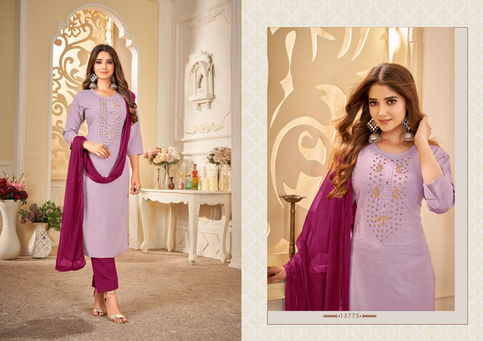 khushbu by kalaroop fancy handwork kurti with pant and dupatta