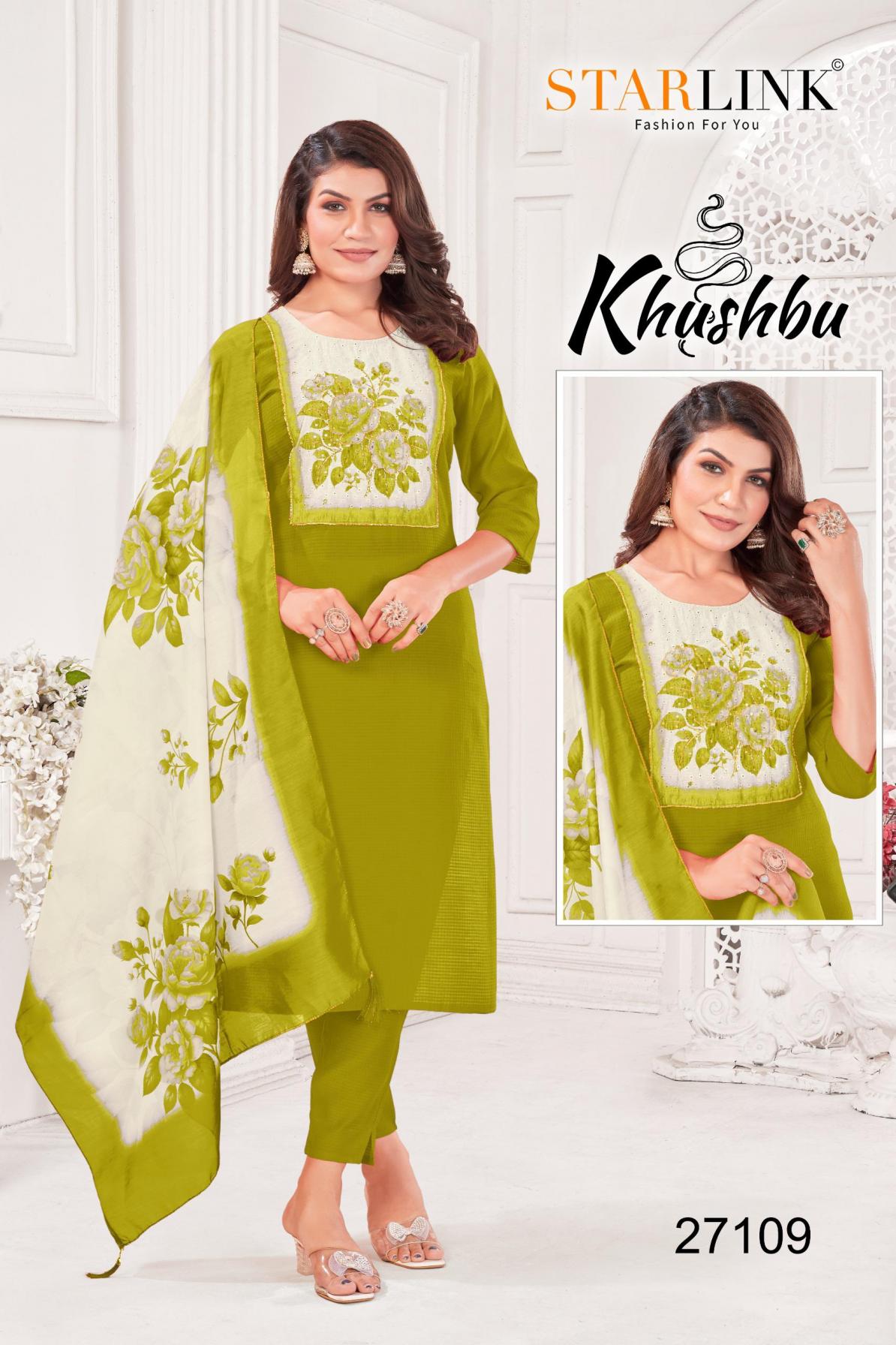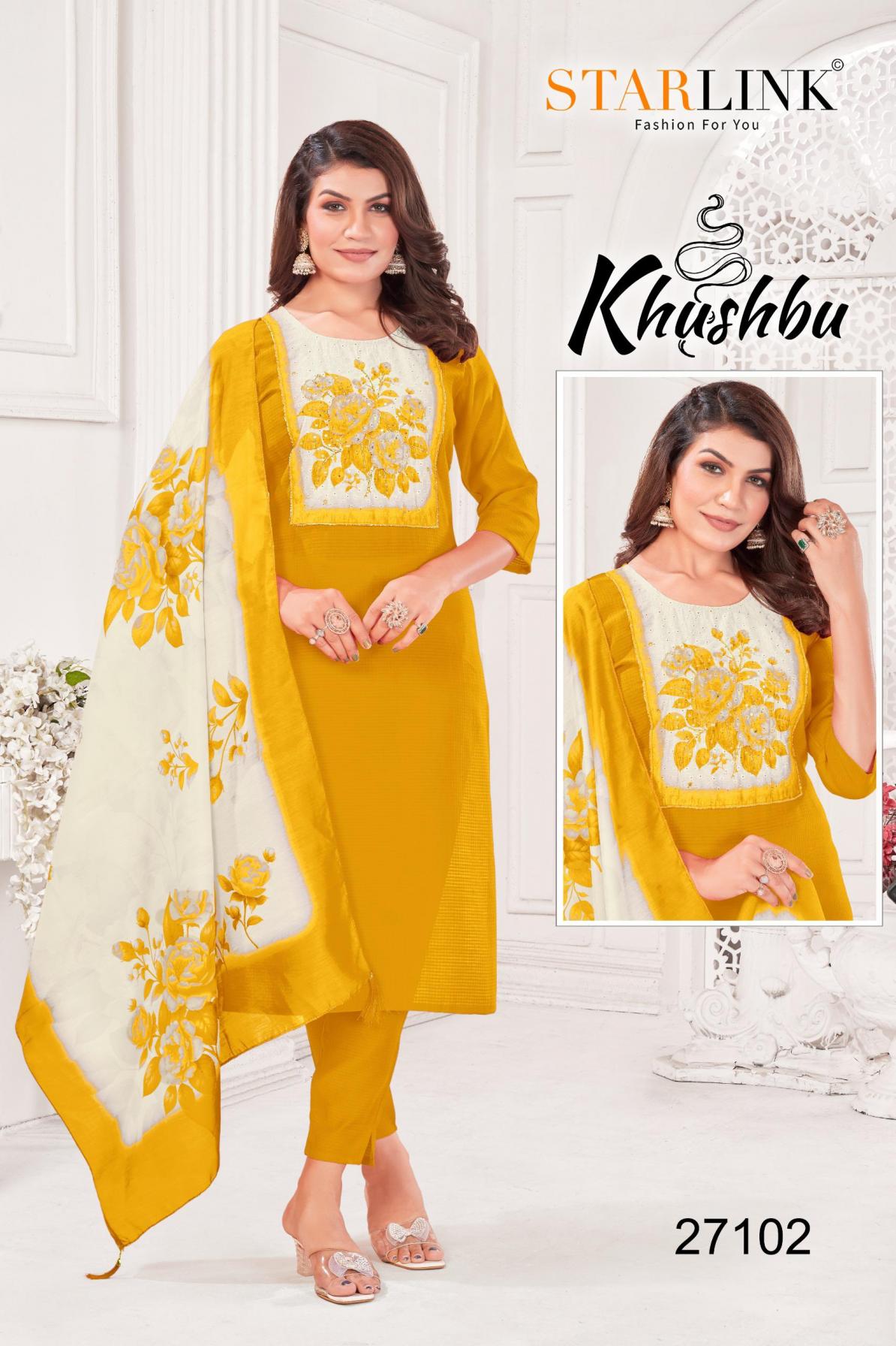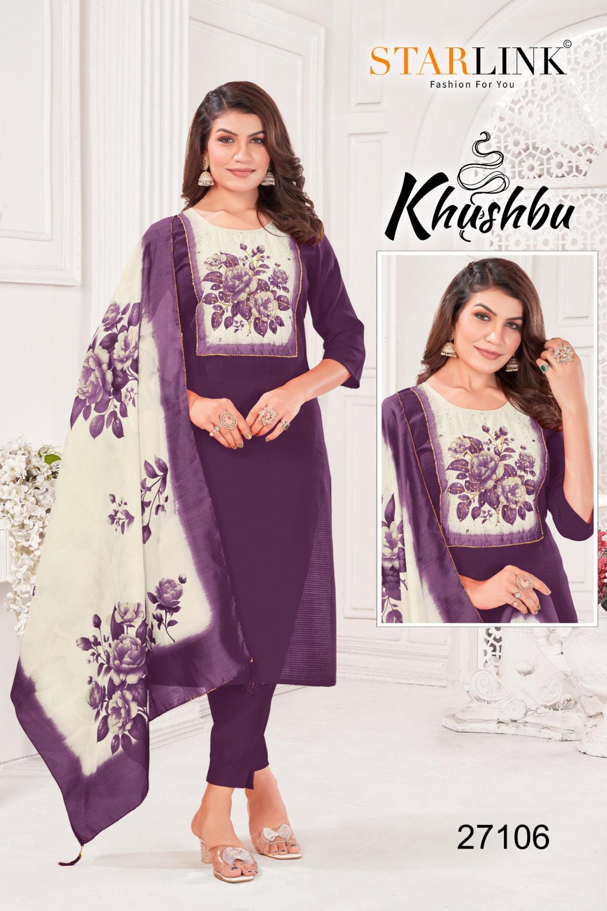 khushbu by starlink burlin pattern readymade classic combo suit for womens