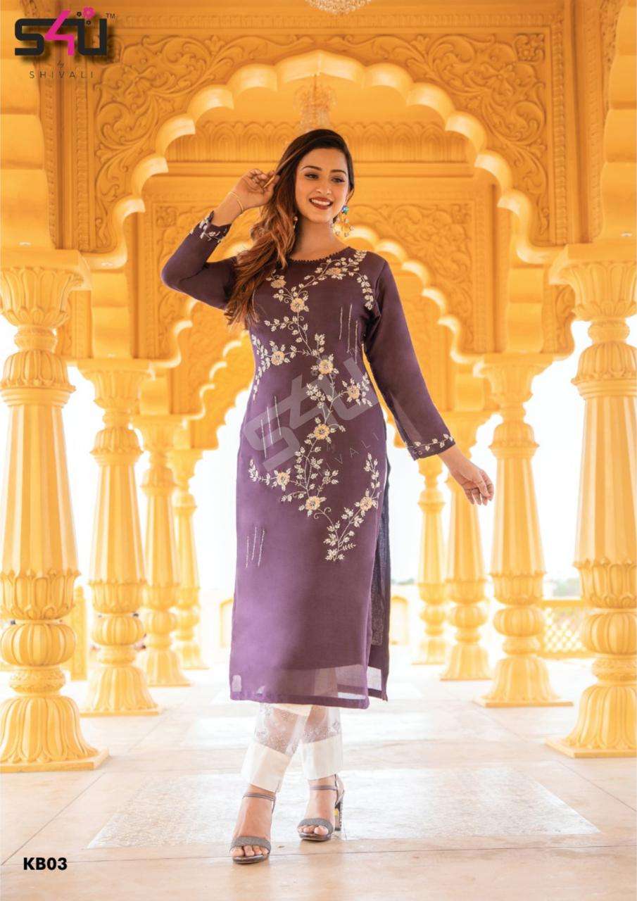 | Other Details | Sober, delightful and Super comfy pantwork style is now in trend. The straight cut kurtas with simplicity and hand work details goes perfect for every occasion.  For all the ethnic lovers this season's glamorous look is here - S4u by Shivali launches " KHWAAB " No of designs - 6 Size - M, L, XL, 2XL,3XL,4XL Fabric - Muslin Rate -1425/- Note - Colors may slightly vary due to light effect during photography. |