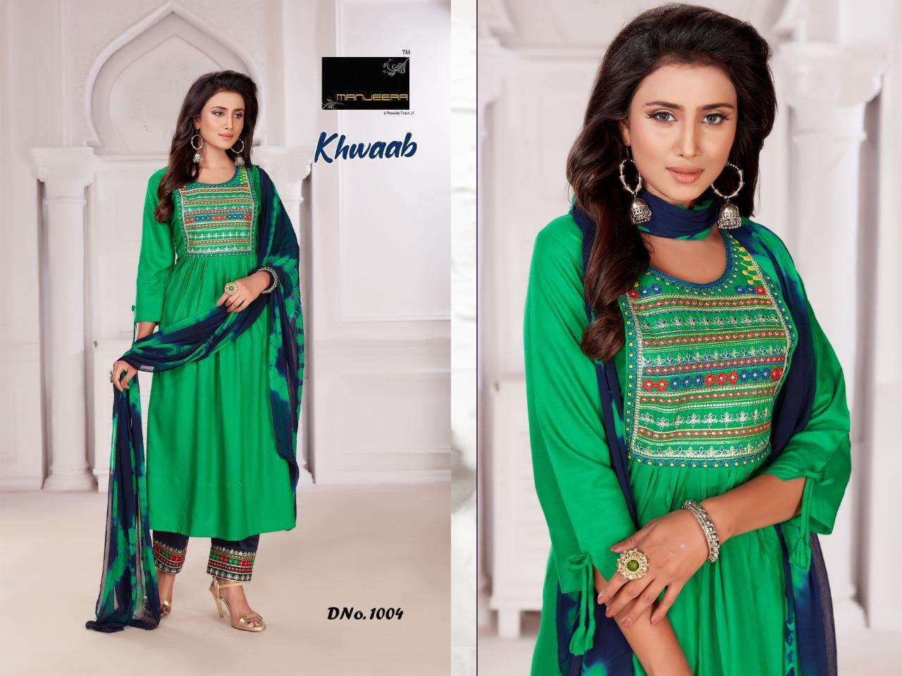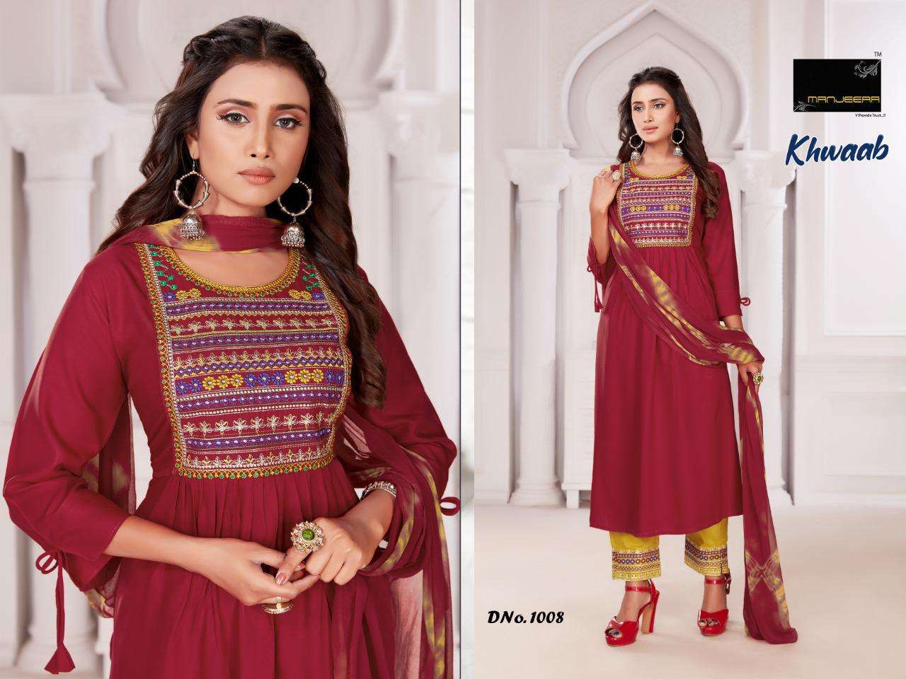 Khwab By Manjeera Heavy Rayon Readymade Suit Catlog