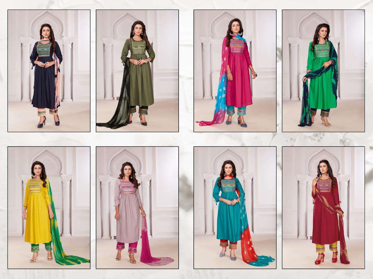 Manjeera KHWAB TOP-: REYON 45 Length Bottom-: Pant Duppata-: Shiburi Size-: L XL XXL Rate-: 620/- |