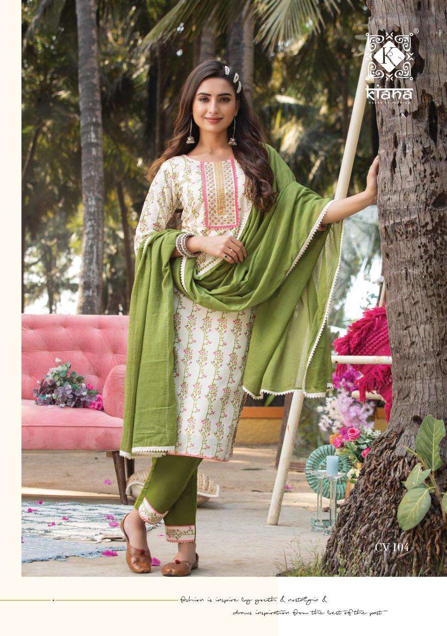 Summer Collection🌞 👑Kiana👑 Catalogue Name- 👗TOP :- Pure Cotton print with ,thread 🪡 work Bottom:- Modal Slub pant with fancy Style, less work Dupatta:- Pure mal cotton , cotton less border 🎗Size :- M(19) L(20) XL(21) XXL(22) ☣Designs :- 8 pcs |