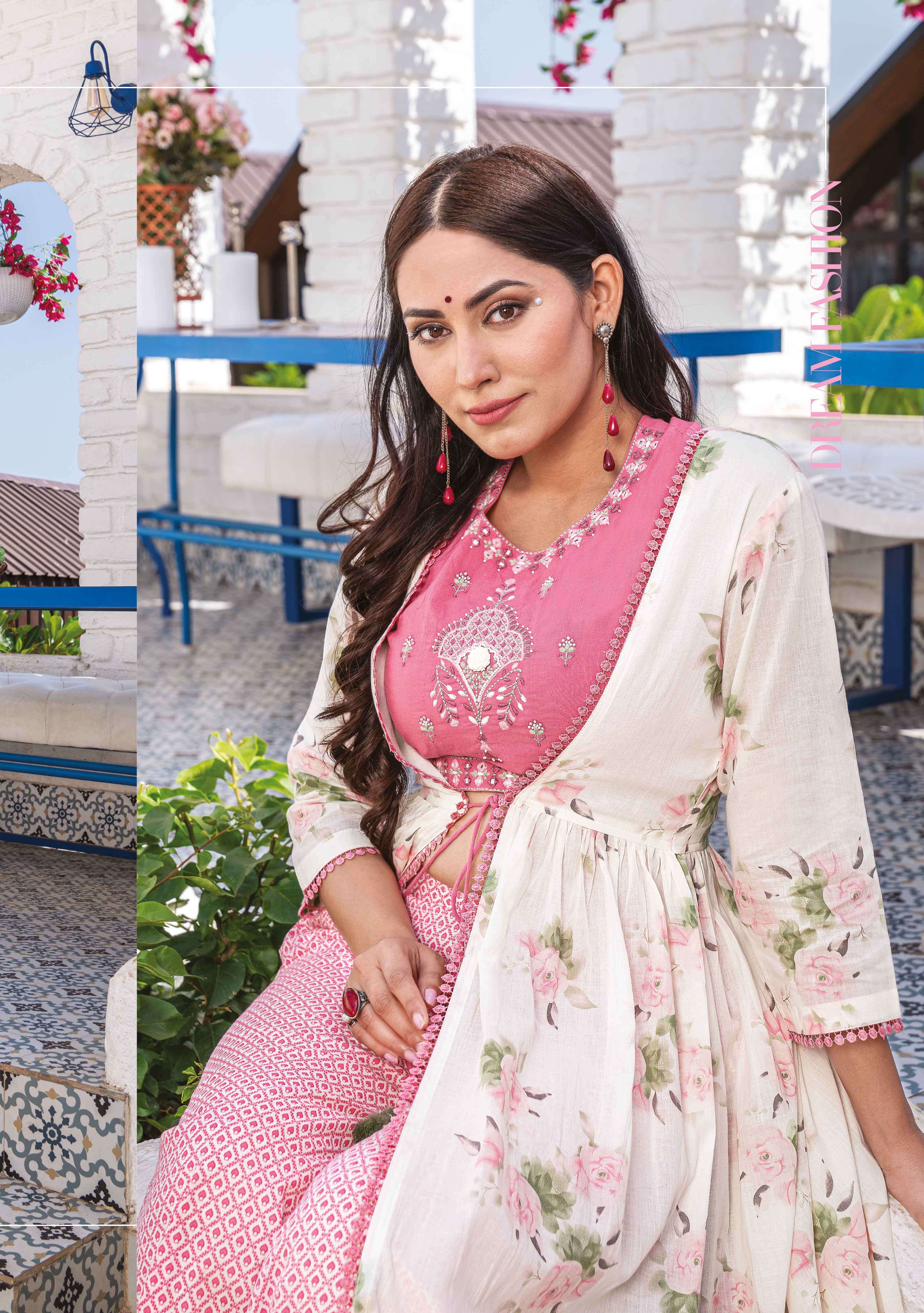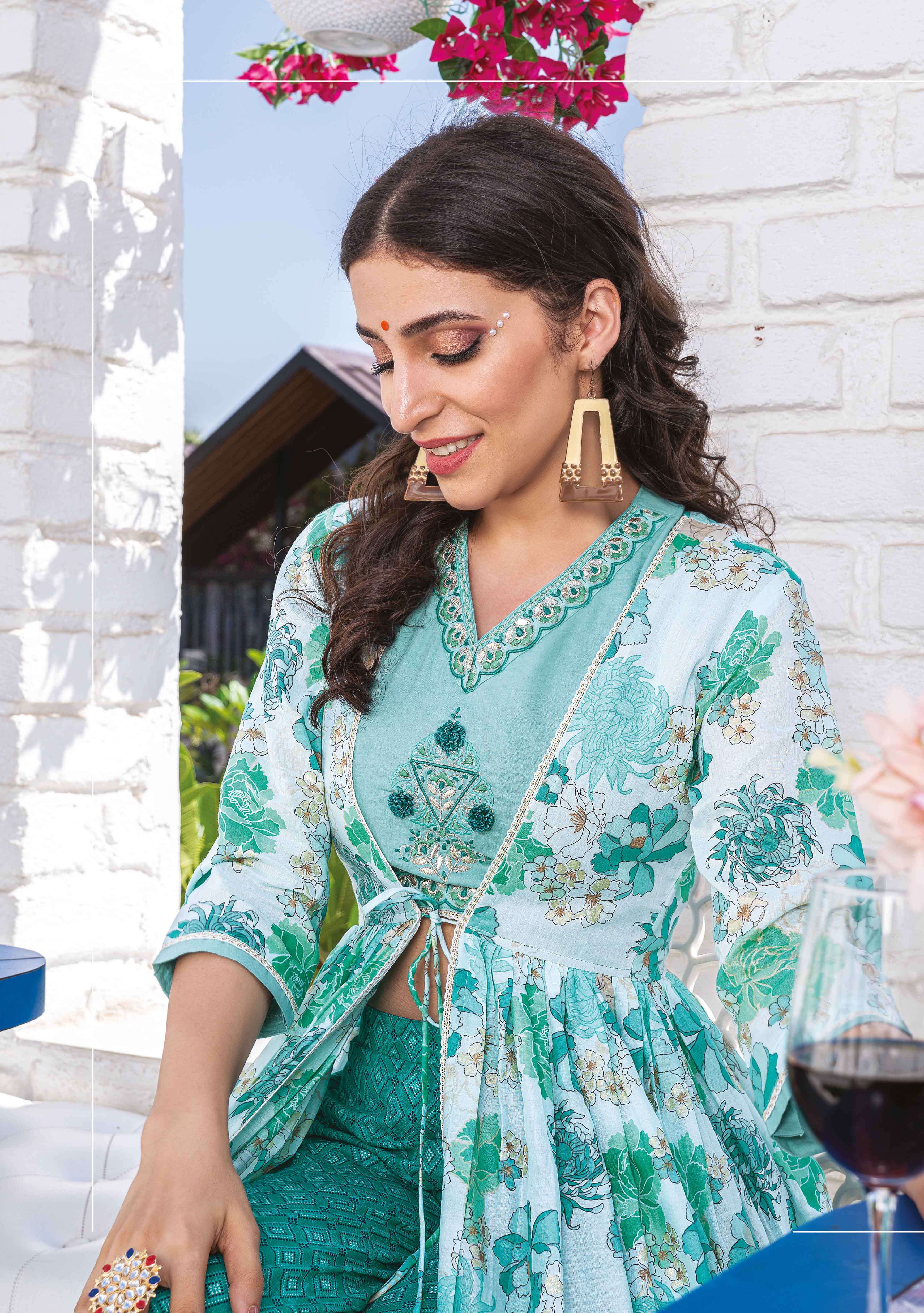 🪷 Kiana 🪷 Look stylish for 🎁 Rakshabandhan festival 🎁 new 3 piece Jacket style Catalog :- 🪻 Rangrez 🪻 👗TOP :- Pure Cotton crop top with Thread 🪡 work embroidery work Handwork touch Bottom :- Pure cotton plazzo and pant Top Jacket :- Pure mal mal fabric printed with cotton lace Size :- M(19) L(20) XL(21) 2XL(22) 3XL(23) ☣Designs :- 6 pcs Rate - 950/- |