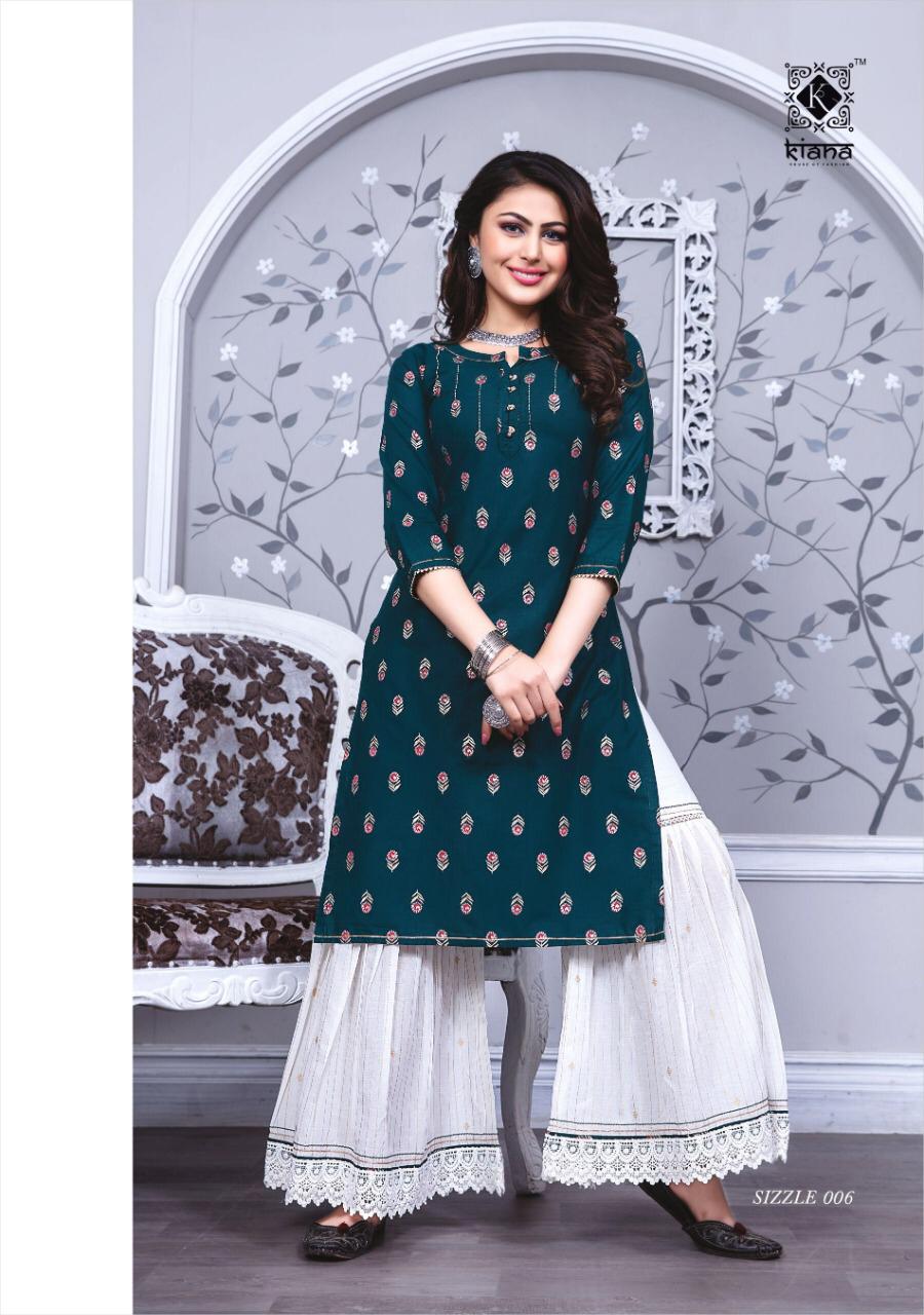 👑Kiana👑 House of fashion 👗Catalogue Name- New series 💃SIZZLE💃 👗Fabrics :- Modul flex Top with cotton mul sharara 🎗Size :- M, L, XL, XXL, XXXL  ☣Designs :- 8 pcs Rate - 790 per pcs . Set to set . GST 5 Percent Extra. Delivery 5-6 days . Note:-colors may be very slightly due to light effect during photography |