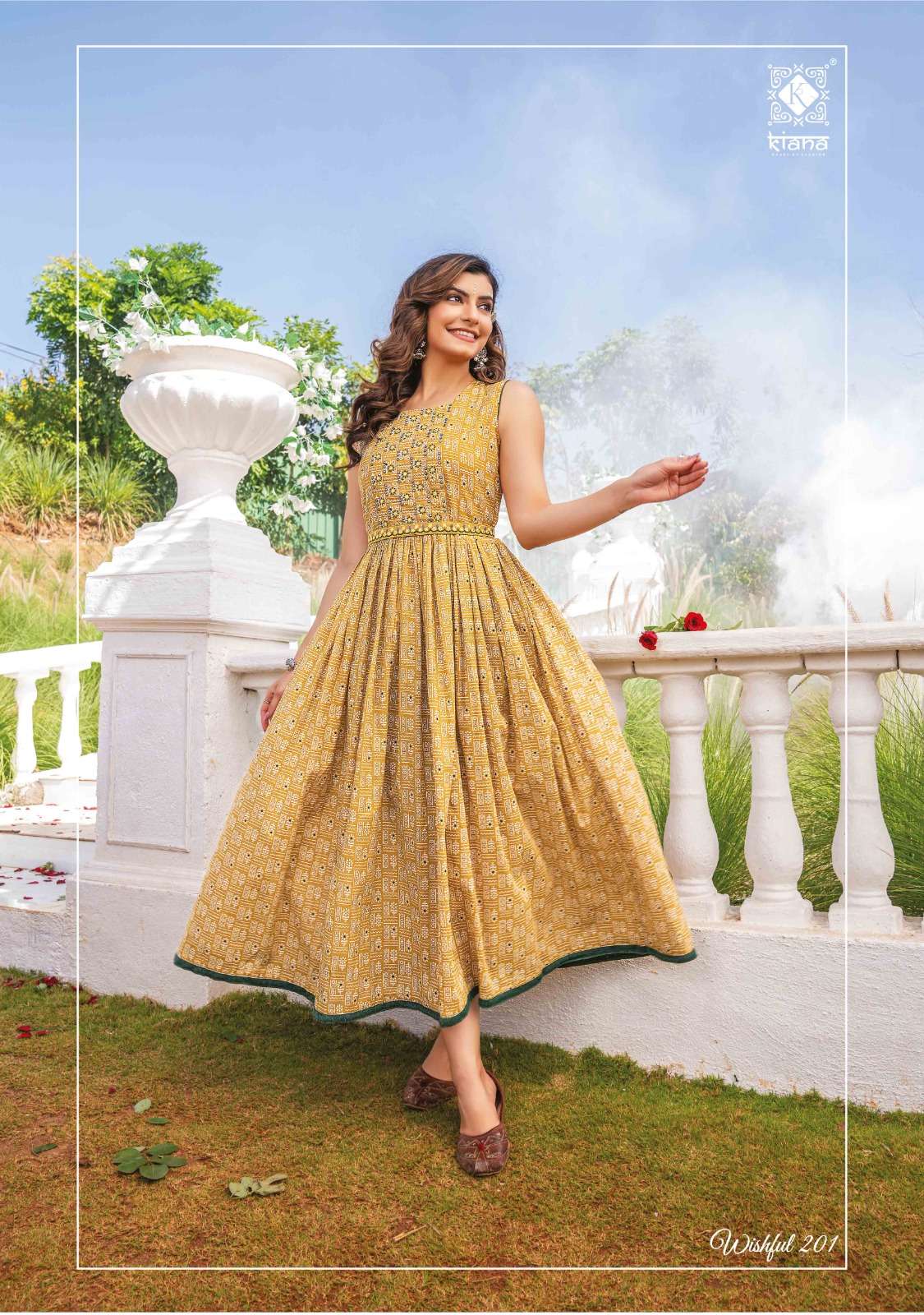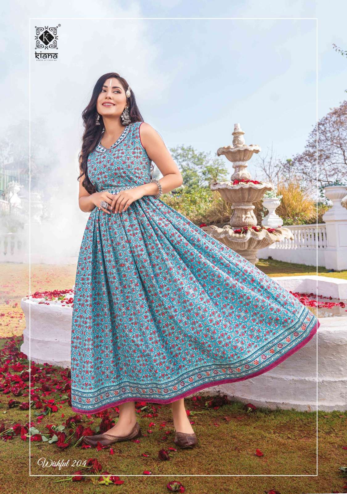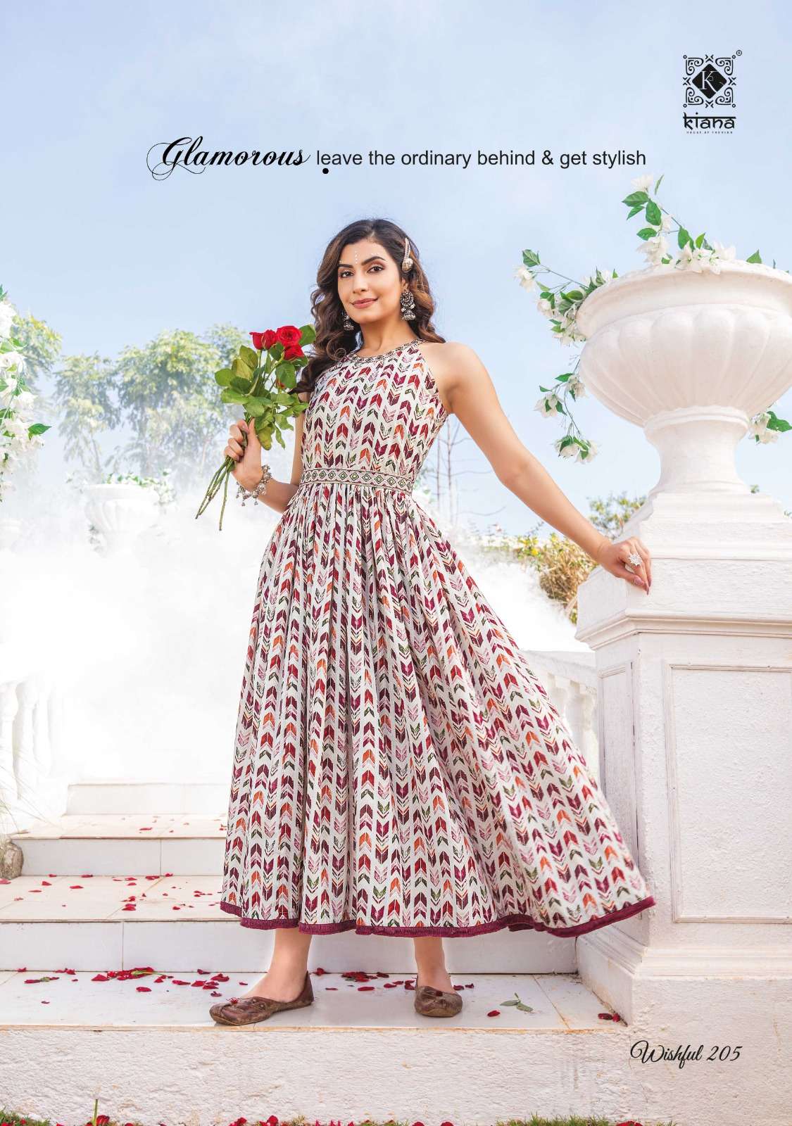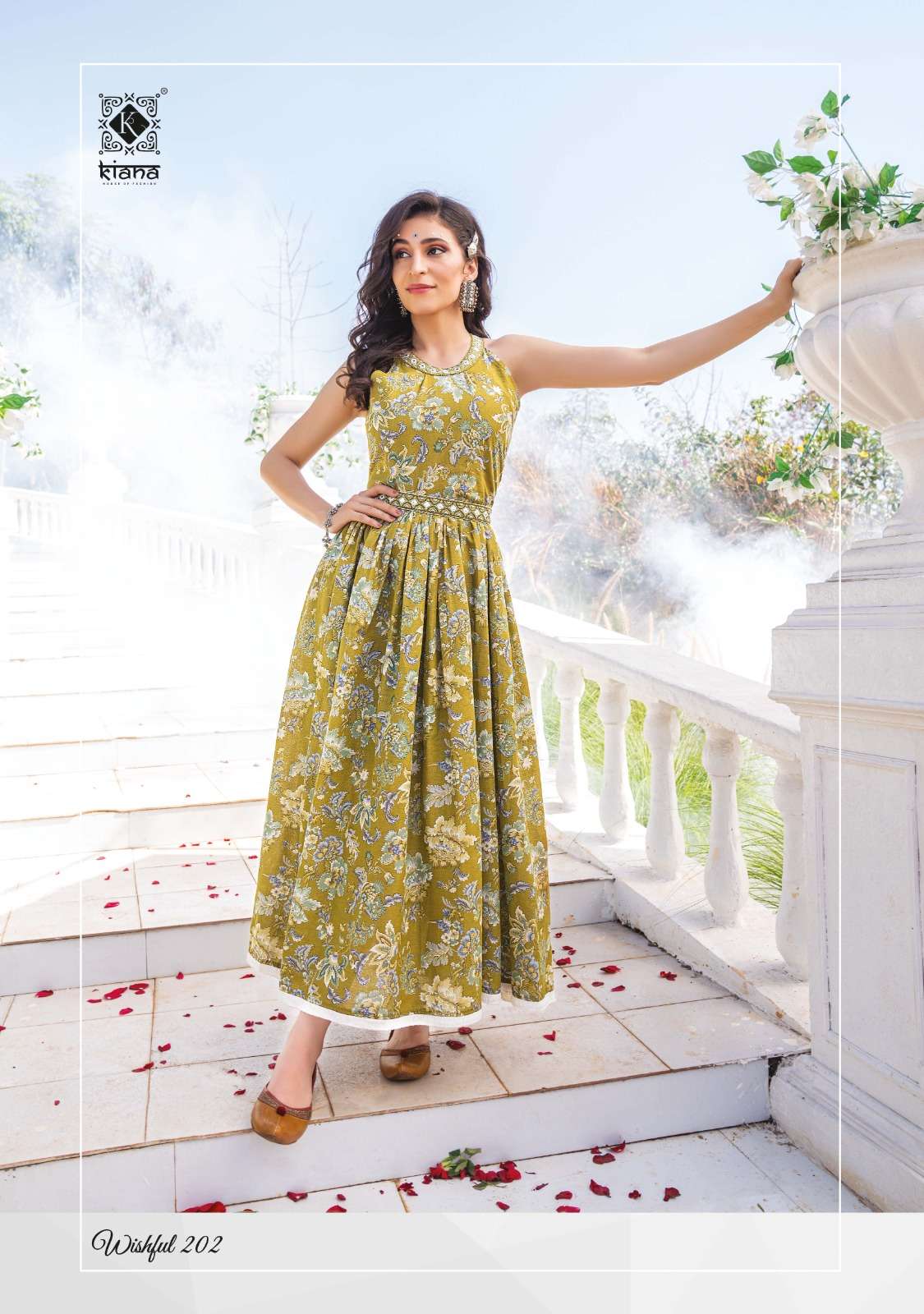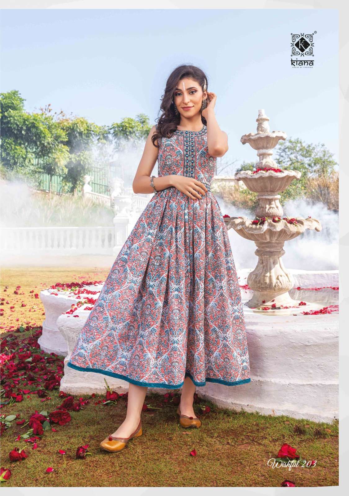 kiana wishful vol 2 designer printed fancy long kurti with work belt