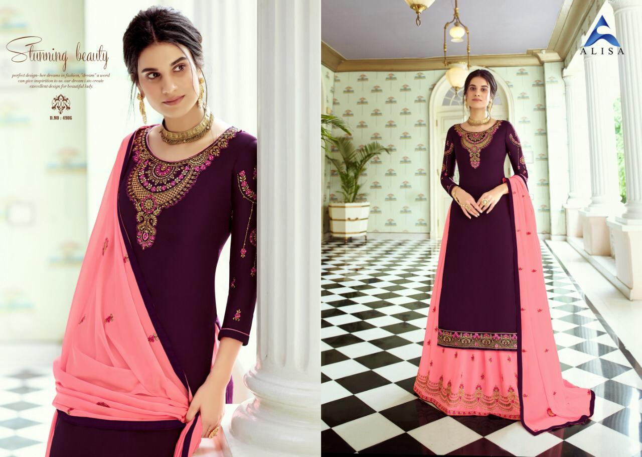 Kiara Vol 4 By Alisa Satin Georgette Long Designer Party Wear Ghaghra Style Salwar Suita Supplier