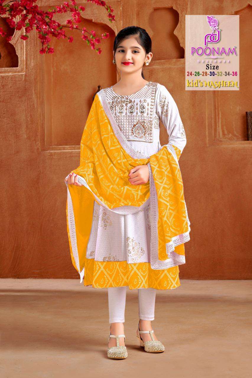 kids nasheen by poonam pure rayon girls gown with dupatta