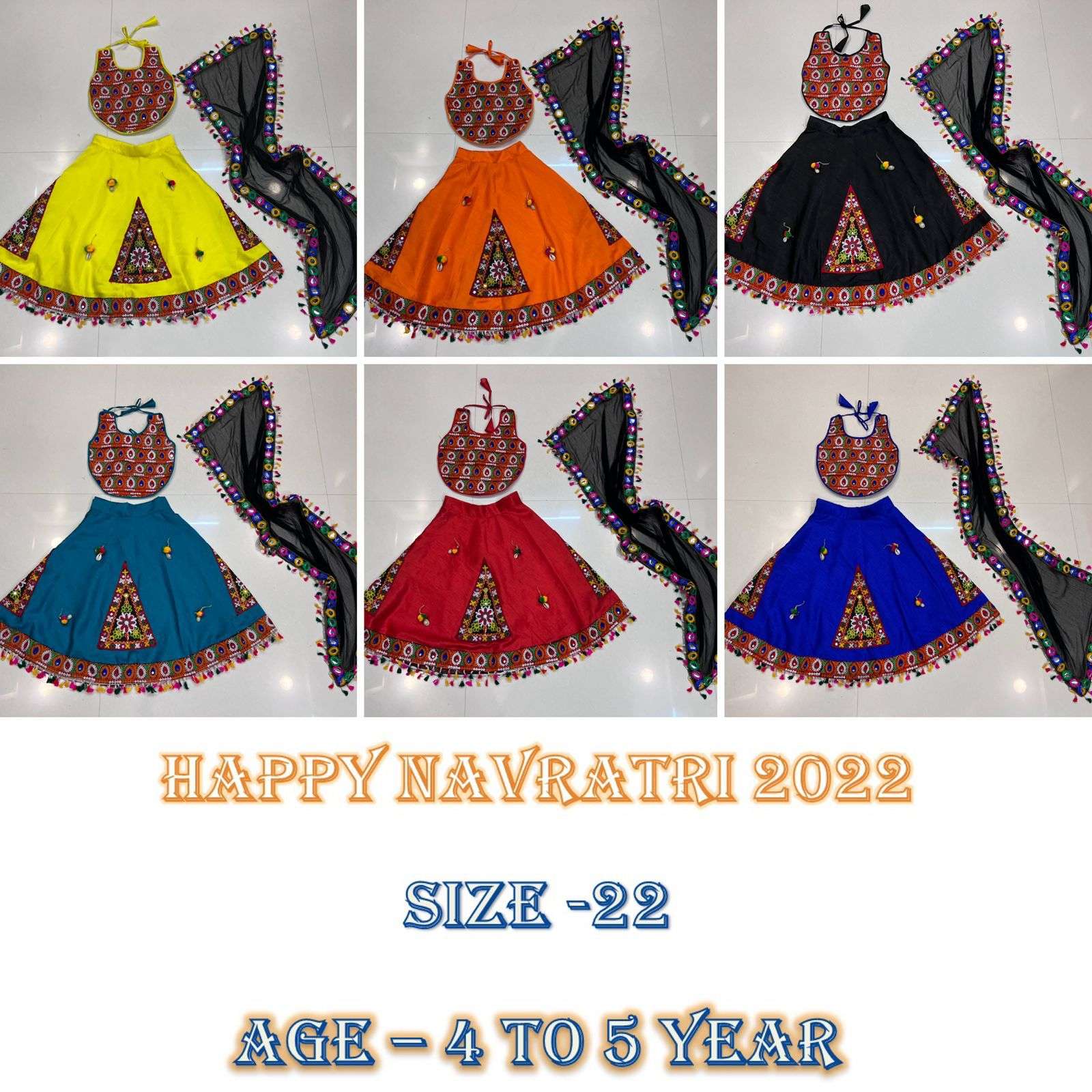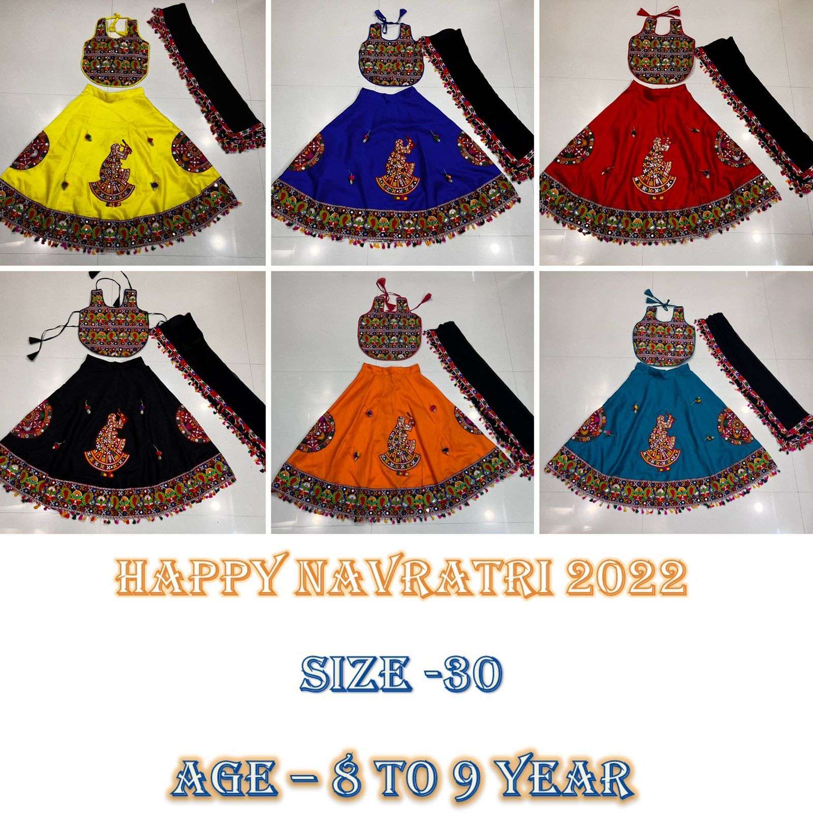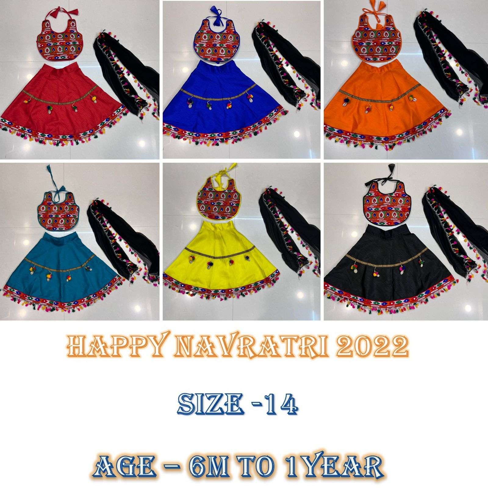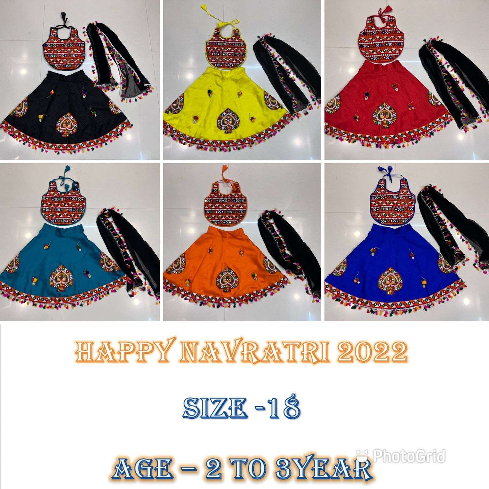 KIDS SPECIAL NAVRATRI GARBA OUTFITS 2022 BY AAWIYA ➡NAVRATRI KIDS SPECIAL NAVRANGI KUTCHI WORK CHANIYA CHOLI WITH DUPPTA. 🛑 FABRIC DETAILS 🛑 💜💜6 COLOURS AVAILABLE ALL SIZE RED🔴, BLACK⚫️, ORANGE🟠, ROYAL-BLUE🔵, C-GREEN🟢, LEMON 🍋 🛑 DETAILS🛑 🛑PRICE DETAILS 🛑 SIZE 14 (6M - 1 YEAR) 👉🏽PRICE 450/- |