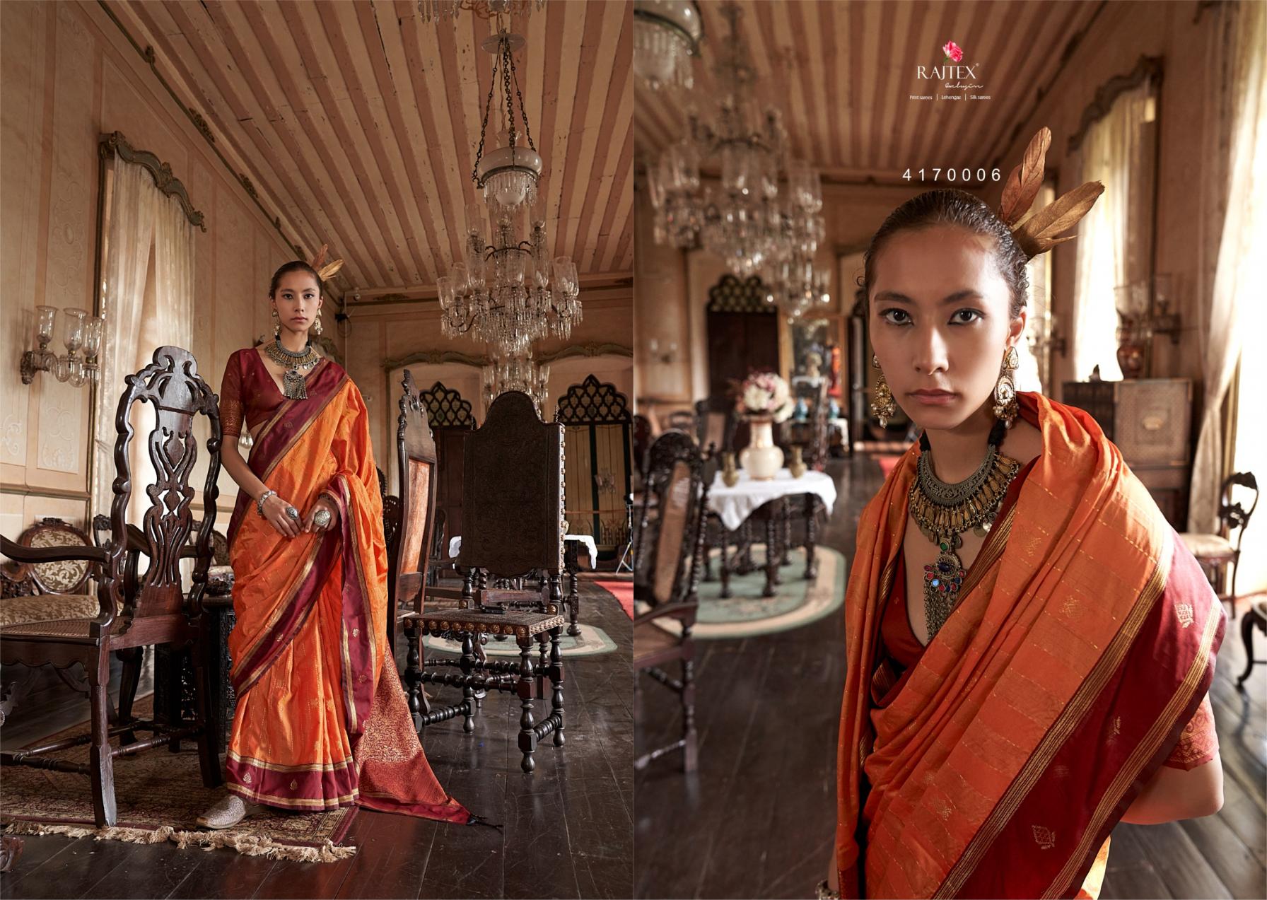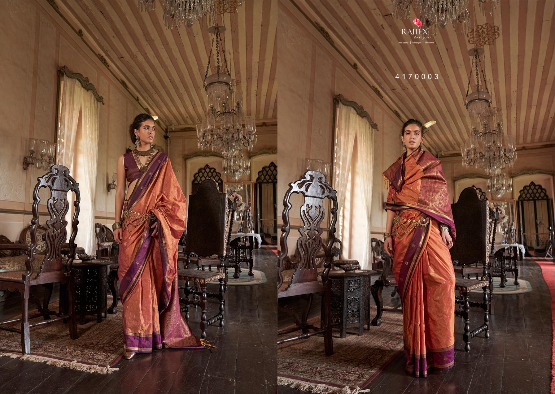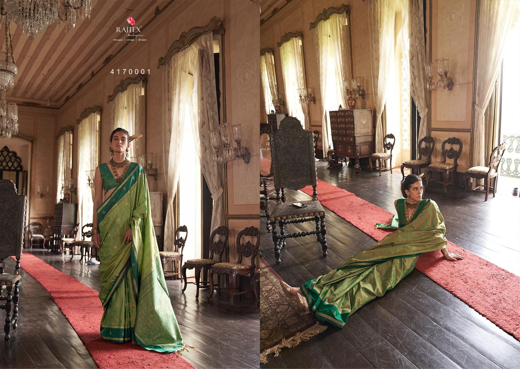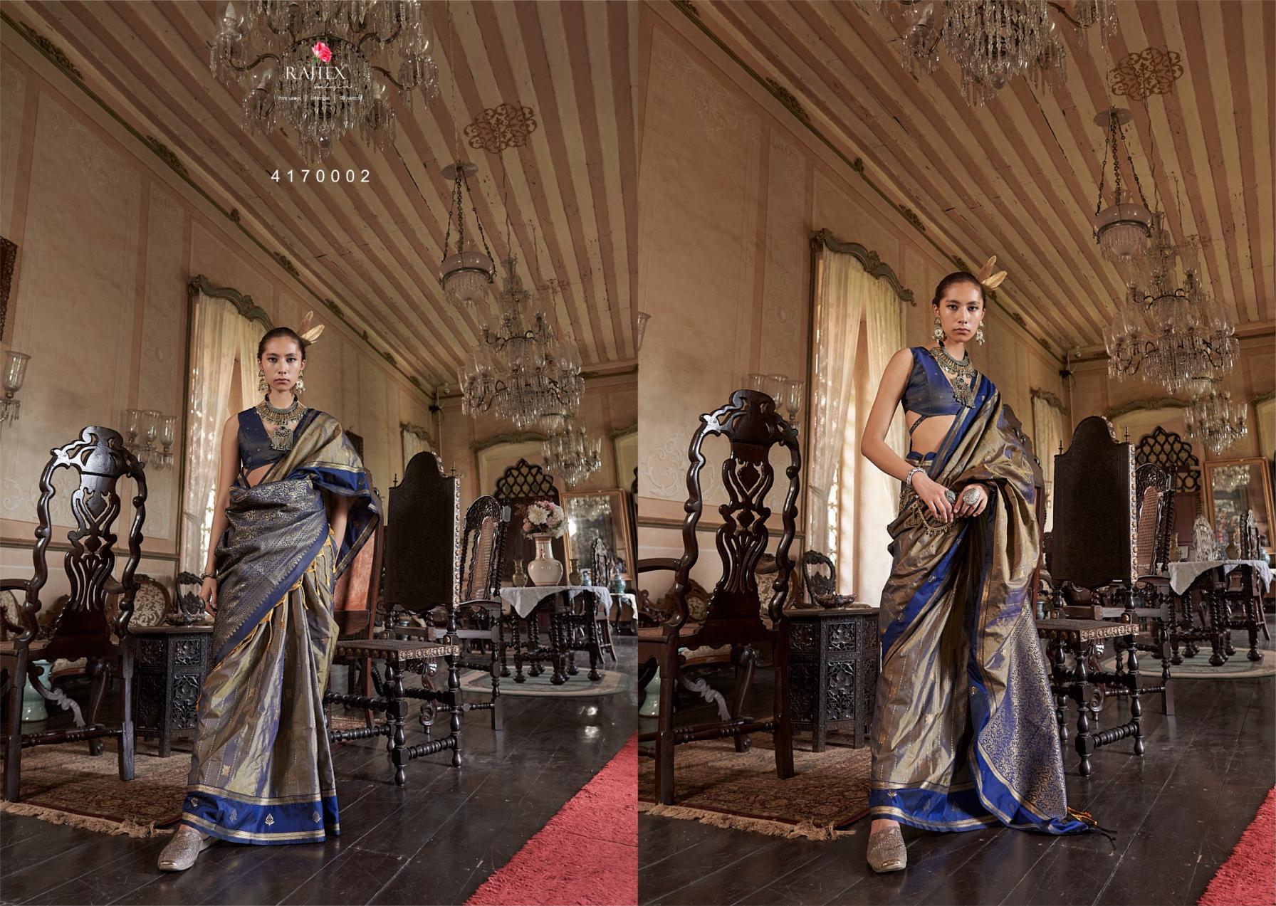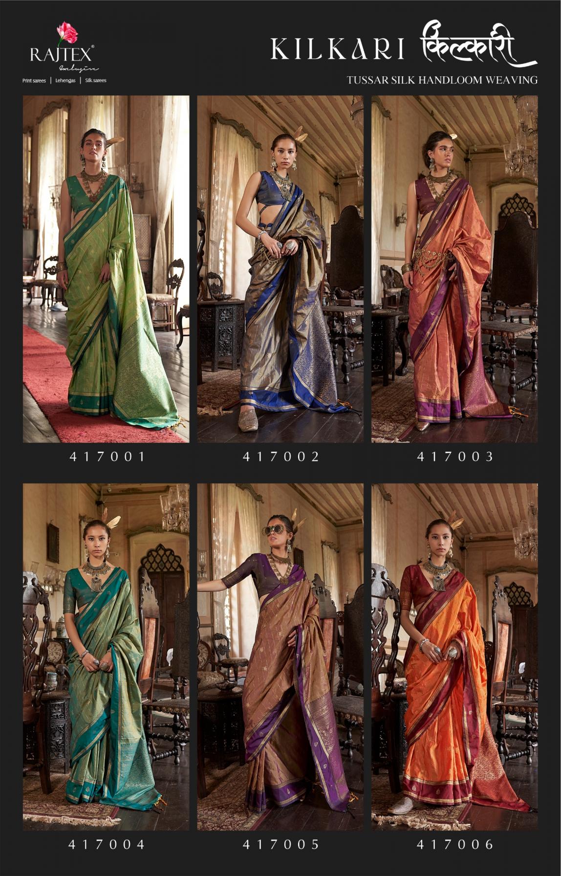 This Saree Collection Will Upgrade Your Dressing Style. Wear A Class And Be A Trend Maker, With These New Sets Of Sarees. These Fabrics Are Durable, Have Good Drapability, Soft When Touching Brand : Rajtex Catalog Name : Kilkari Series: 417001 To 417006 Saree Fabric : Exclusive Tussar Silk Fabric With Elegant Weaving Work Contrast Border Saree Blouse Fabric :Pure Silk Tusser Silk Combination With Zari Butti Rate : 1415/- +5% Gst Occasion: Party Wear, Karnival Wear |