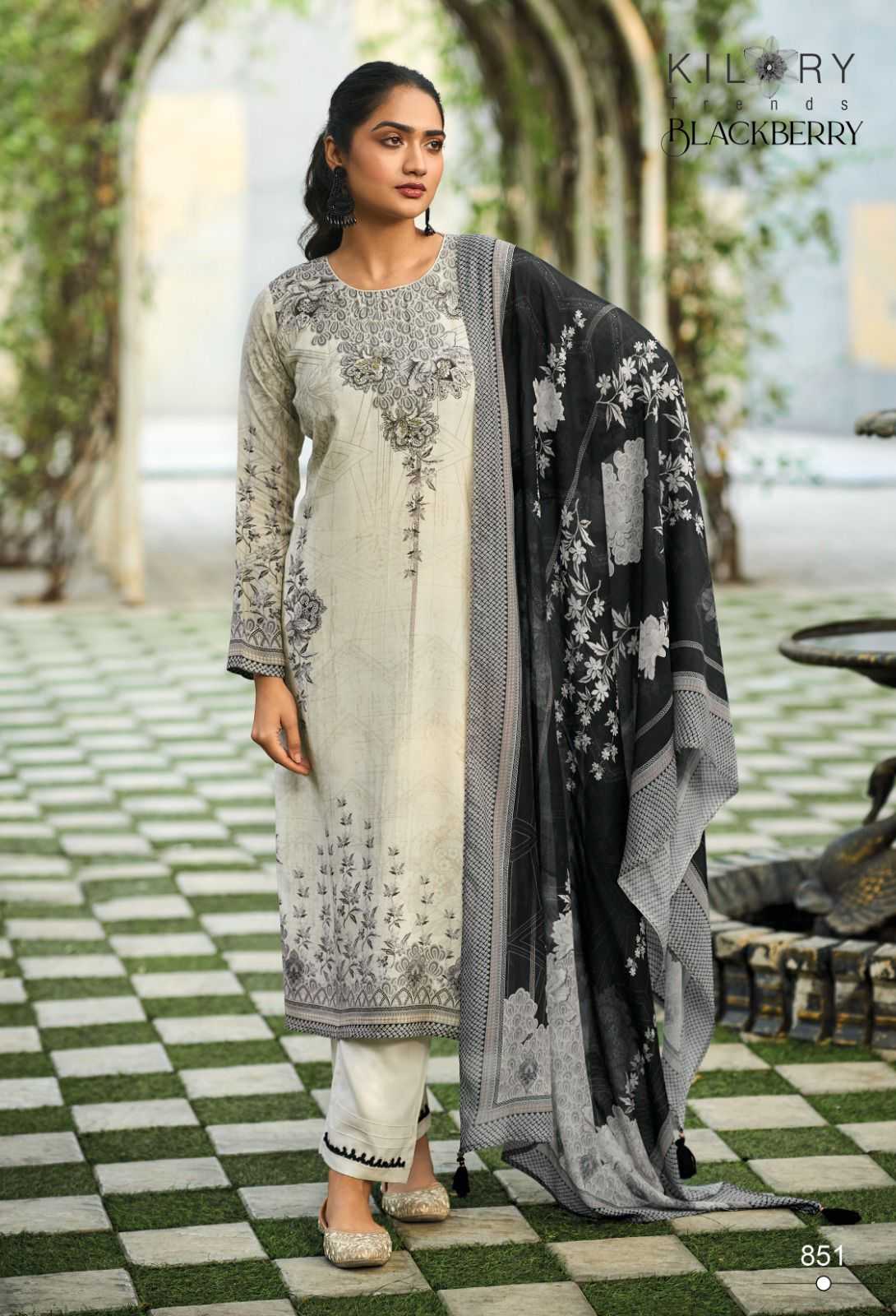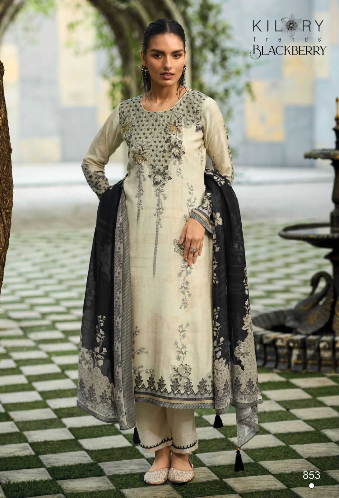 kilory trends blackberry pakistani muslin digital print with handwork dress material