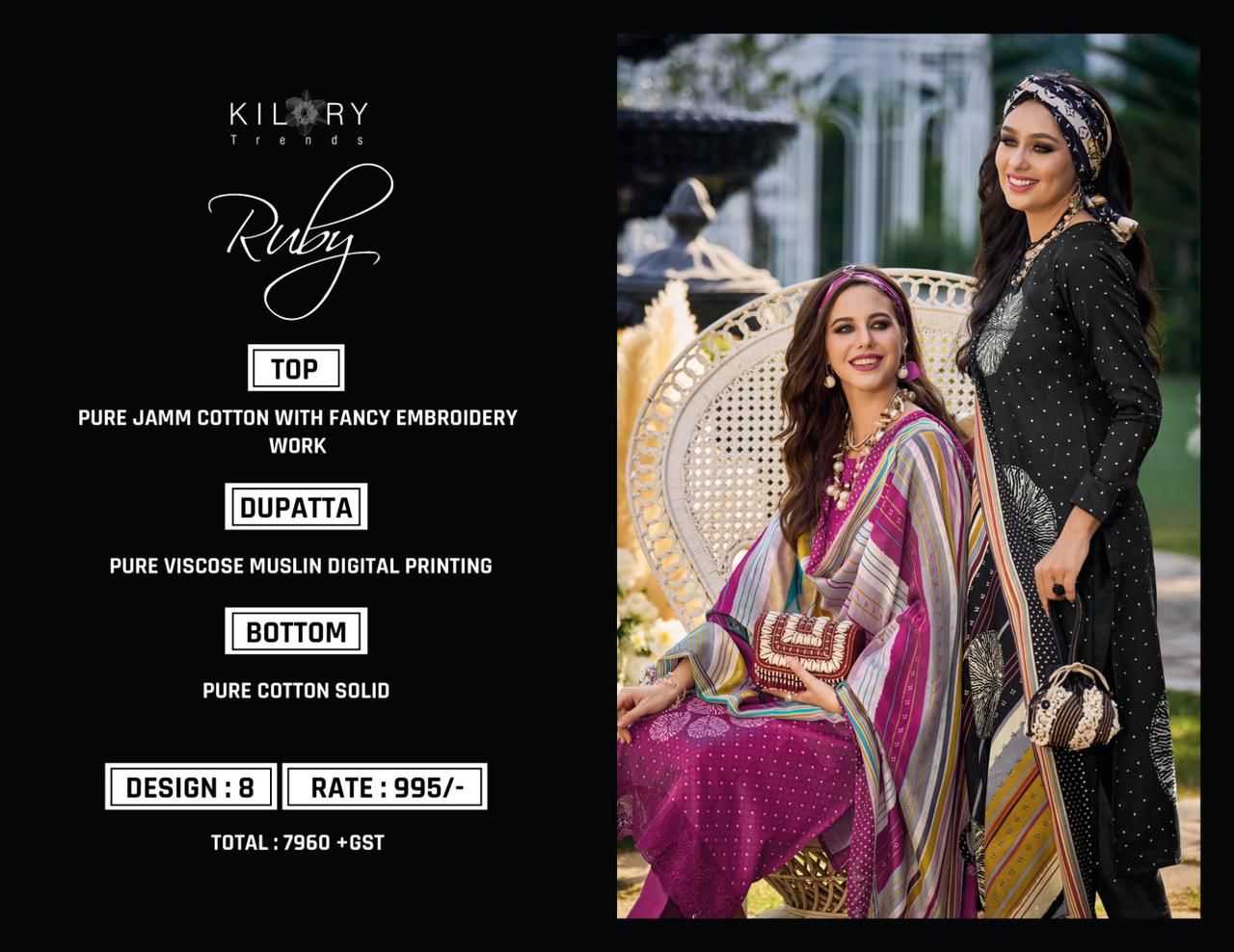 Kilory Trends Presents Latest Collection Launched on 06-02-2024. Presenting Beautiful collection of 8 PCS with Unstitched .