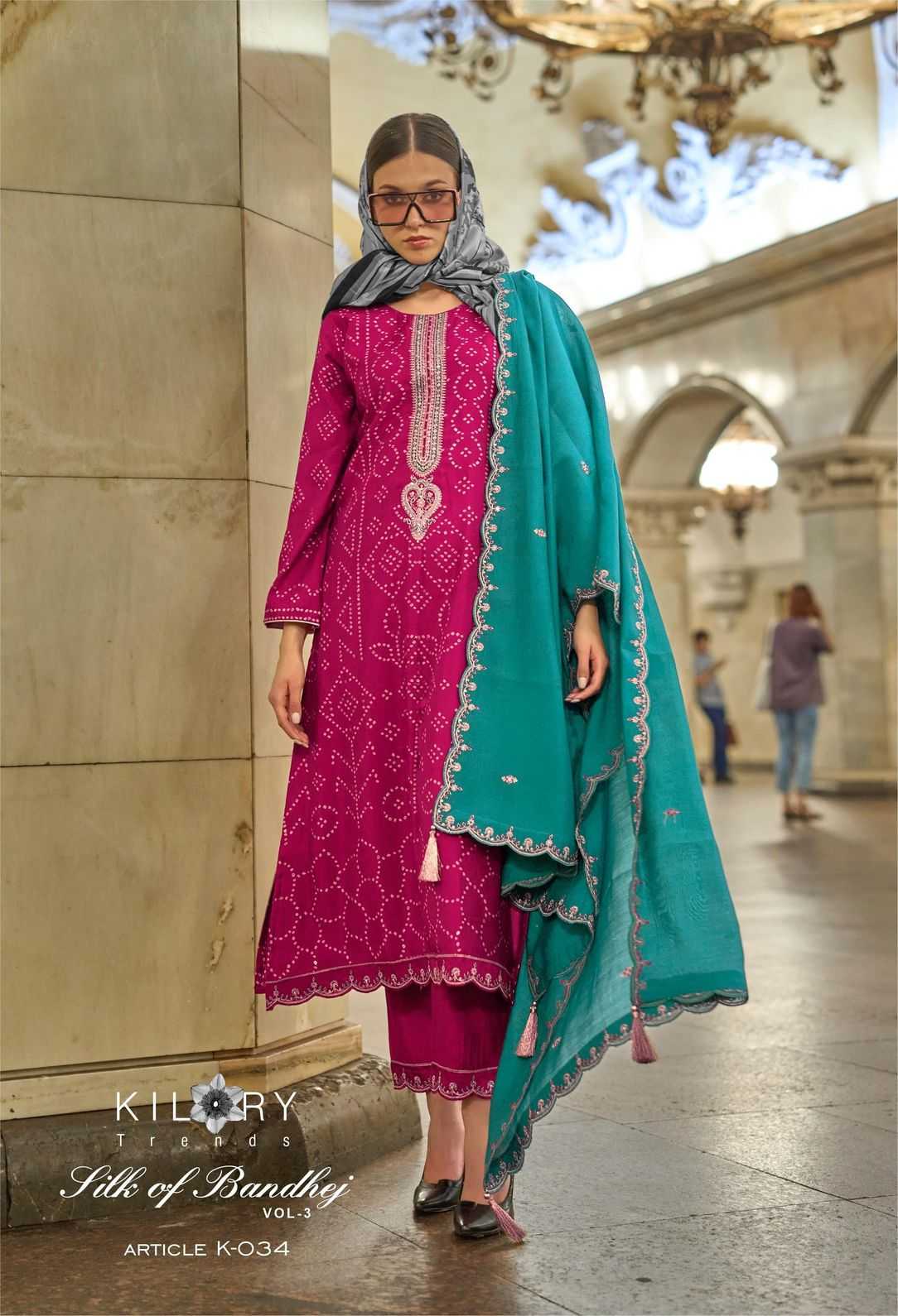 kilory trends silk of bandhej vol 3 viscose musline pakistani 3pcs dress