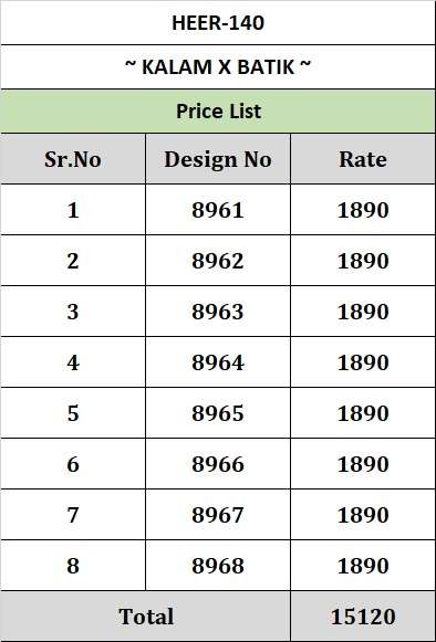 AVAILABILITY: On Booking HEER VOL 140