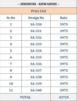 AVAILABILITY: On Booking KHWAHISH 330-340