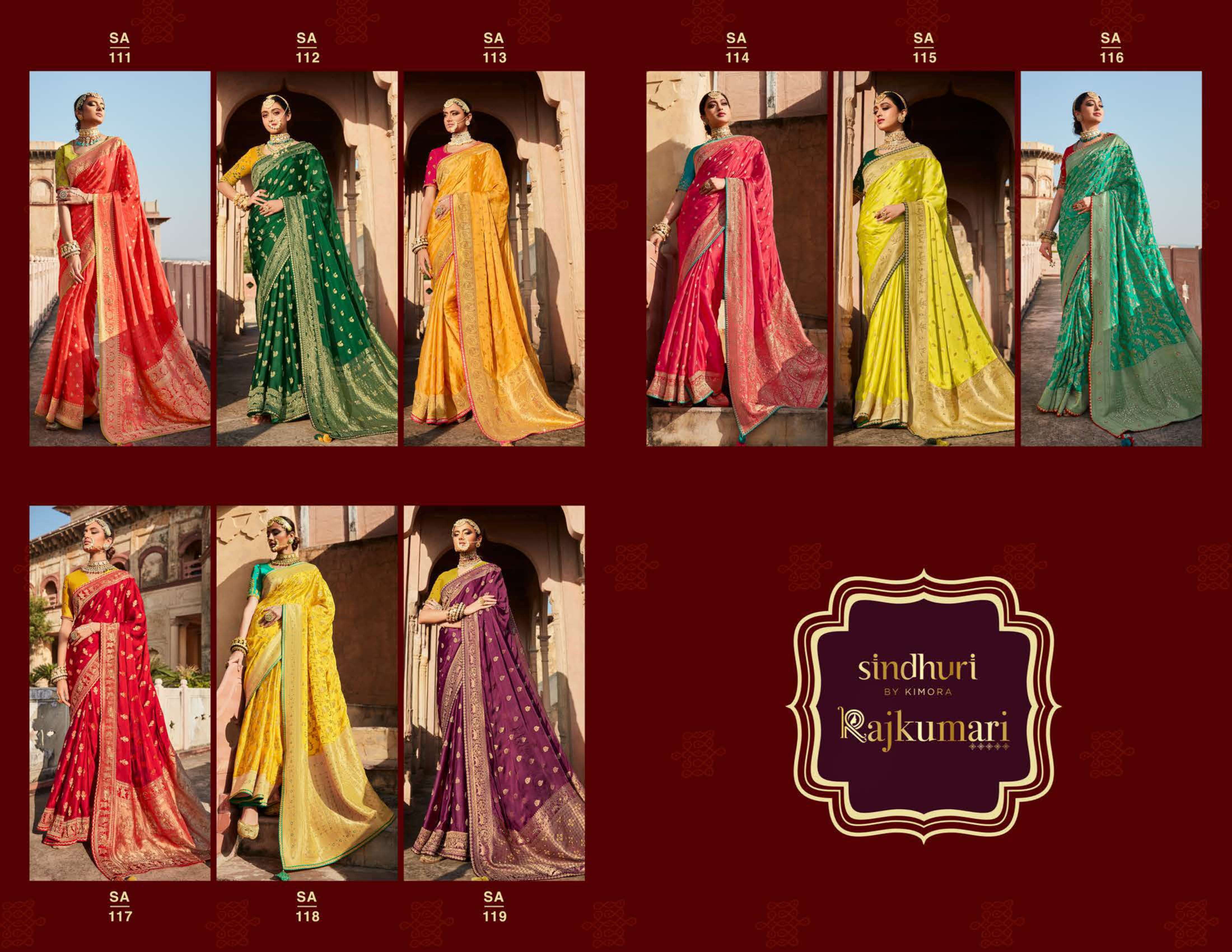 kimora sindhuri rajkumari 111-119 series wedding sarees bridal sarees wholesale