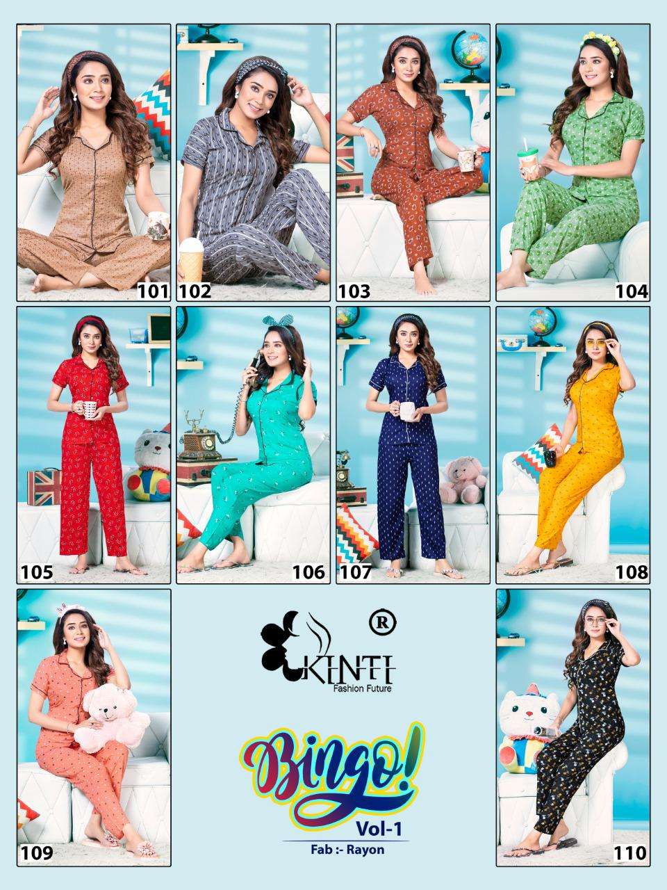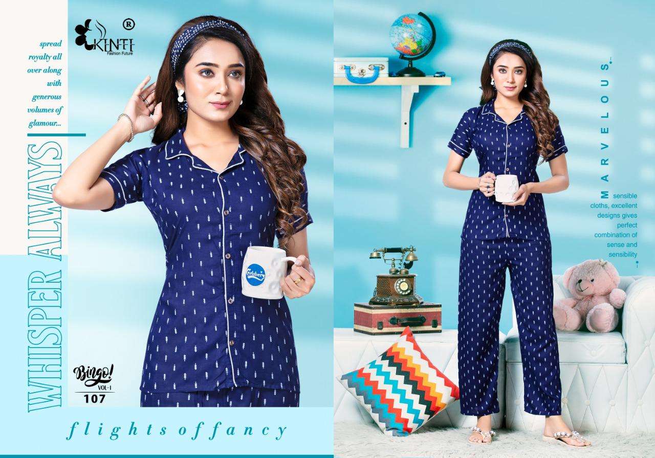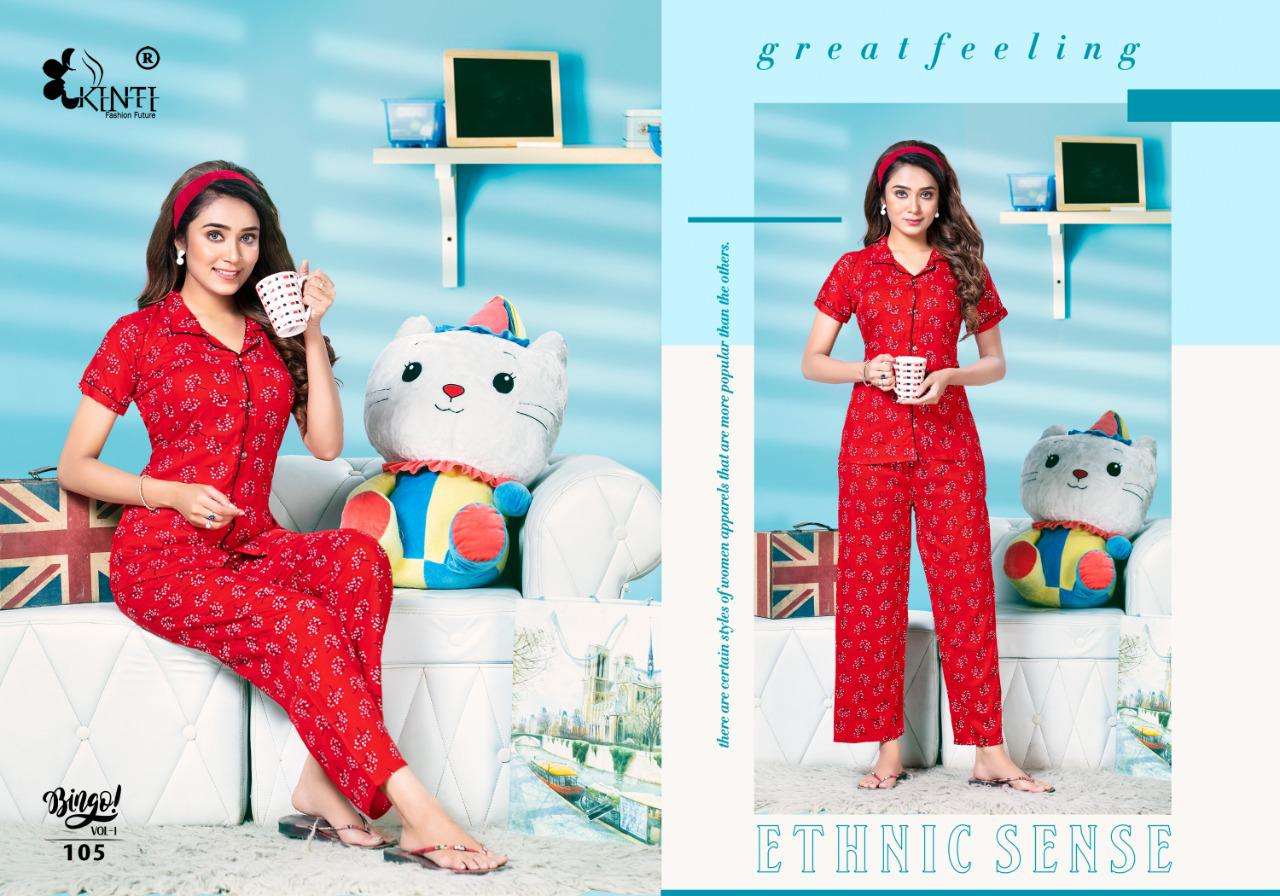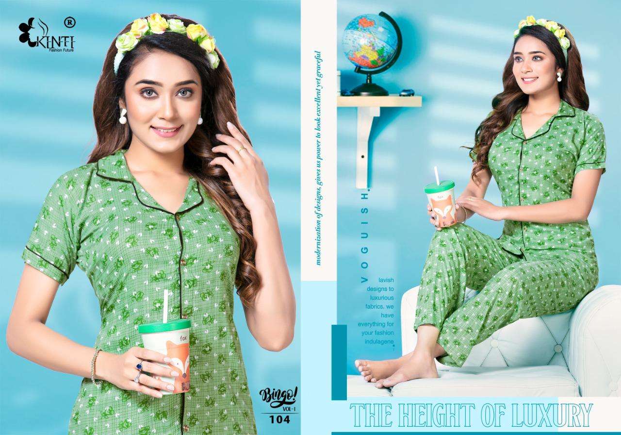 Kinti Bingo Rayon Casual Night Suits Wholesaler