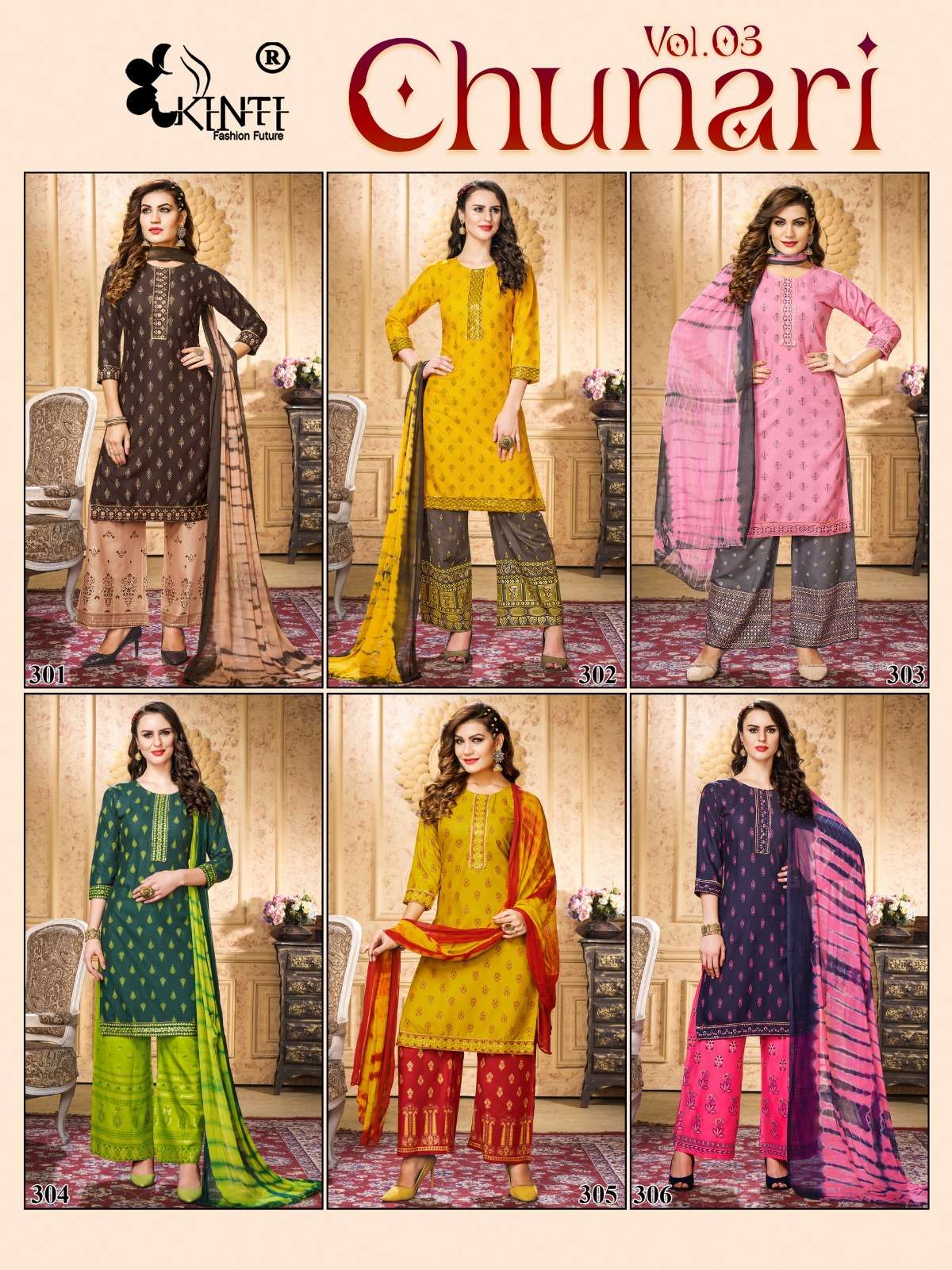 kinti chunari vol 3 straight fancy kurti with plazo and dupatta at reasonable rate