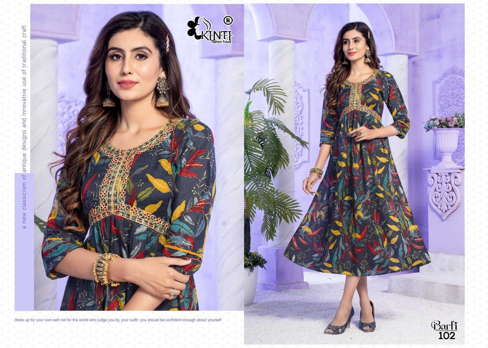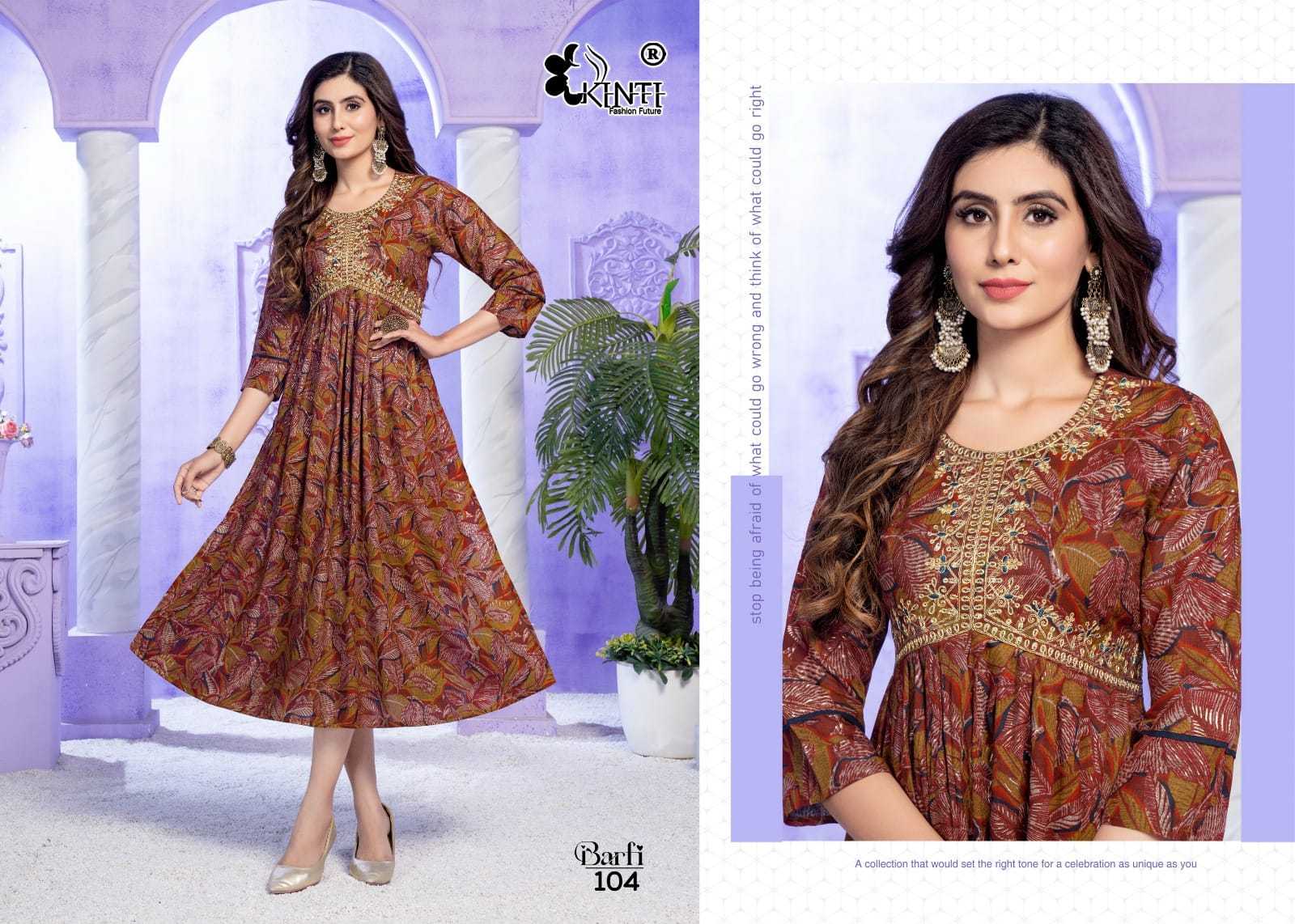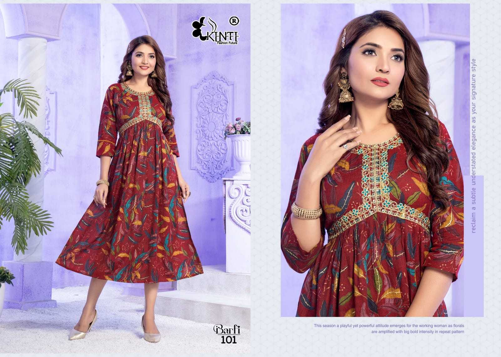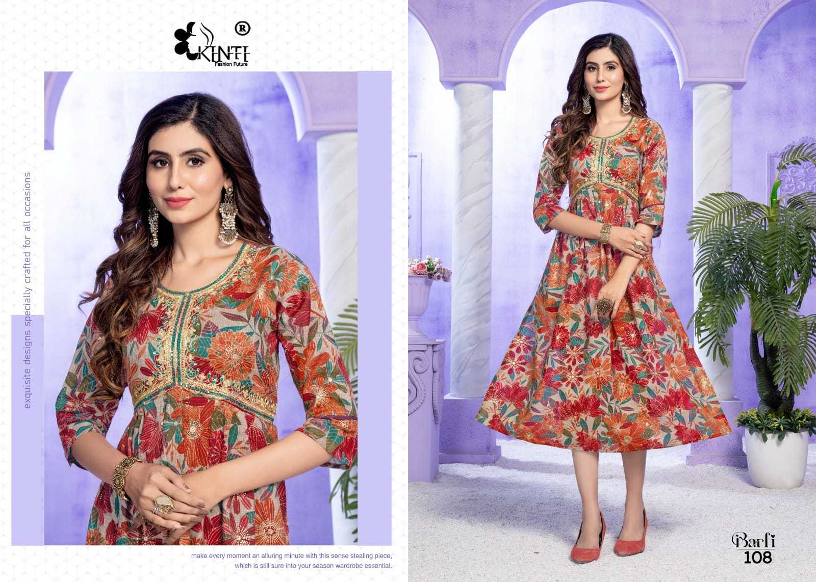 kinti present barfi nayra cut fullstitch kurti for occasion