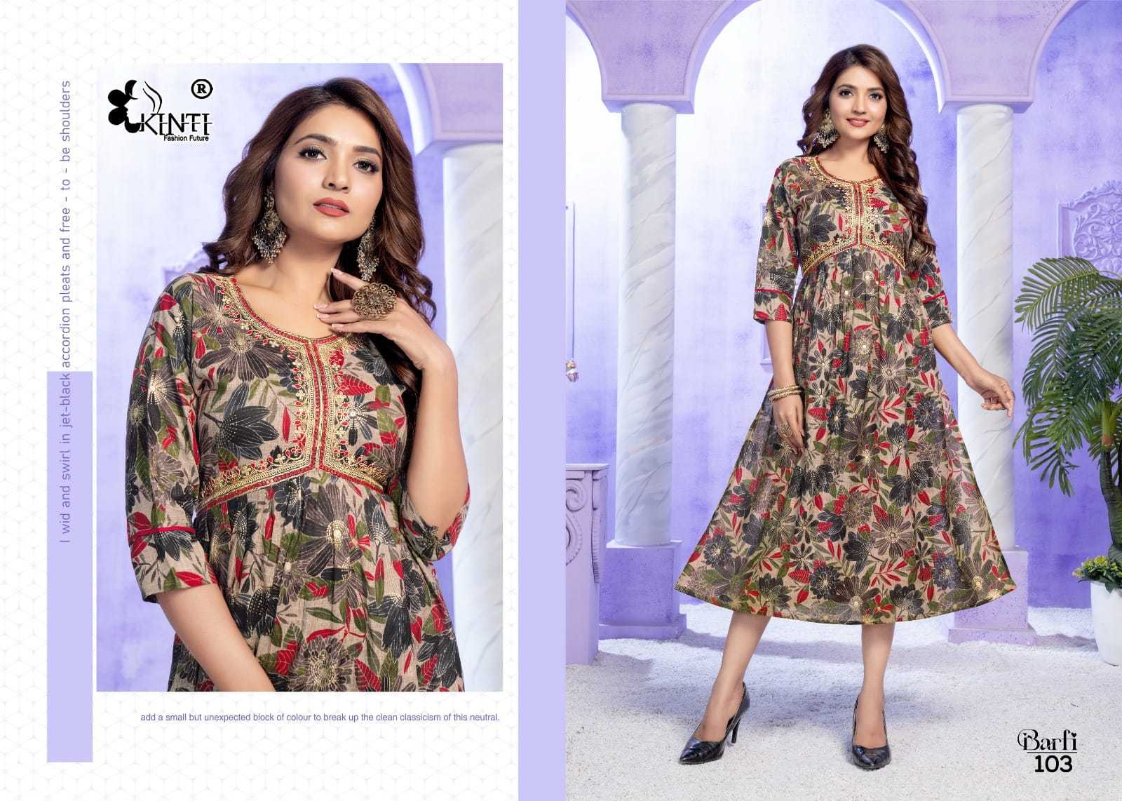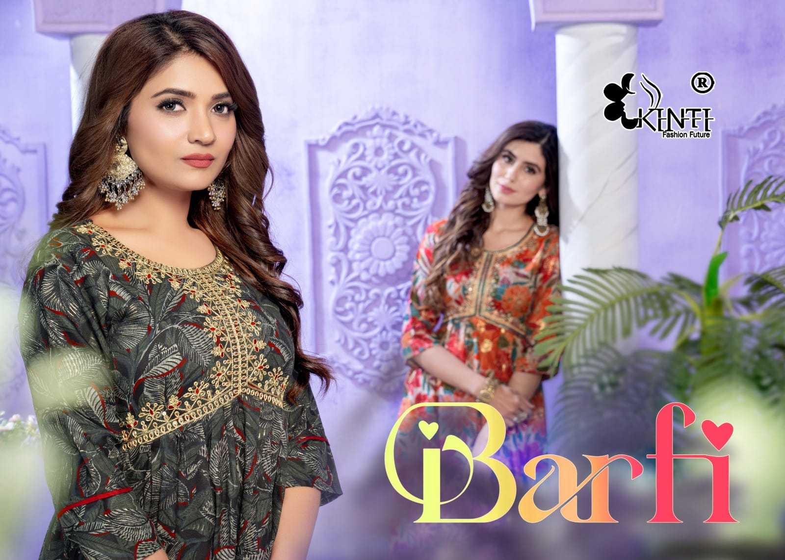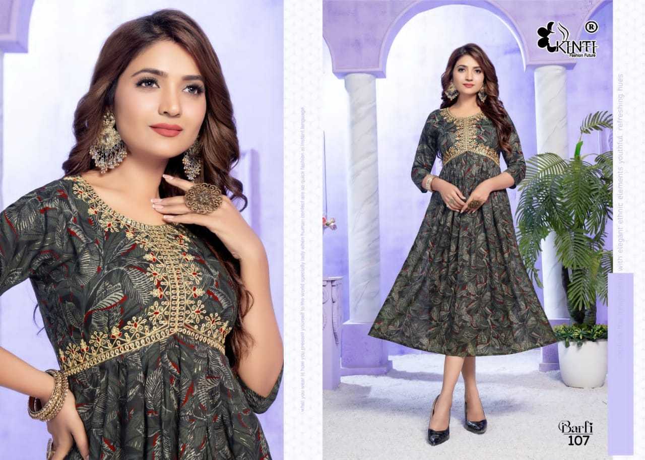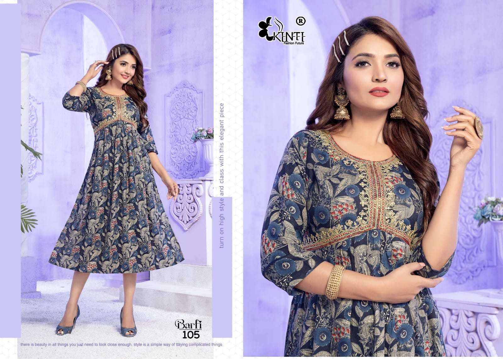 kinti present barfi nayra cut fullstitch kurti for occasion