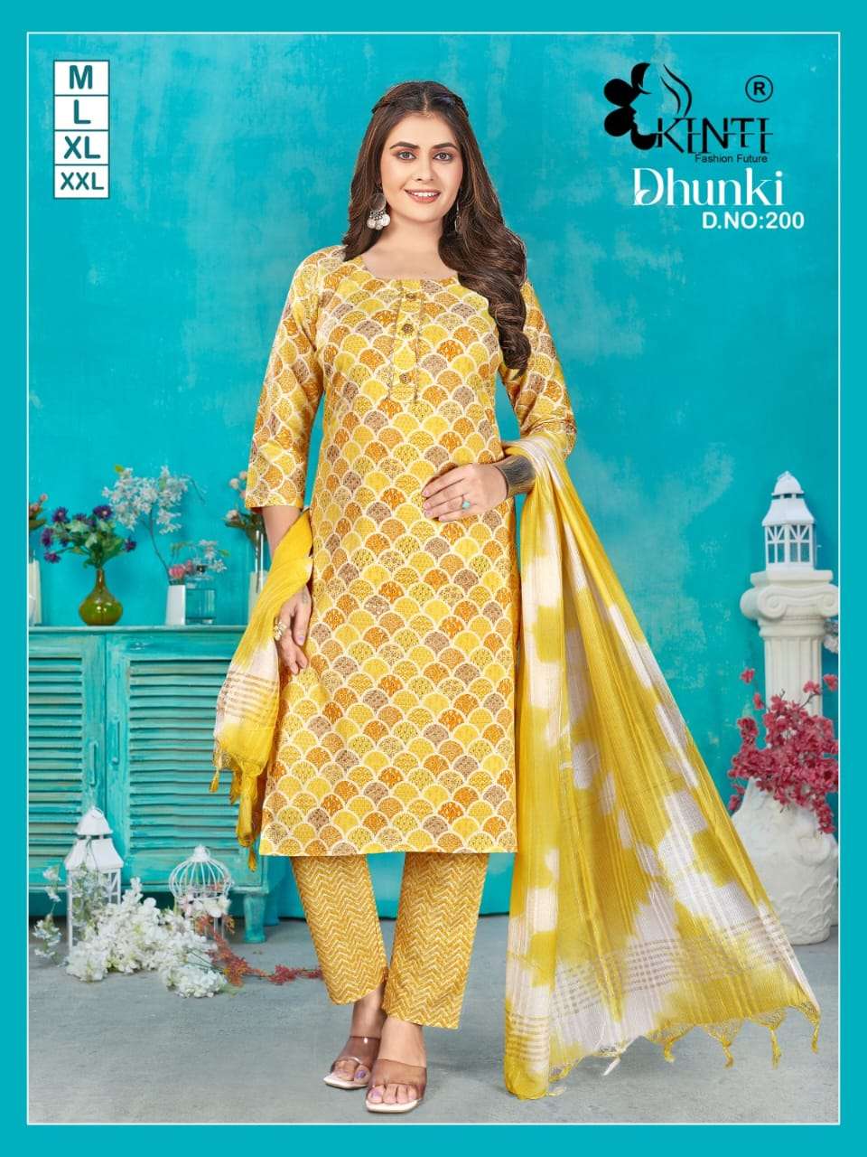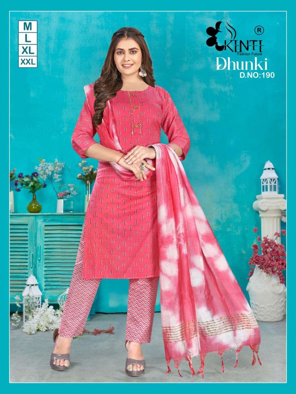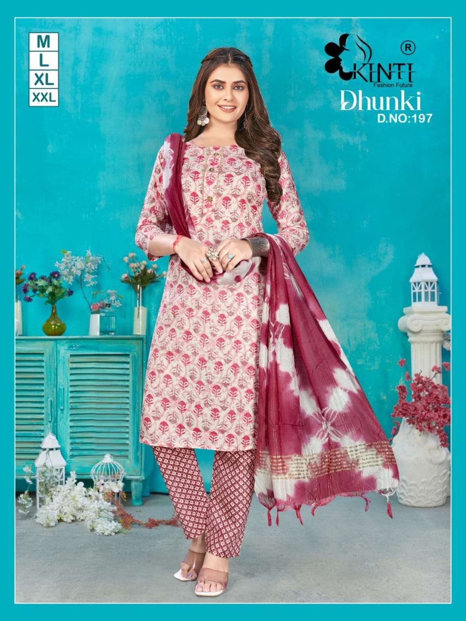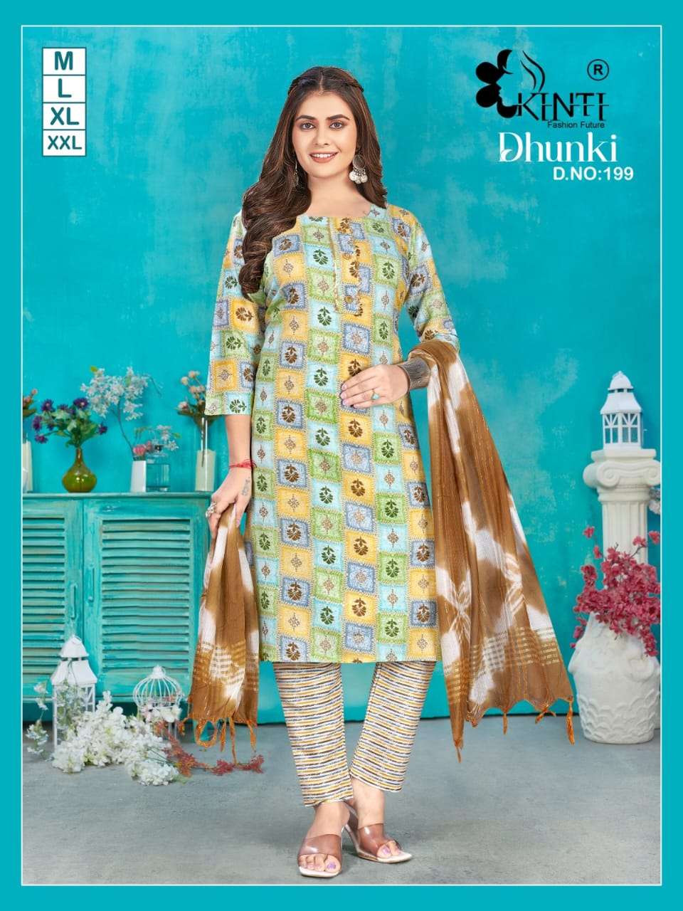 kinti present dhunki new designs readymade cotton slub salwar kameez combo set
