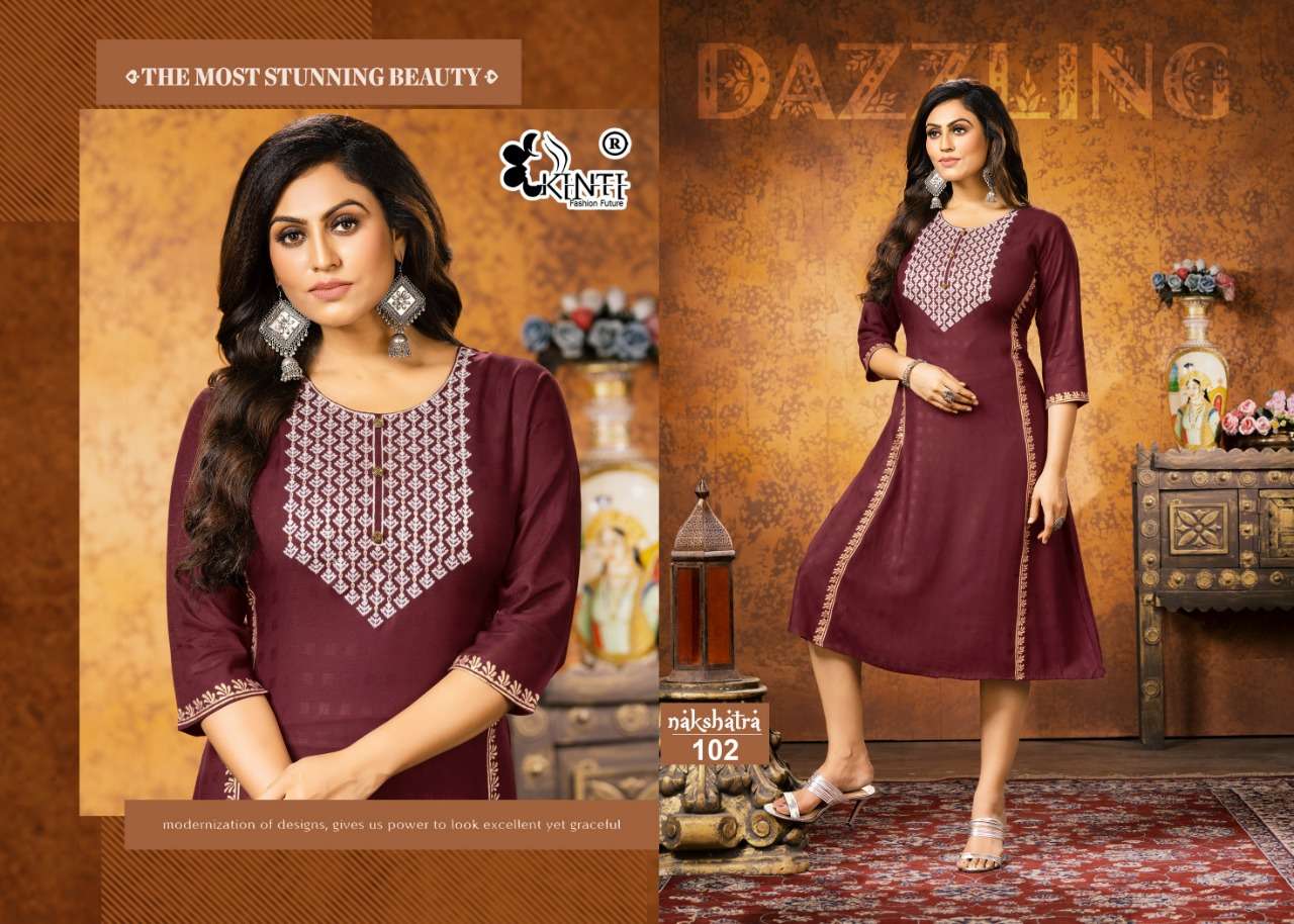 Nakshatra By *Kinti ®️ Fabric. : Fancy Rayon Fabric Style. : Embroidery and Sleeve work Length. : 45 Sizes : M L XL XXL 3Xl Colors : 6 Price-375₹+GST |