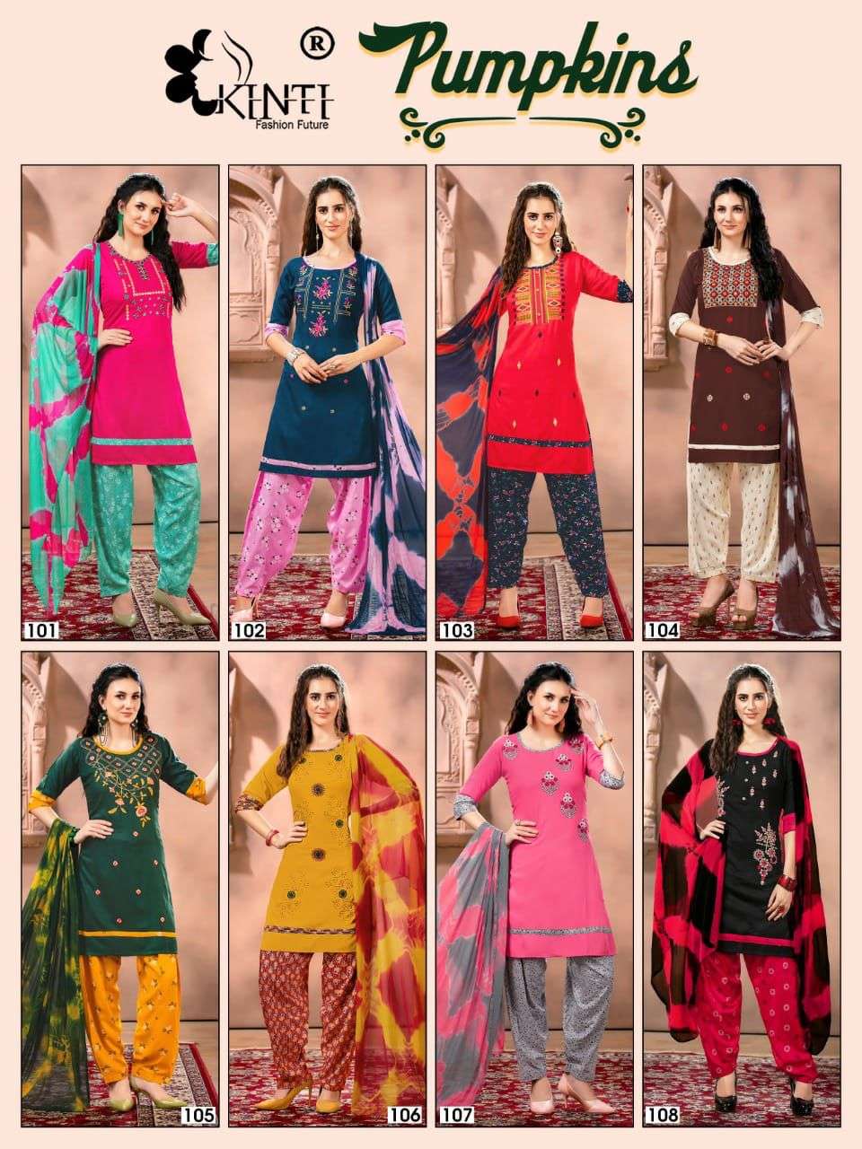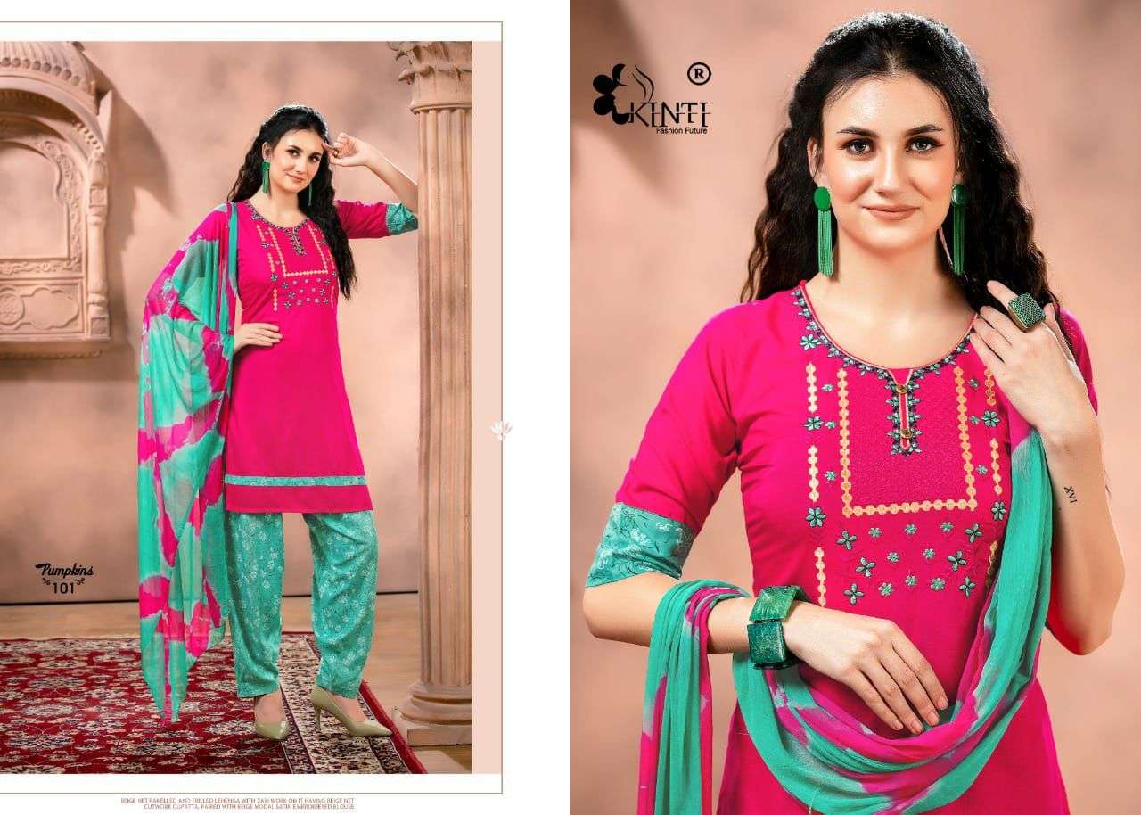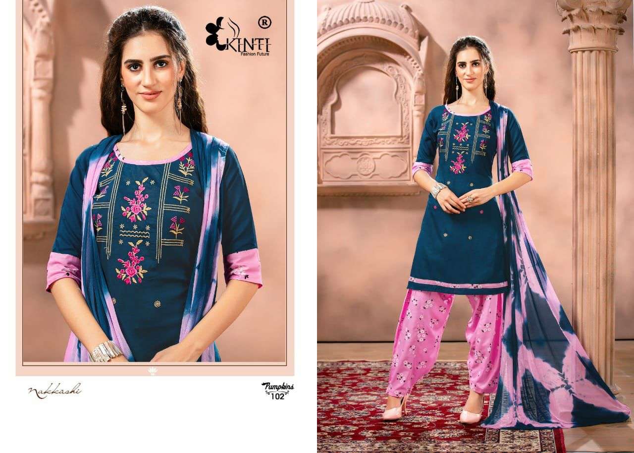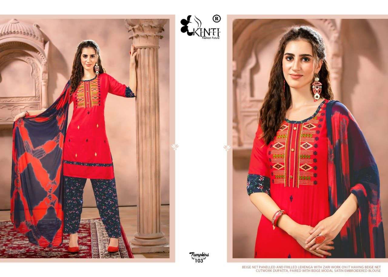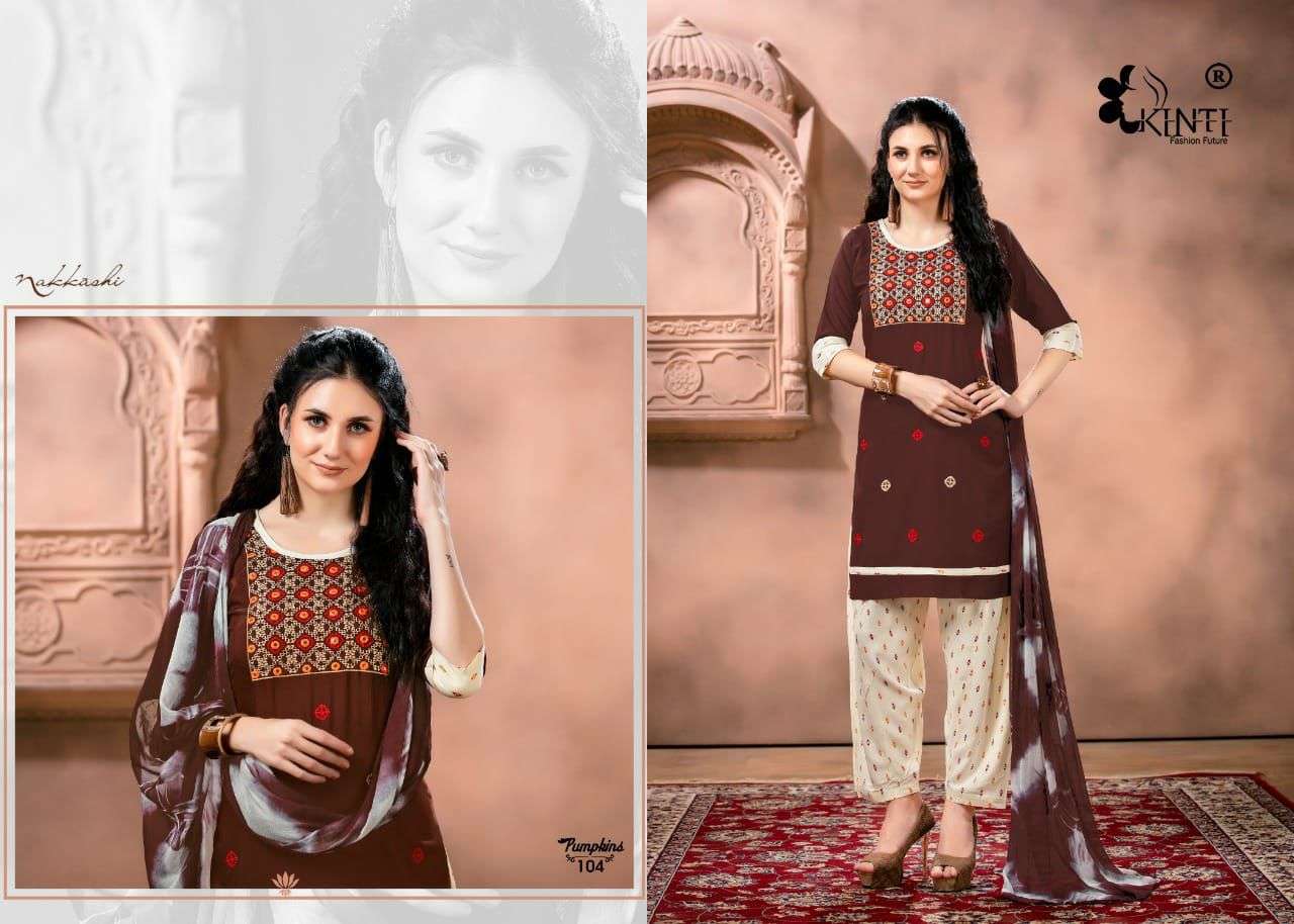 Kinti present pumpkins fancy embroidery kurti with bottom & dupatta