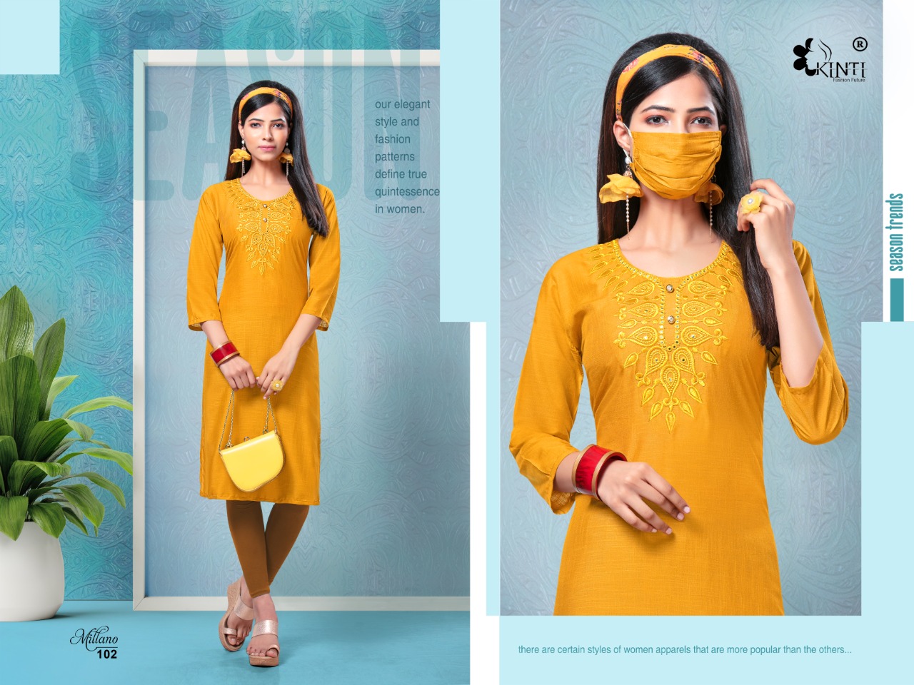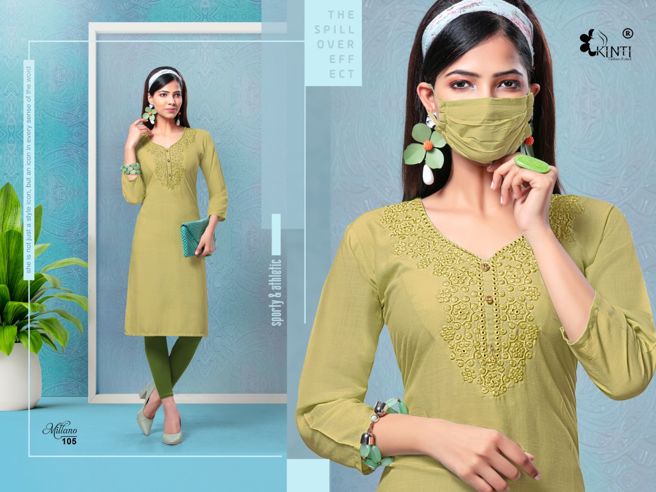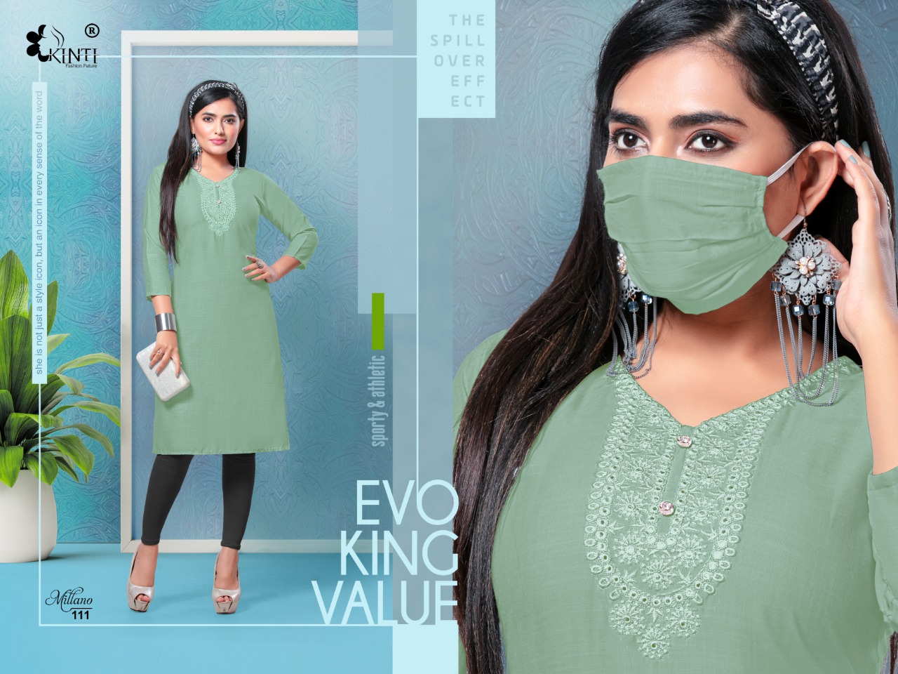 Kinti Presenting Millano Rayon Slub Daily Wear Kurti With Free Matching Mask
