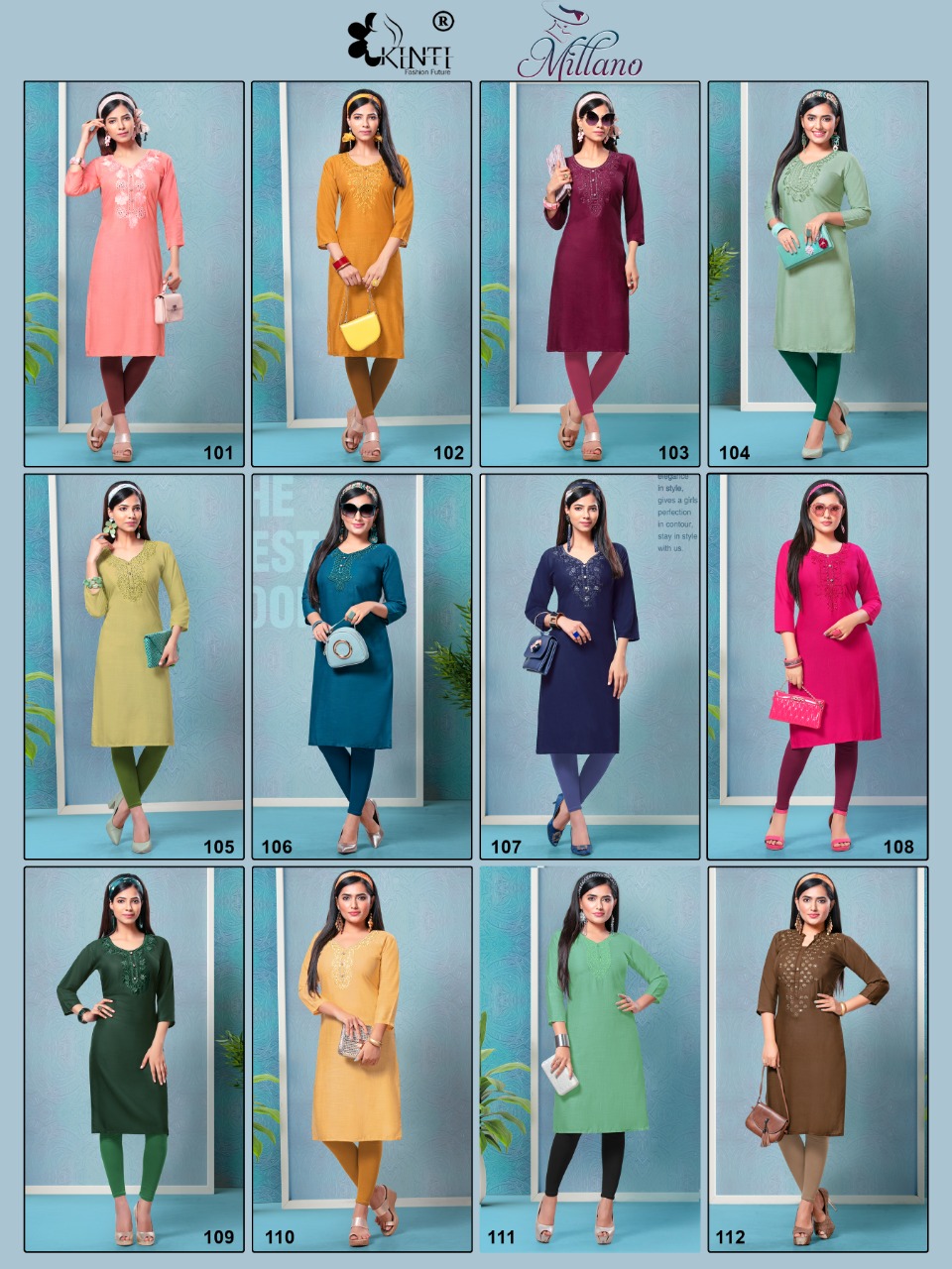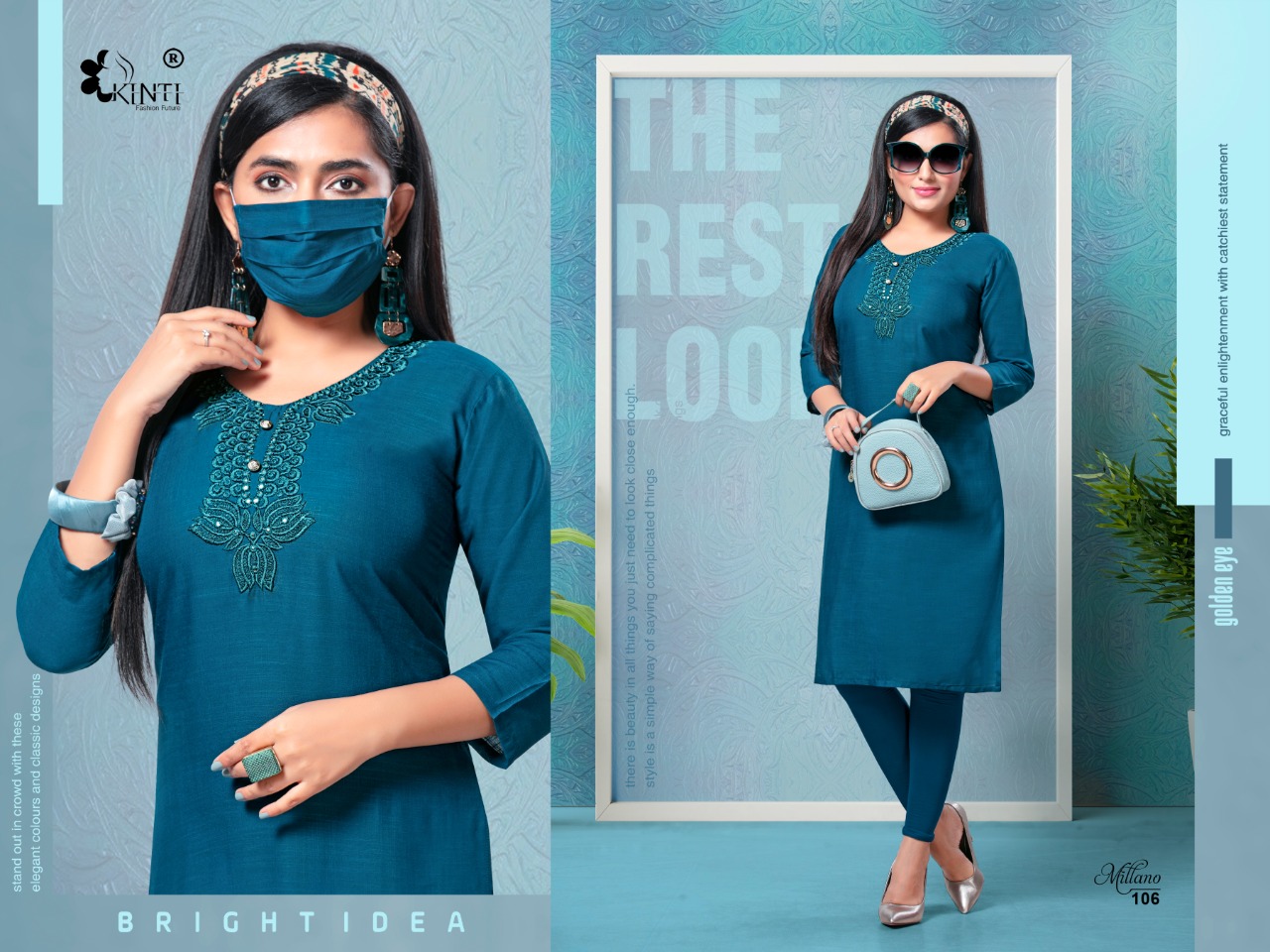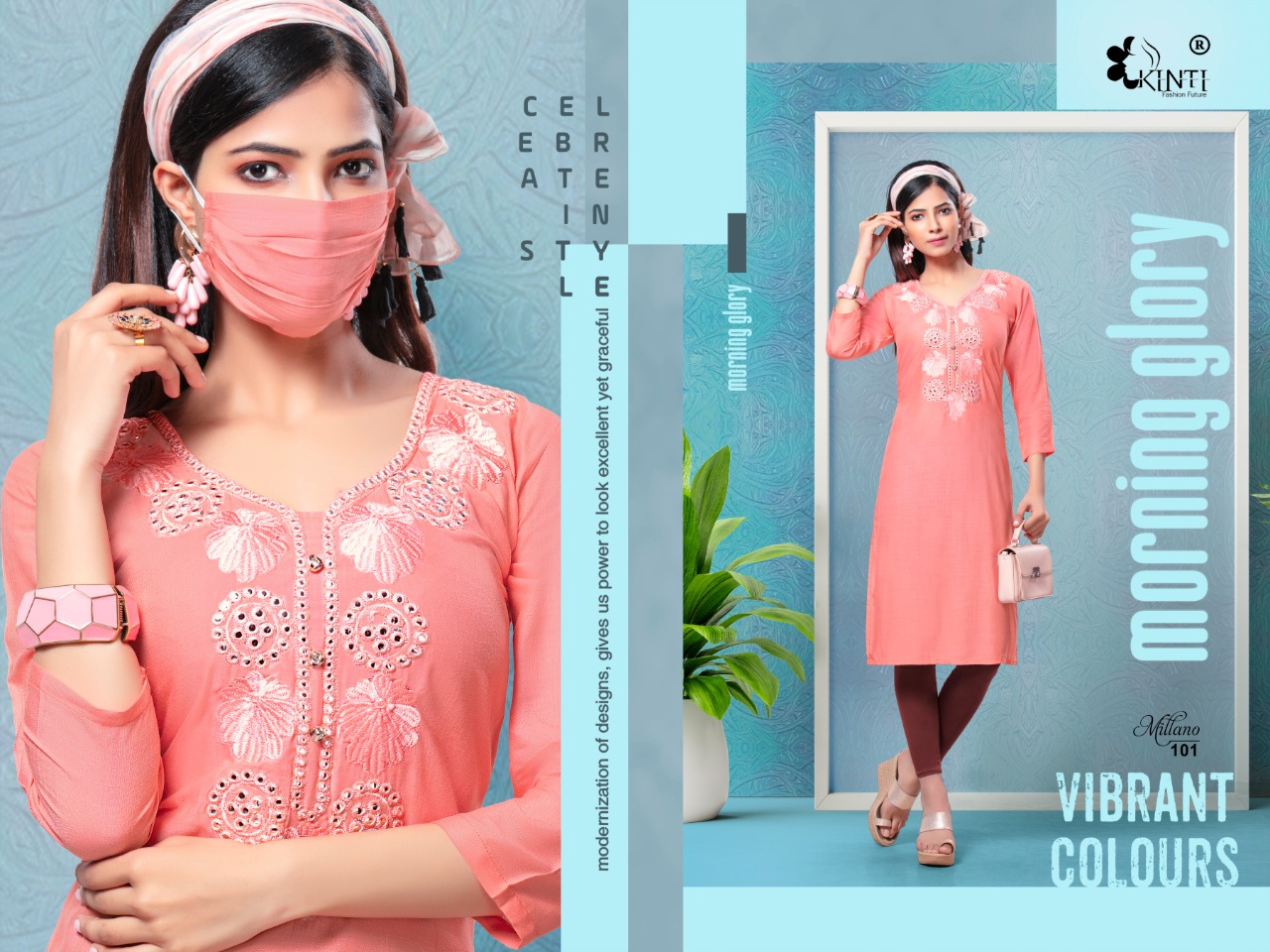Kinti Presenting Millano Rayon Slub Daily Wear Kurti With Free Matching Mask