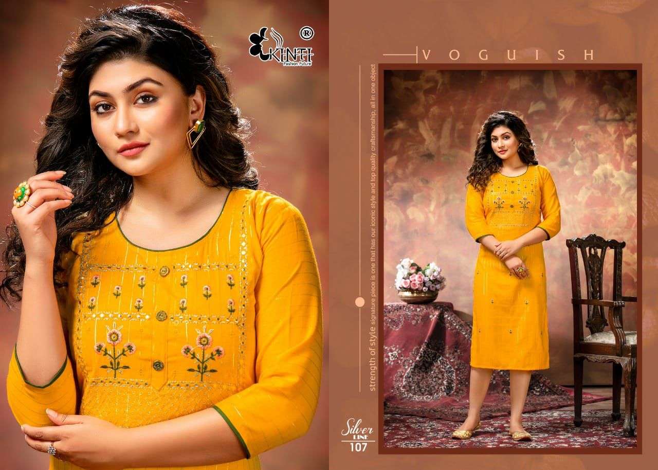 Silver line by KINTI ®️ Fabric. : Rayon Lurex Style. : Straight Lenght. 45 approx Duppta : Fancy Duptta Sizes : M L XL XXL 3XL Designs : 10 Rate :- 325 + GST |