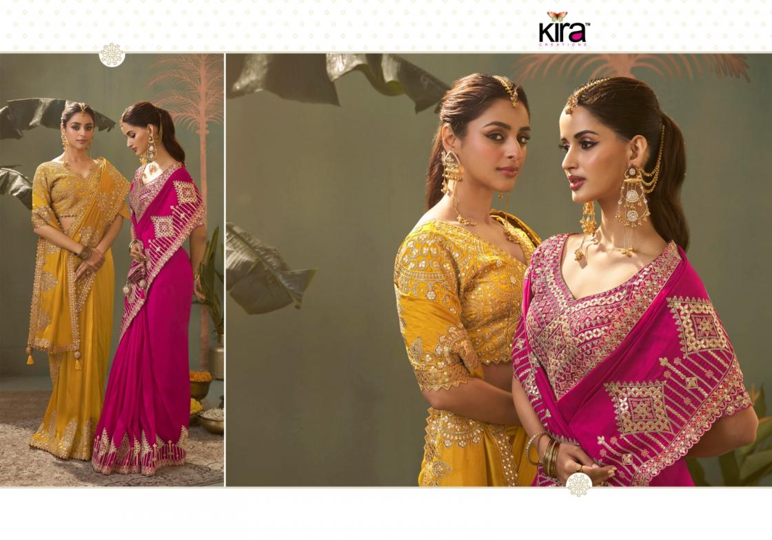 kira creation kasva bamber silk gota patti fashionable saree wholesaler