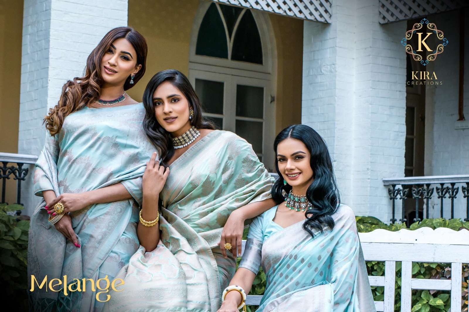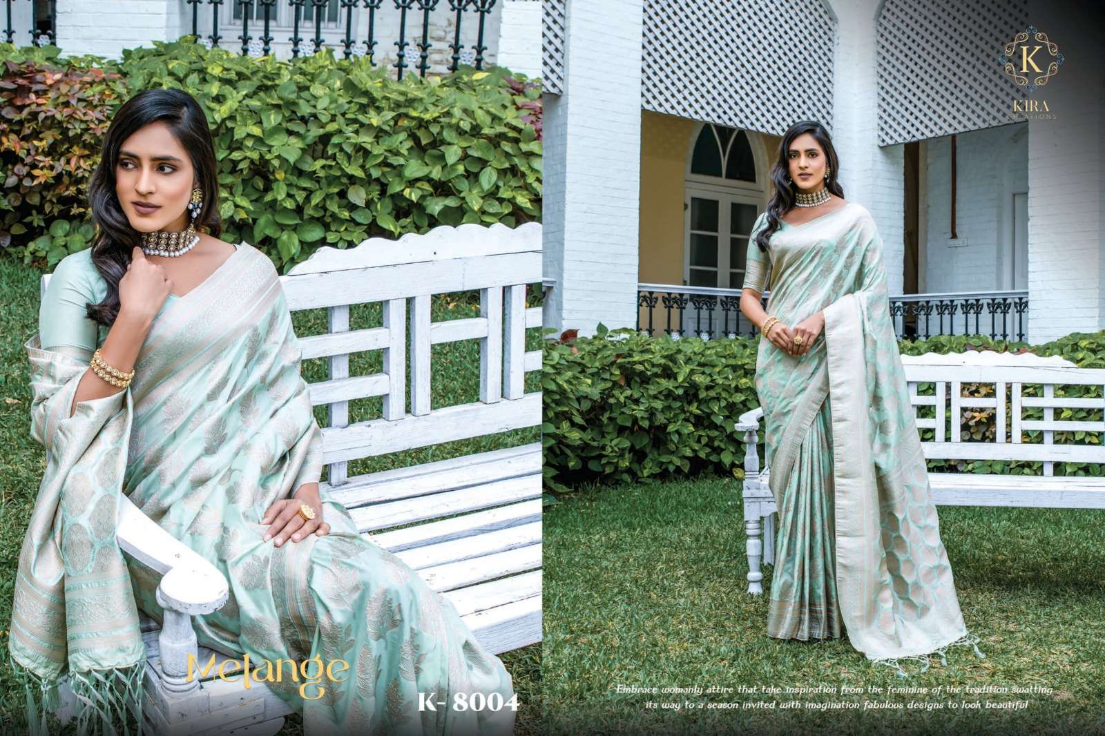 kira creation melange 8001-8006 series festive wear banarasi silk sarees