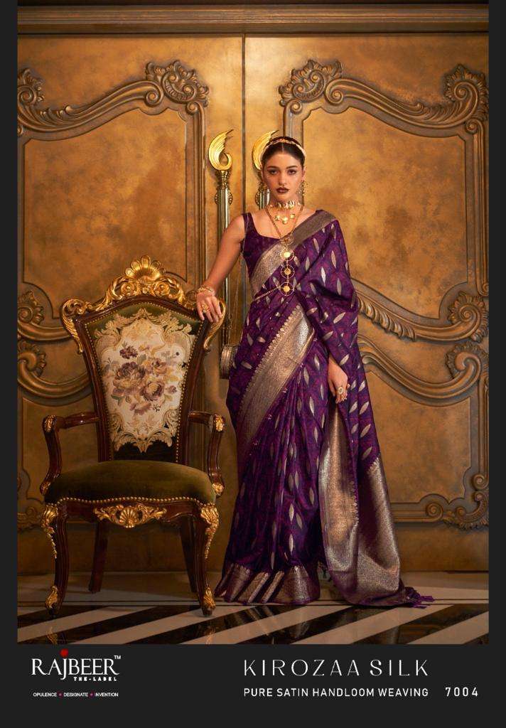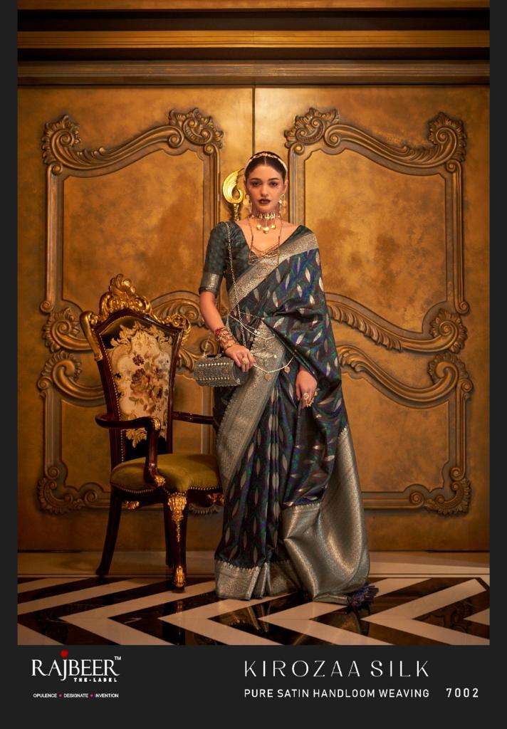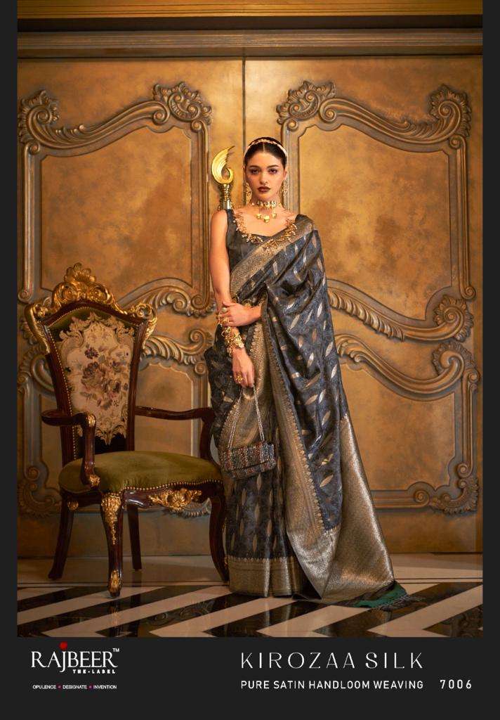 kirozaa silk by rajbeer 7001-7010 series satin handloom weaving designer saree
