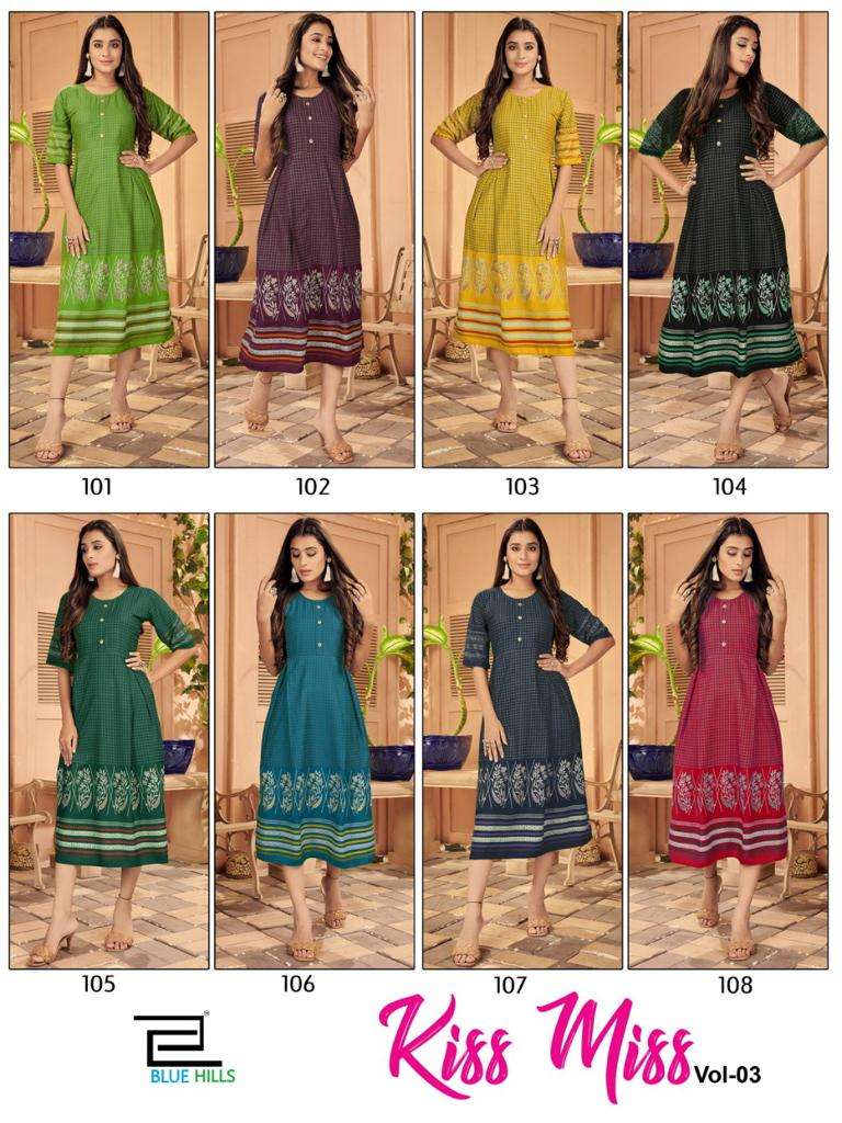 kiss miss vol 3 by blue hills rayon kali style kurtis wholesaler