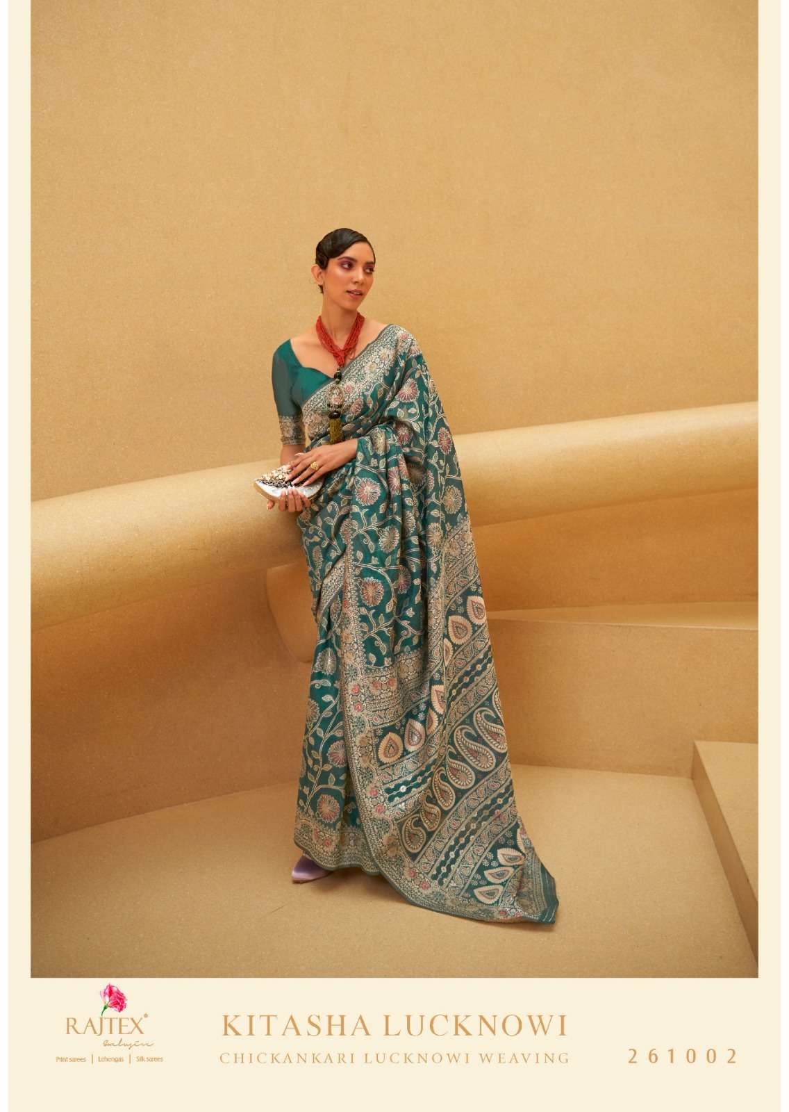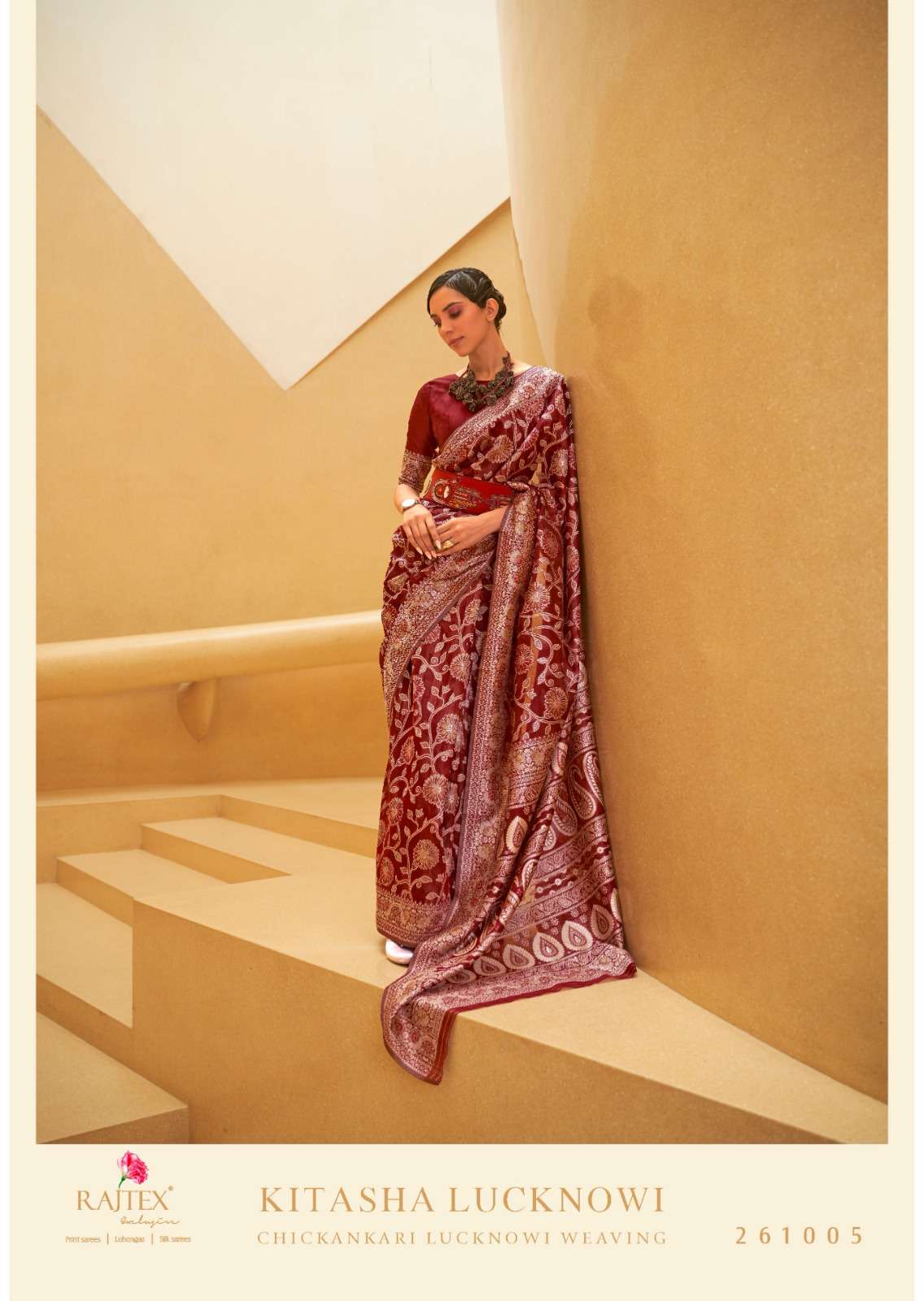 kitasha lucknowi by rajtex wedding wear chickankari lucknowi weaving sarees collection