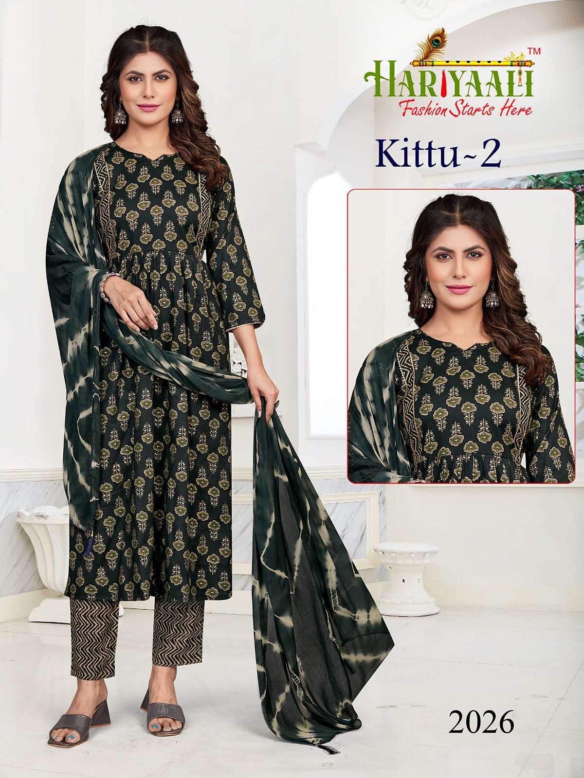 HARIYAALI ⏯BY KAYCE TRENDZ has launched 🔸 Fabric Details ▪ BOTTOM:- two tone Ryon print ▪️DUPATTA:- Nazmin silk with saburi dying with four side Tussle ▪Rate:- Rs 645 per Piece + GST ▪️pcs -26pcs ▪Size;- M, L, XL, 2XL. COMBO 📝Booking started from now.. Thanking You, |