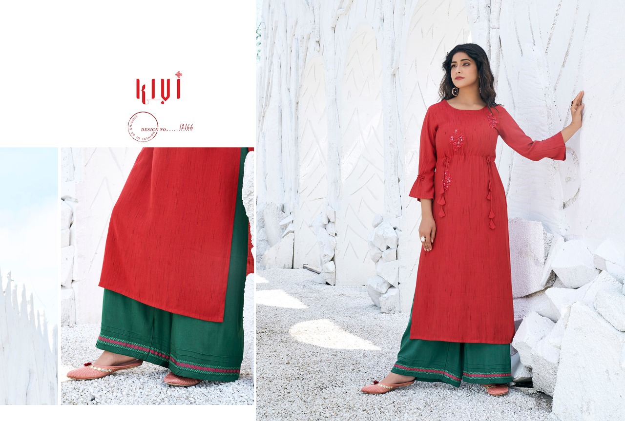 Kivi Fabia Rayon With Fancy Work Kurti With Plazzo Online Shopping In Surat