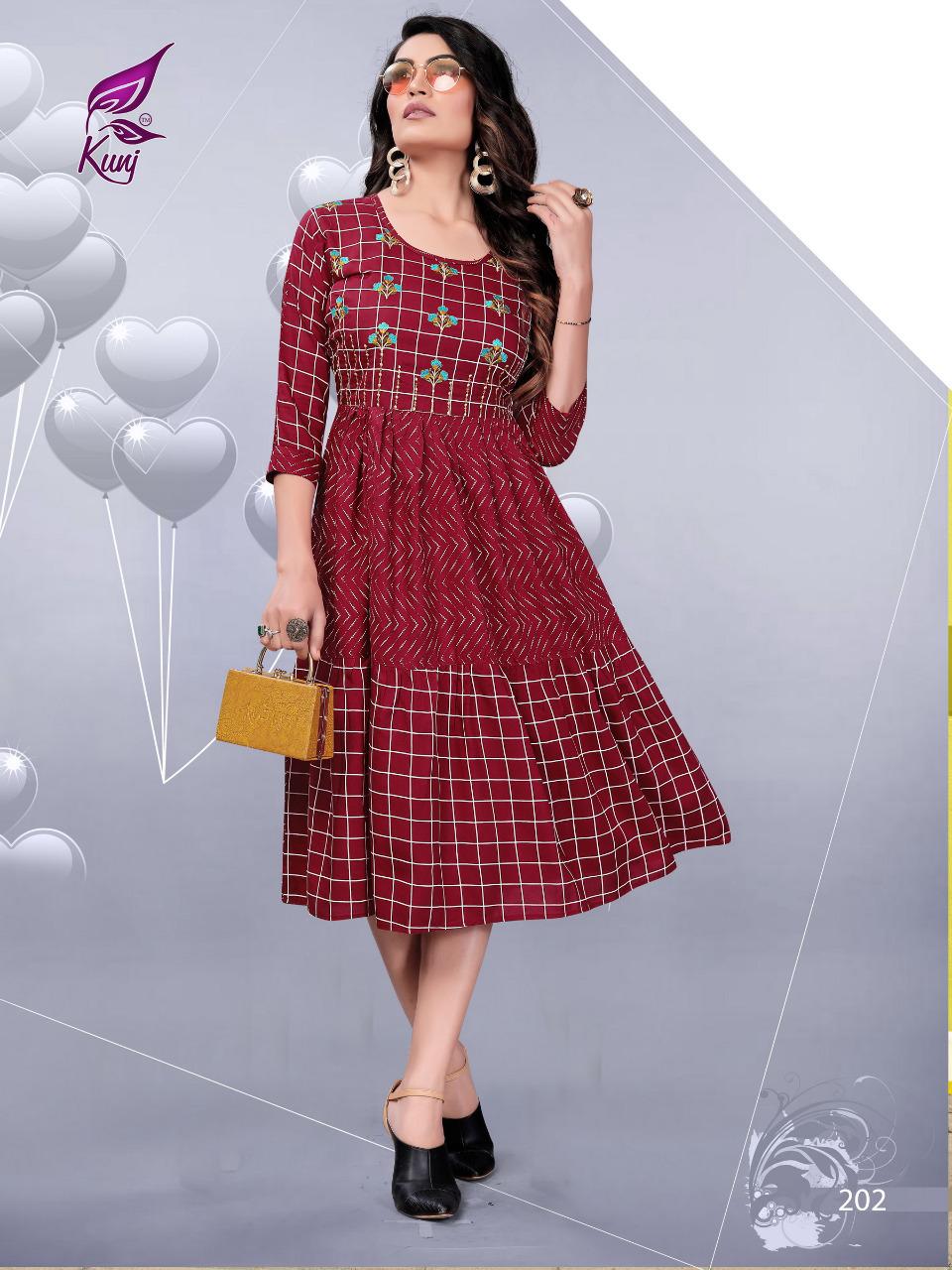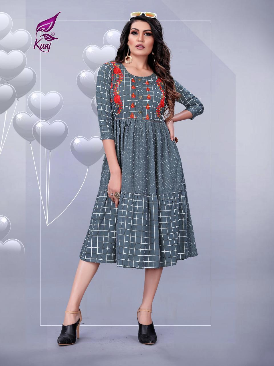 Kivi Vol 2 By Kunj Rayon Printed Short Gown Kurti Collection