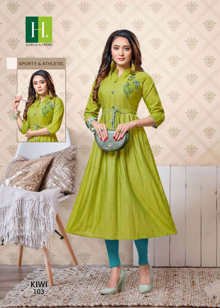 H DOT the kurti brand from HIRWA presents its latest fancy kurti catalog  Kiwi 6 Designs only. Sizes -L, XL, XXL Rate: 580/- |