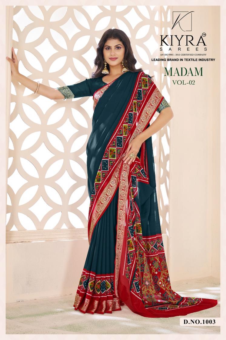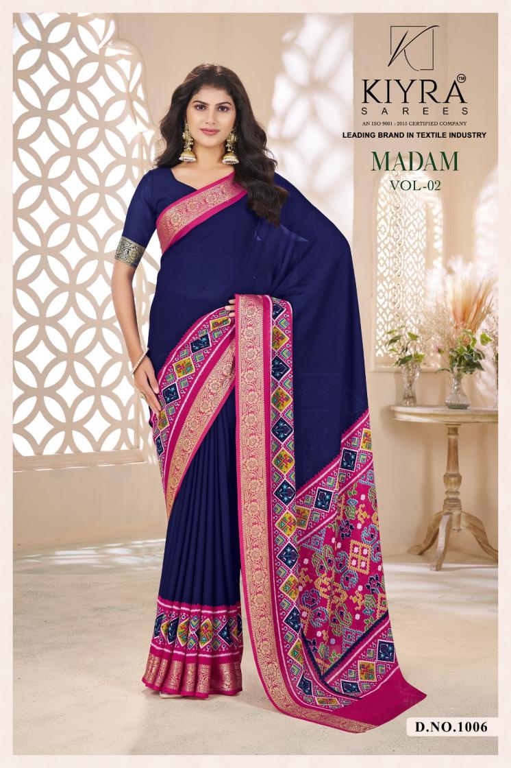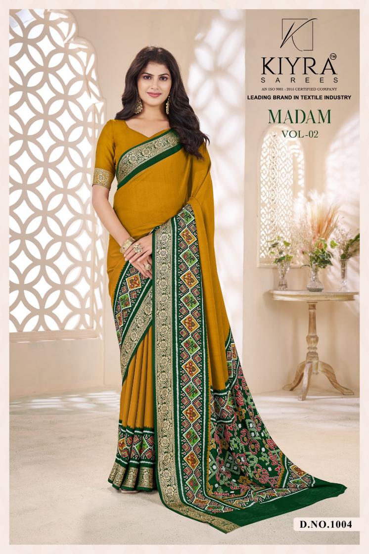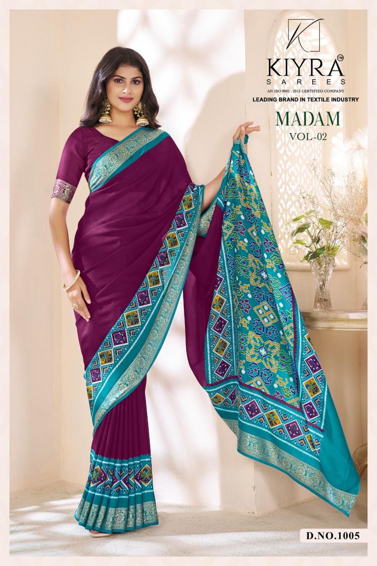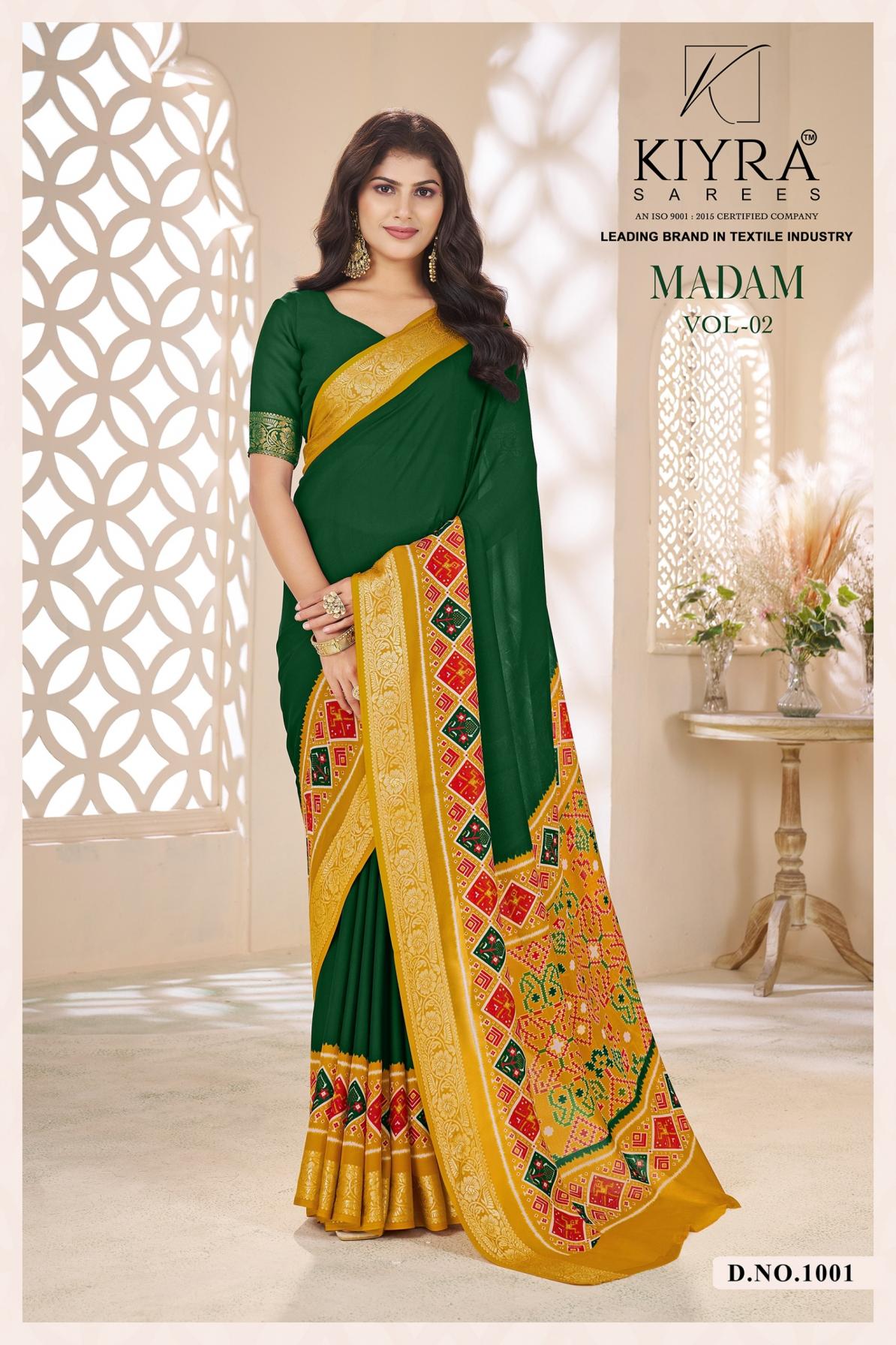 NEW ITEM LAUNCH MADAM VOL-2 Fabrics: DULL MOSS SILK WITH JQD BORDER WITH PATOLA PRINT PALLU |