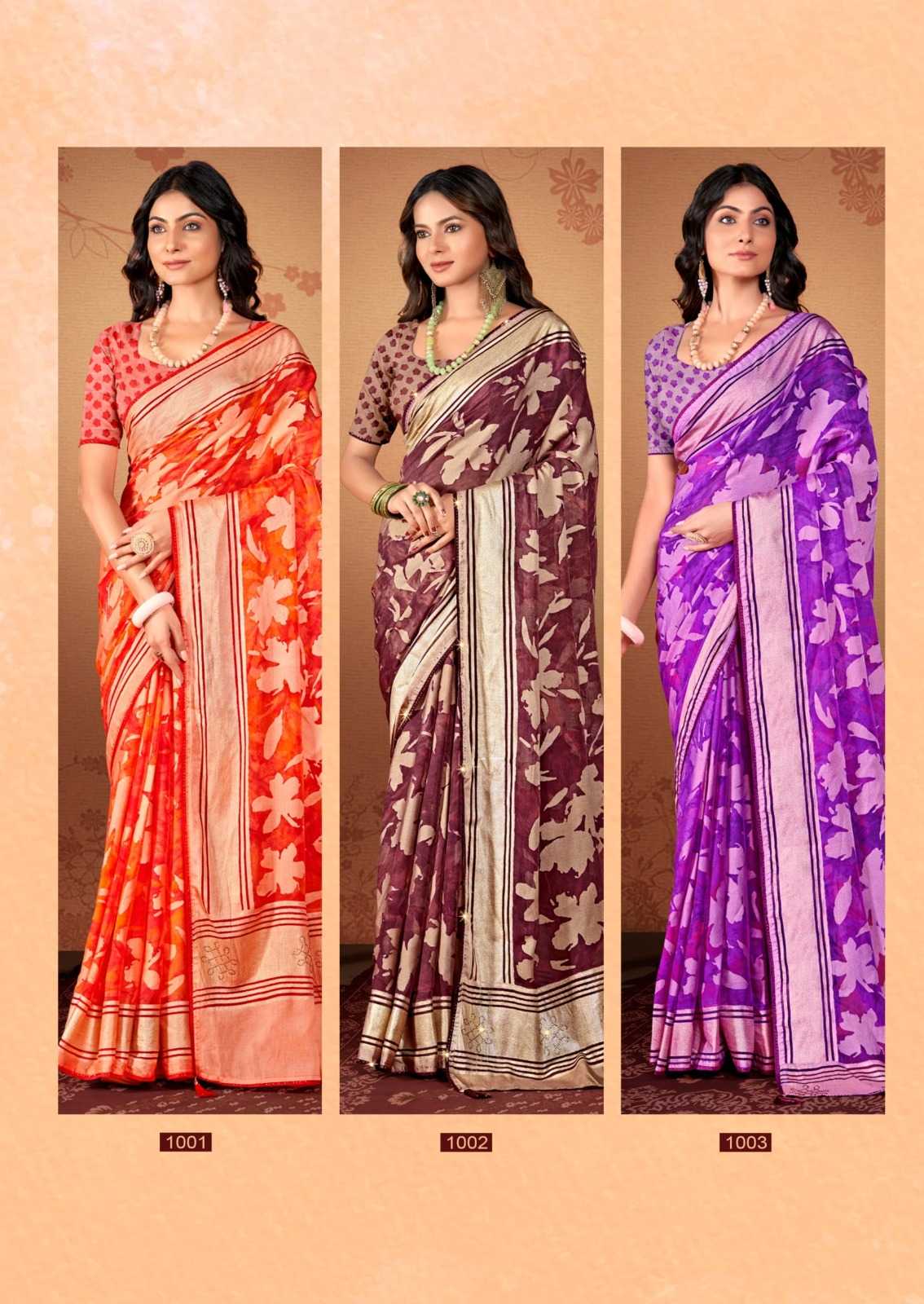 kiyra saanvi attractive colour print brasso saree for women