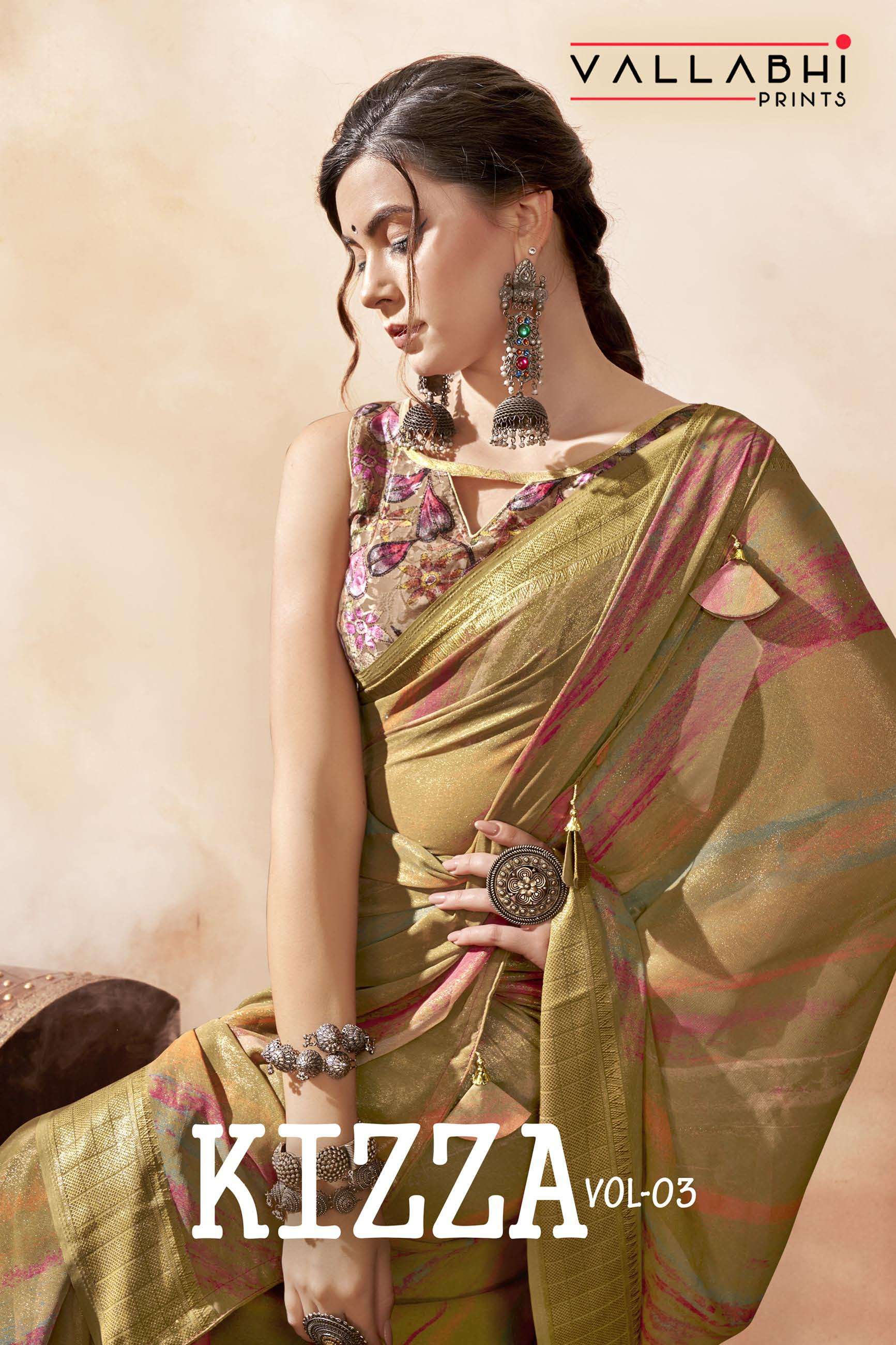 kizza vol 3 by vallabhi prints adorable sarees with printed blouse peice collection