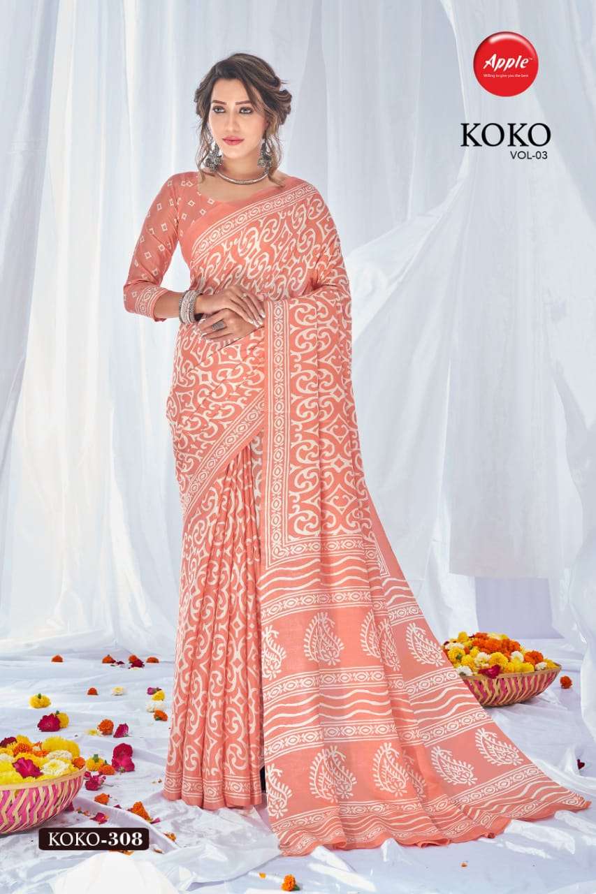 Apple Sarees Presents Latest Collection Launched on 27-09-2022. Presenting Beautiful collection of 8 PCS with Unstitched .