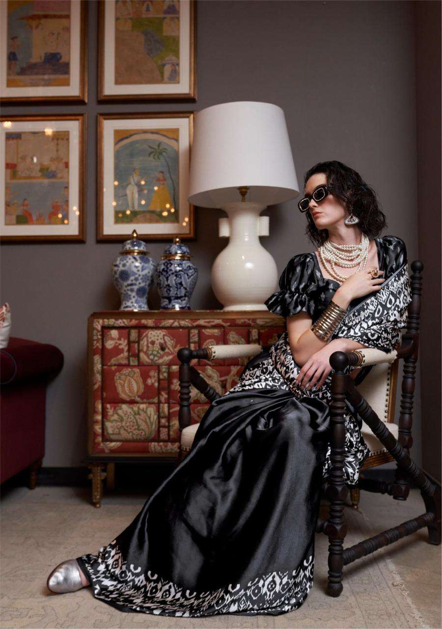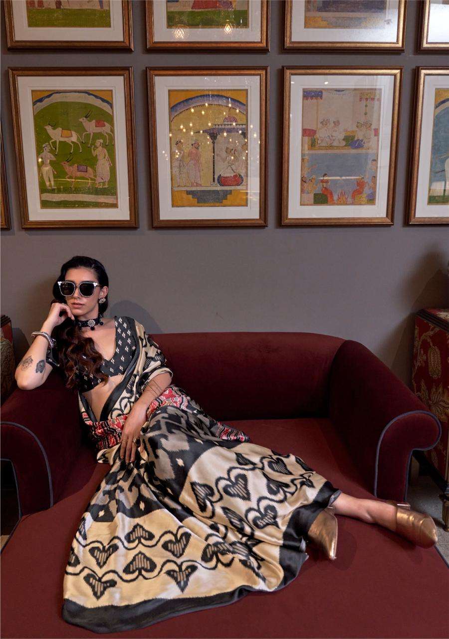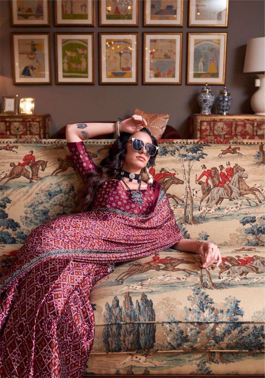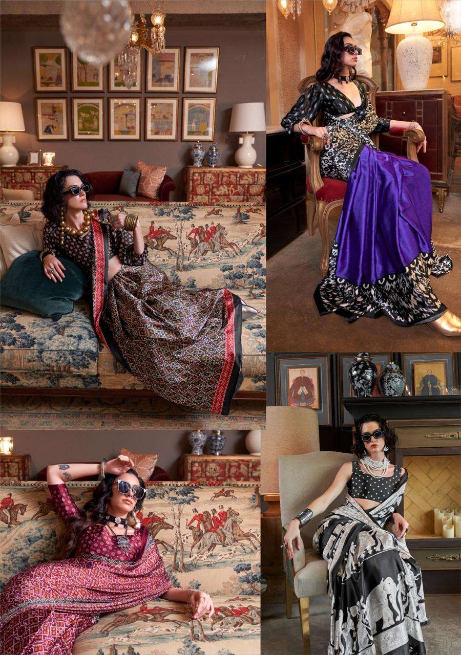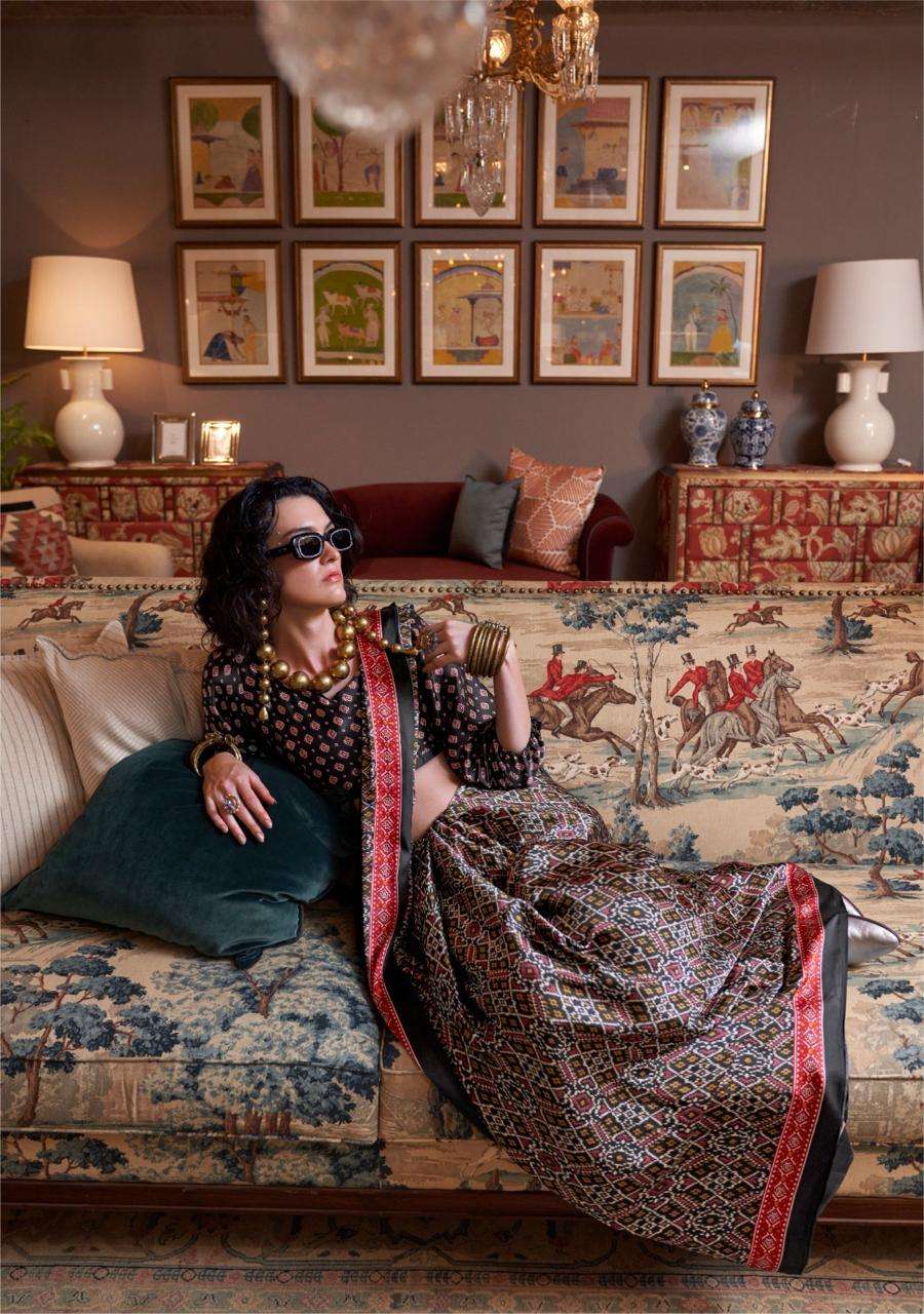 This Is Satin Crape Saree Is Allowing You To Create Your Own Unique Style. Whether It's A Casual Occasion Or A Event, This Saree Will Make You Stand Out Effortlessly Brand : Ratex Catalog Name : Konzai Series: 405001 TO 405010 Saree Fabric : Satin Crape With Digital Patola Prints Blouse Fabric : Satin Crape Printed Rate : 555/- +5% Gst Occasion: Office Wear, Casual Wear |