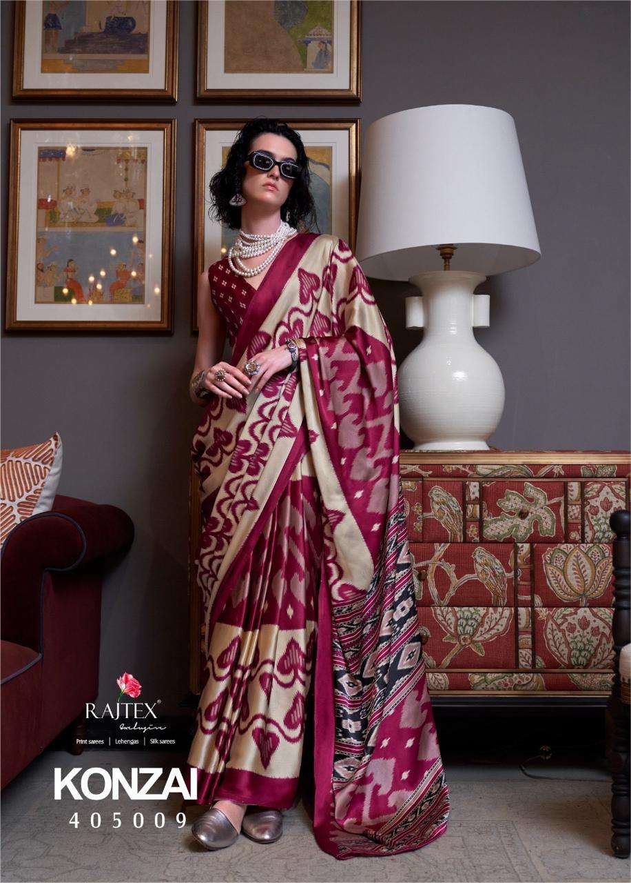 konzai by rajtex satin crape 405001-405010 gorgeous look saree wholesaler