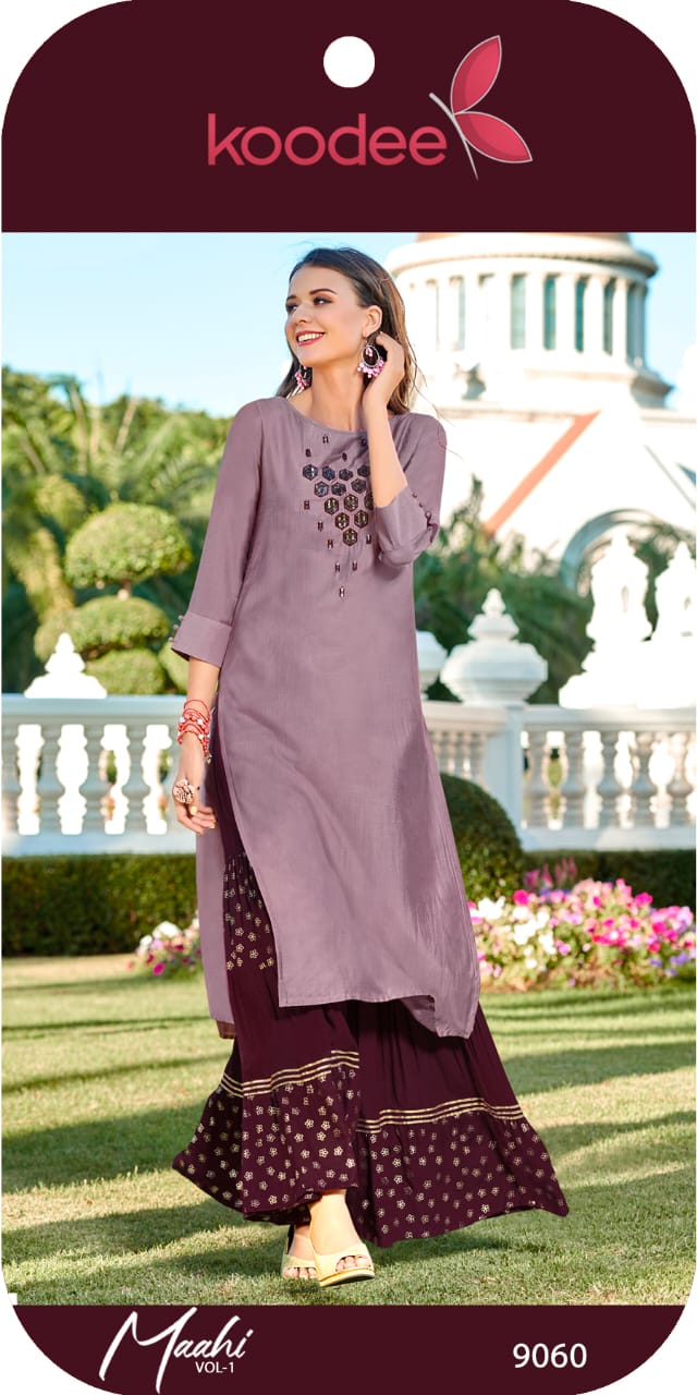 Koodee Mahi Vol 1 Chinon Rayon Print Kurti With Sarara At Affordable Price