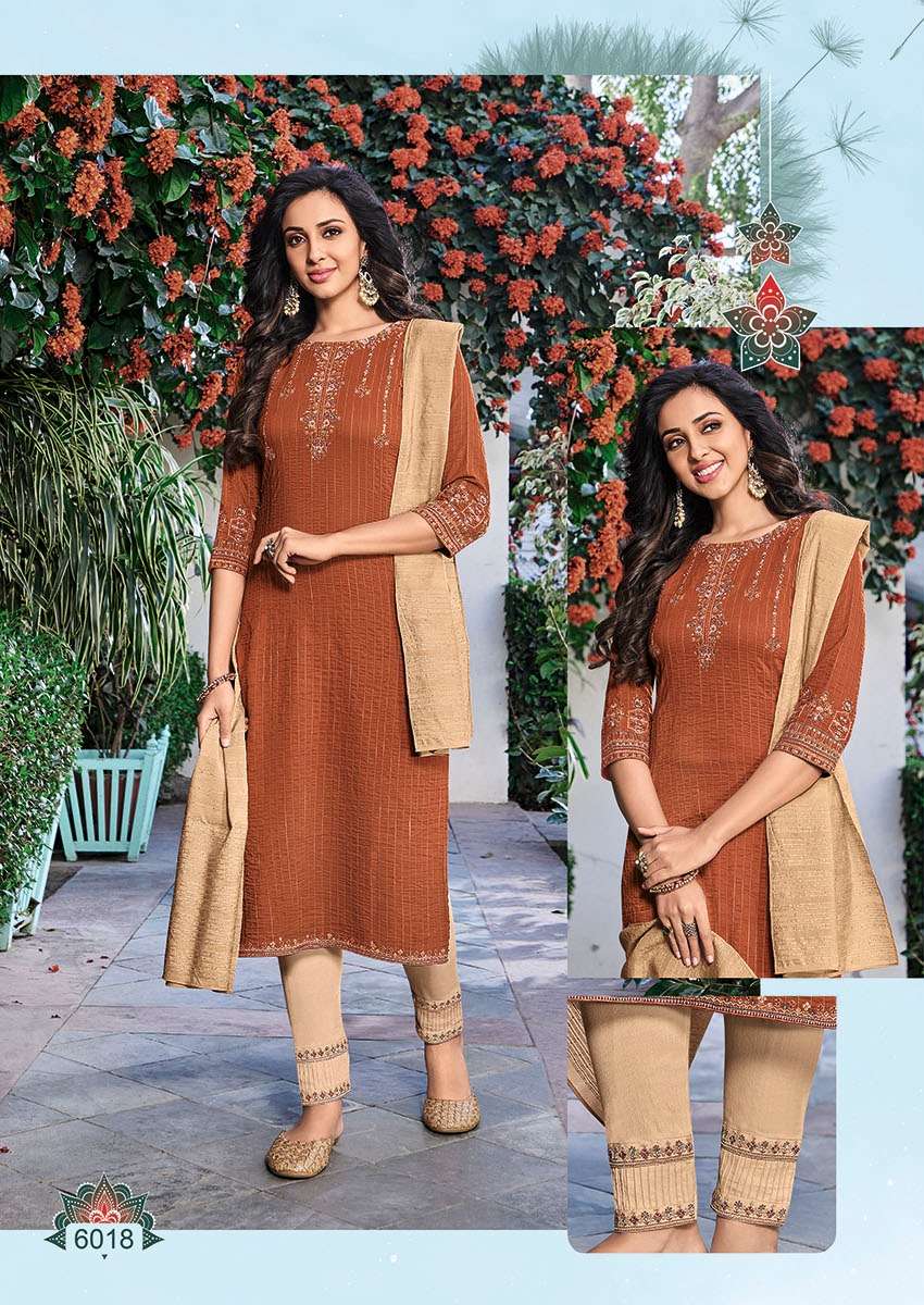 Brand Name : KOODEE Catalog : Rasam Designs : 6 Fabric:- Bottom :- Cotton Slub Lycra With Embroidery Work Duppata :- Pure Nylon Viscose Work: Embroidery + Khatli Work Size : S(36),M(38), L(40), XL(42), 2XL(44), 3XL(46) Dispatching :- 3 to 4 days |