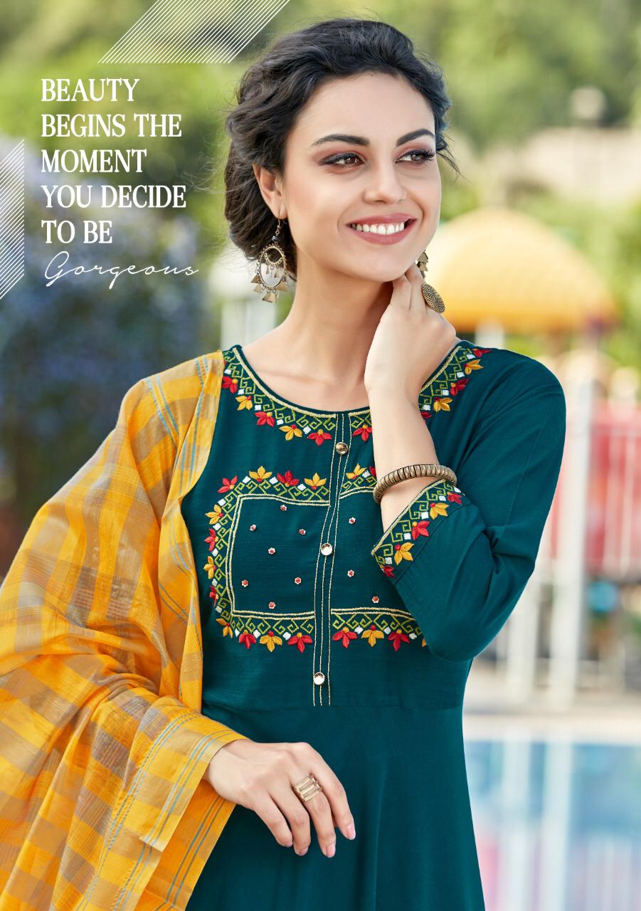 👗KOODEE👗 Kurti with Dupatta Brings to you, catalogue - Chunri Vol 3 👗with a special, designer, With Dupatta and Handwok FABRIC :- poly maslin (Half inner) Length:- 54 Dupatta Fabric: Banarasi Jacquard Length : 2.25 Mtr SIZE:- M(38) ,L(40) ,XL(42), 2XL(44) ,3XL(46) DESIGNS:- 6 Rate - 850/- Delivery from today Set to set. GST 5 Percent Extra |